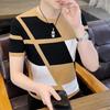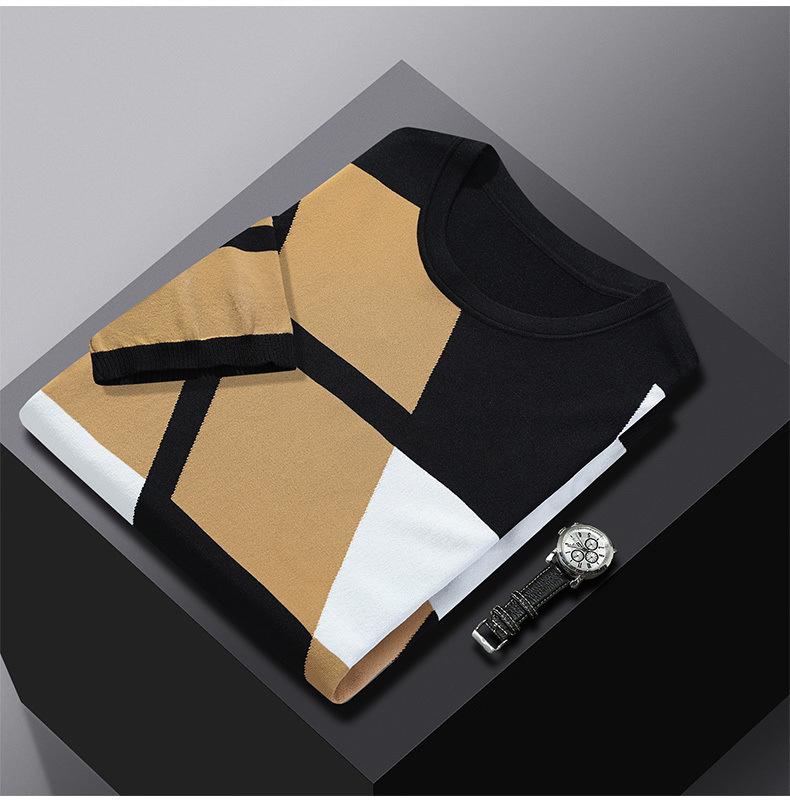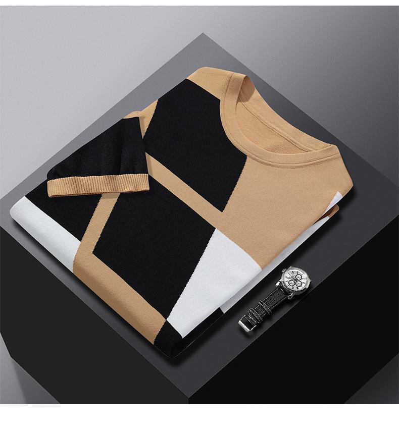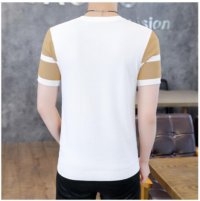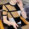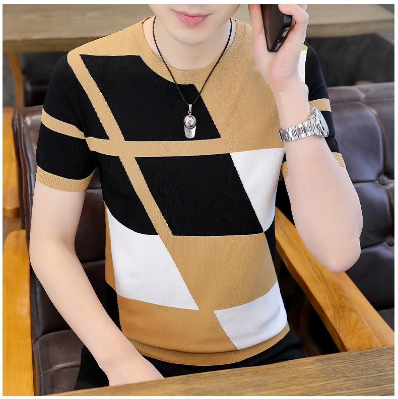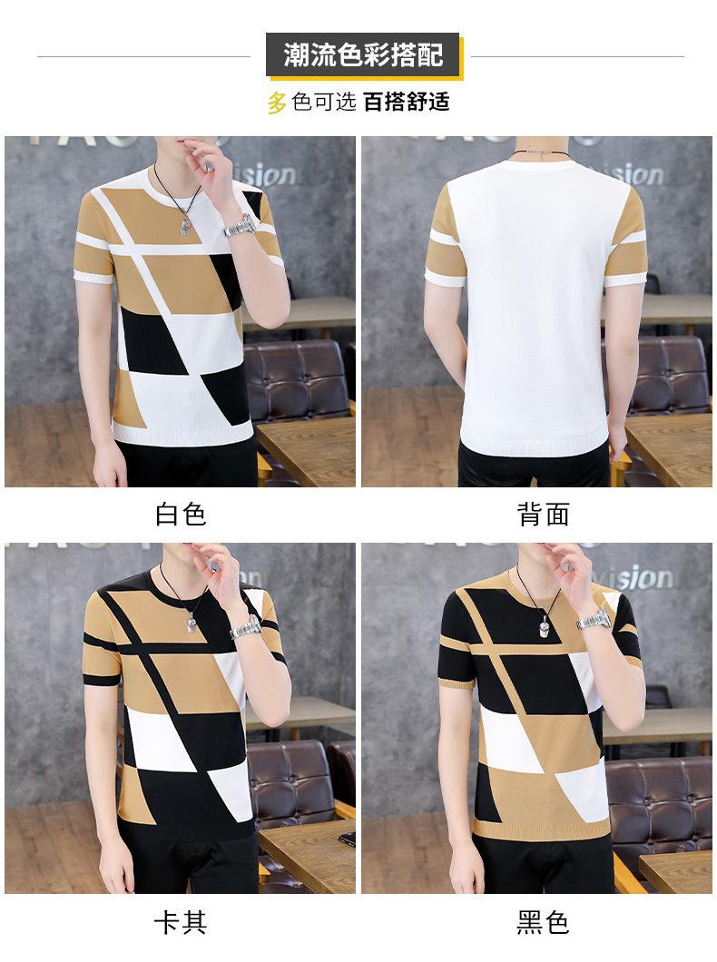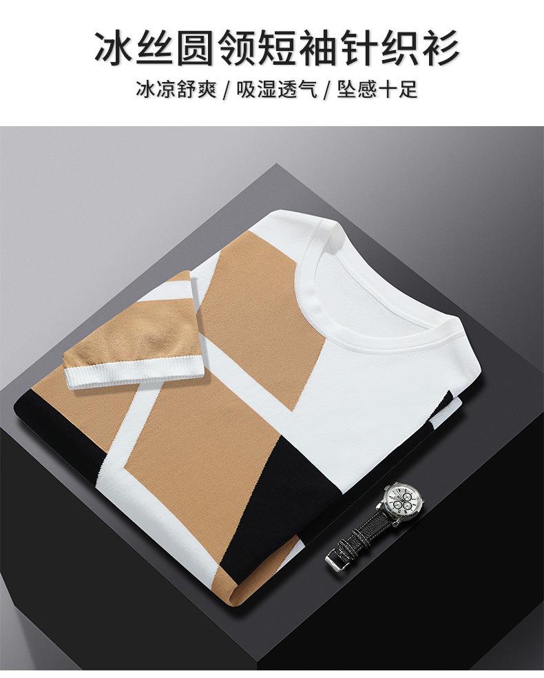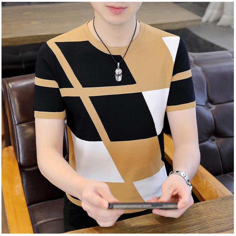 Camiseta de manga corta a rayas de seda helada para hombre, estilo europeo, de verano, fina y moderna.
