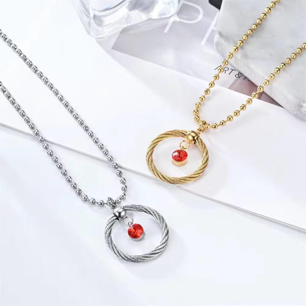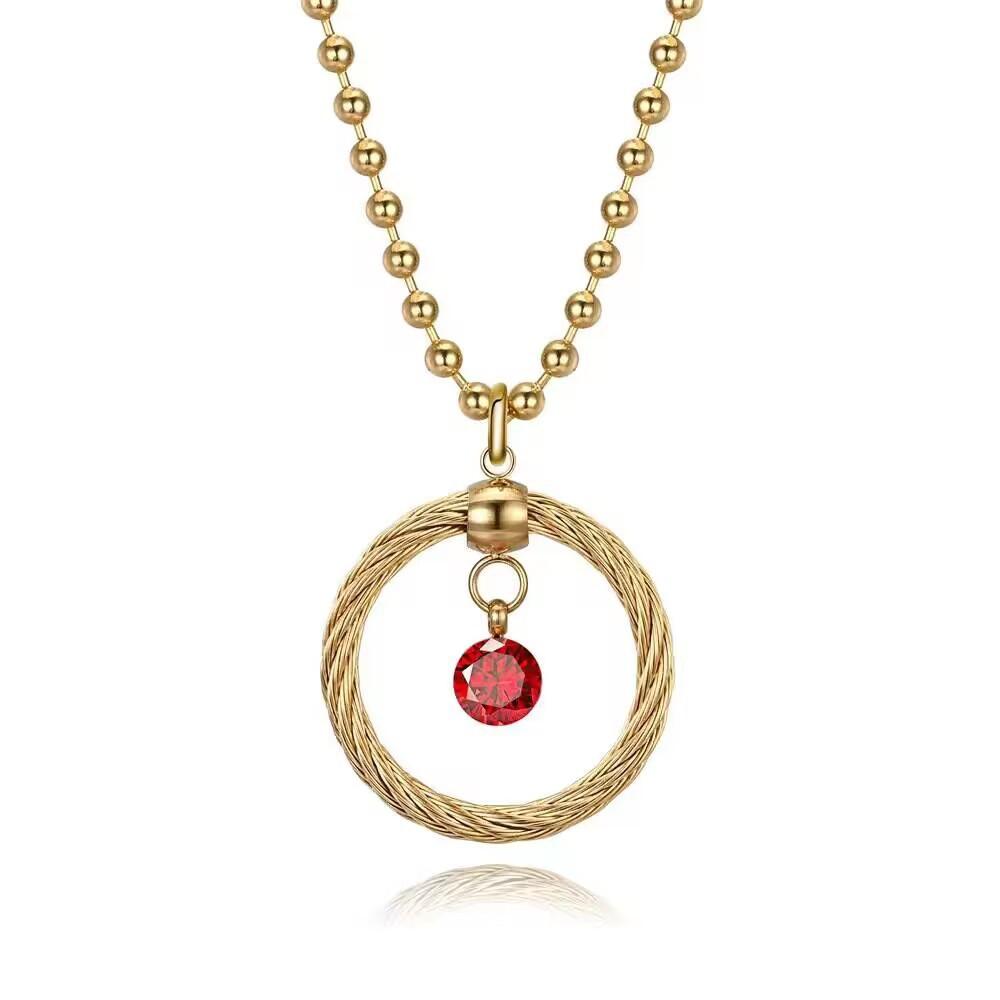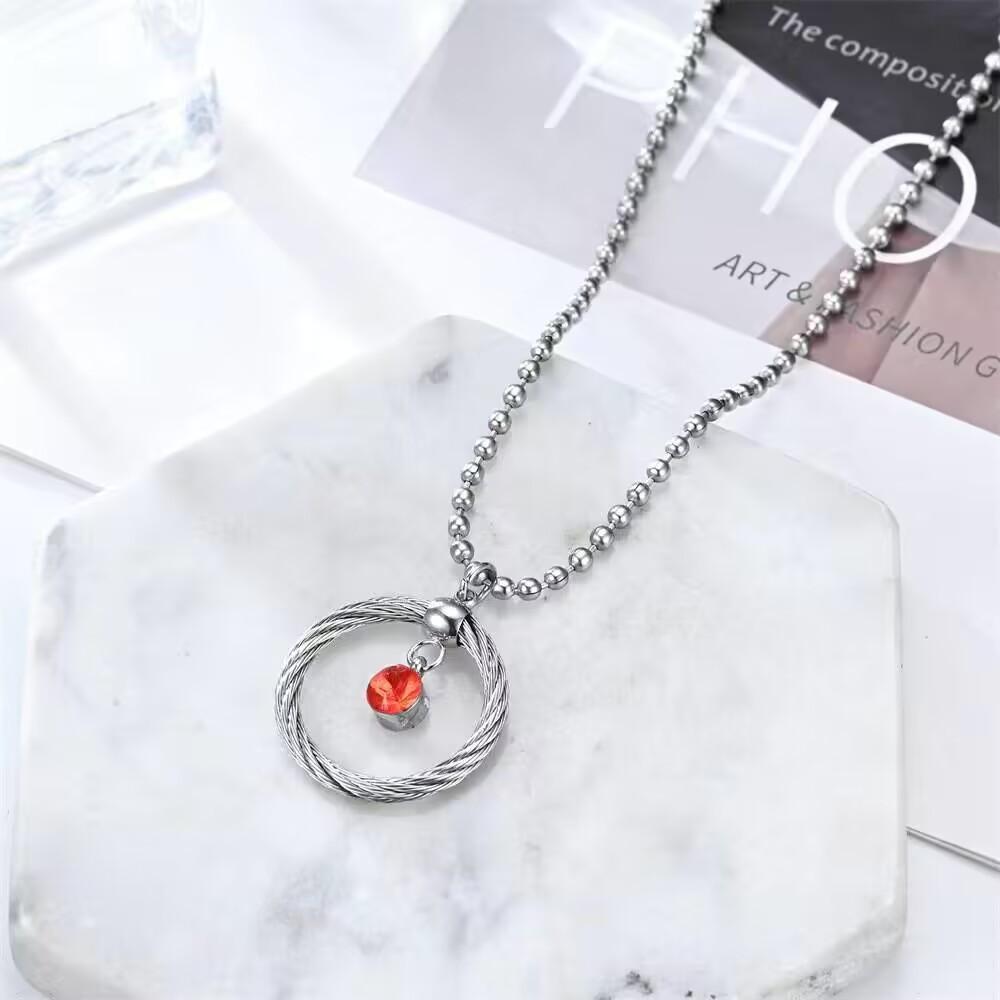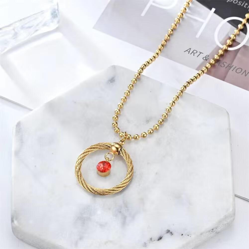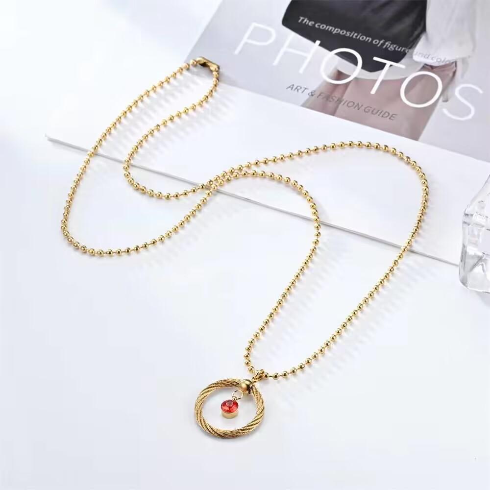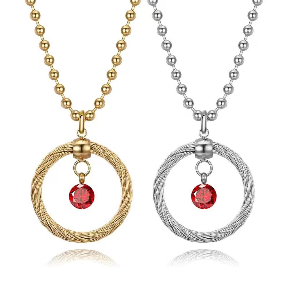 Colgante de acero de titanio con temperamento de lujo ligero, anillo de viento frío de moda con circonitas, collar de cuentas redondas popular, joyería al por mayor