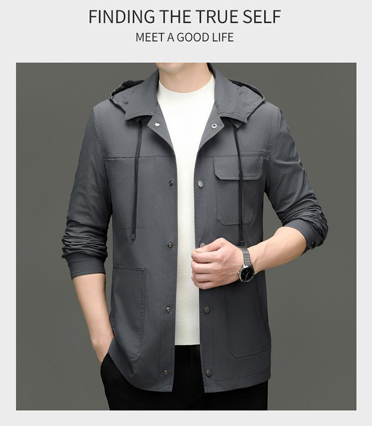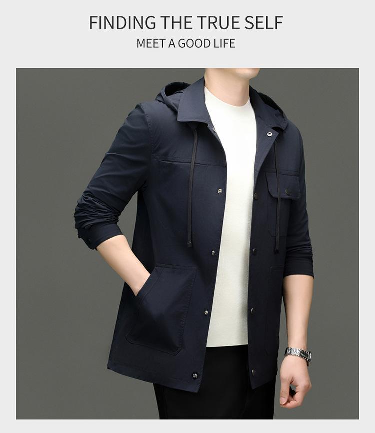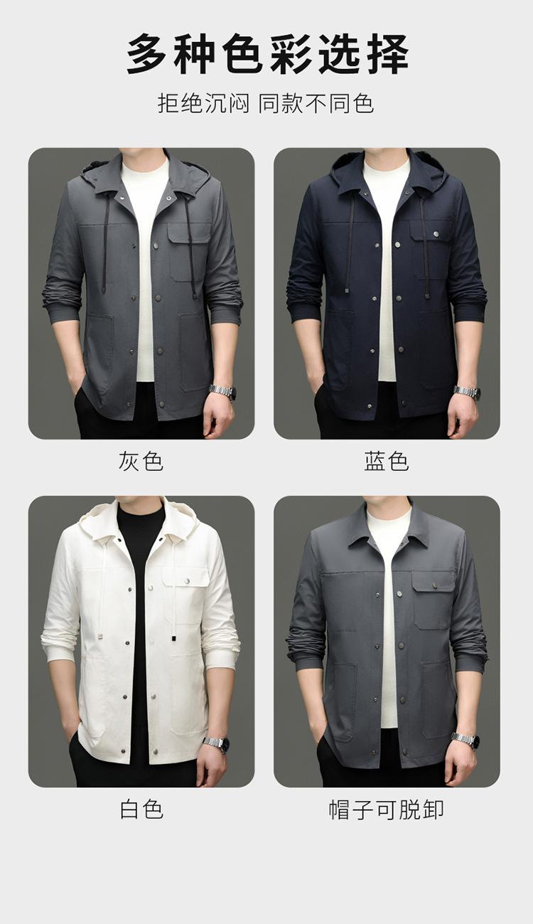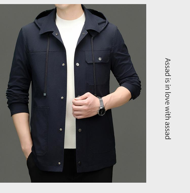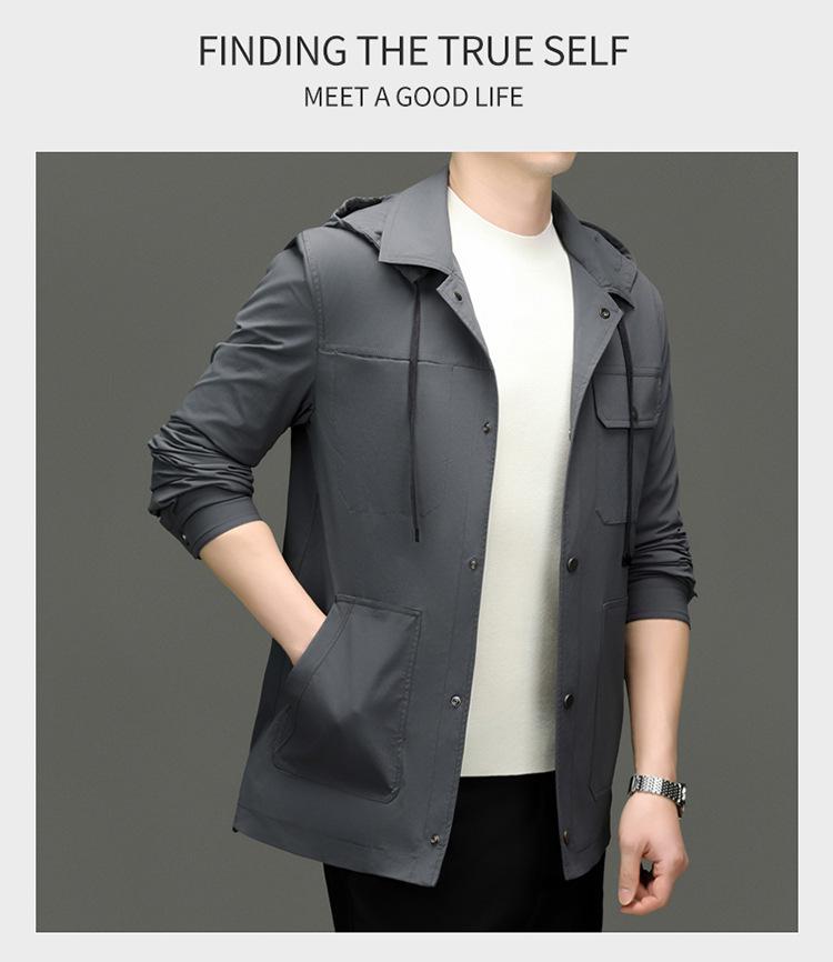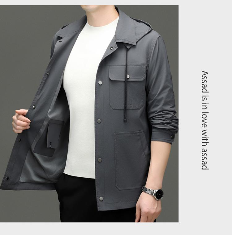 Chaqueta para hombre de mediana edad, primavera y otoño, nueva, con capucha desmontable, informal, sencilla, fina, para negocios y moda.