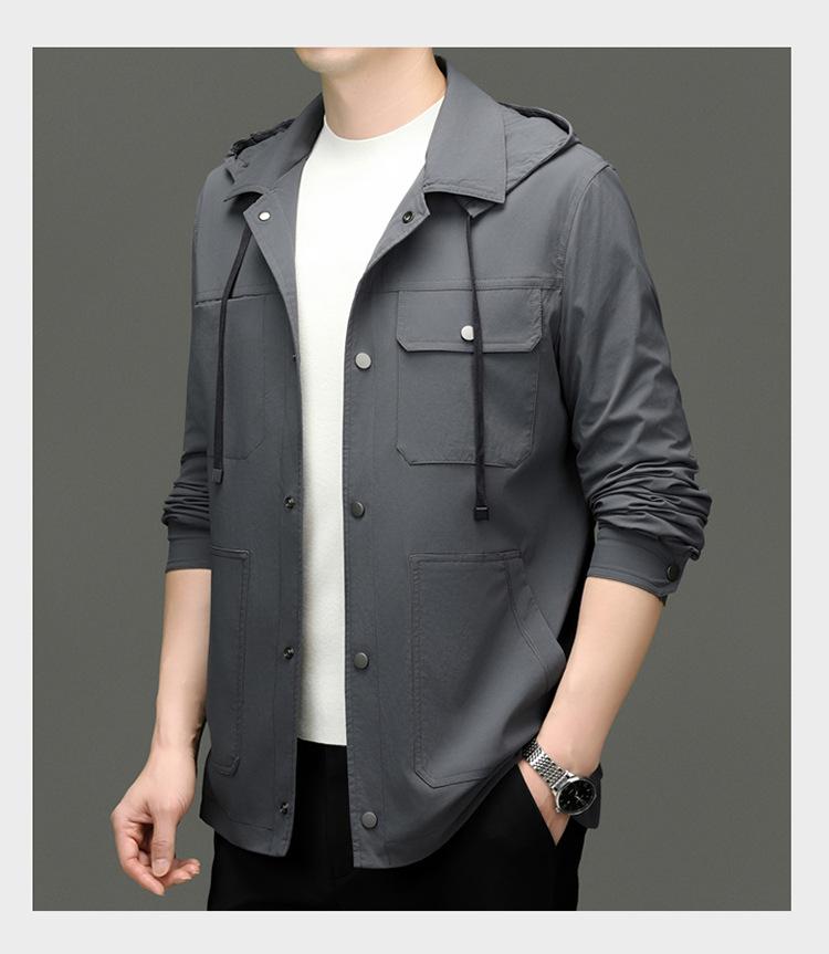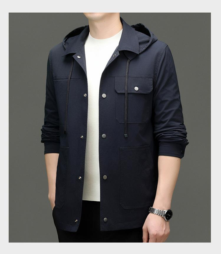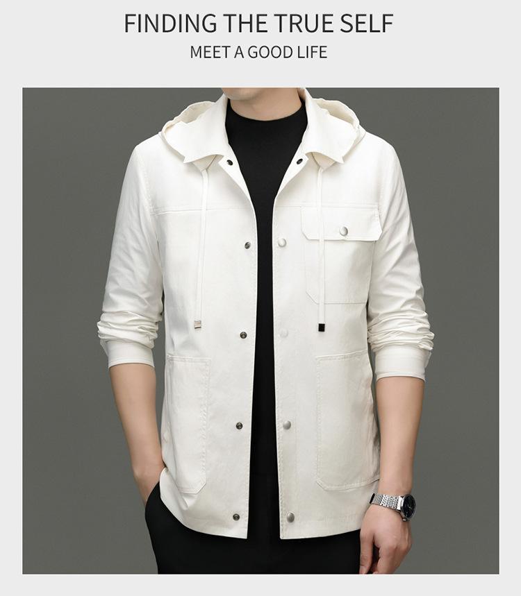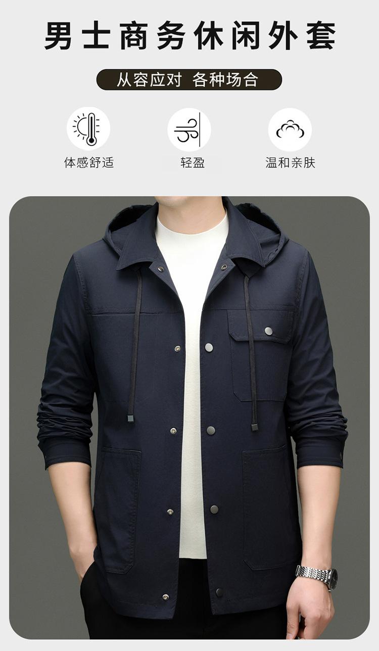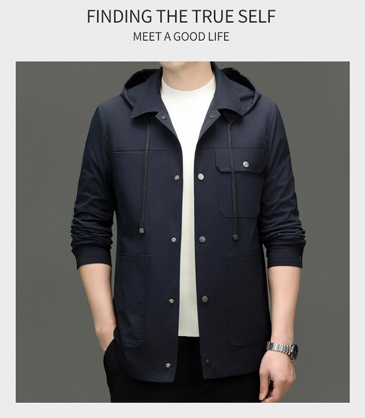 Chaqueta para hombre de mediana edad, primavera y otoño, nueva, con capucha desmontable, informal, sencilla, fina, para negocios y moda.