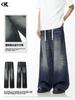 Jeans Azul Retrô Americano 11Kn para Homens e Mulheres com Cordões, Ajustável, Look Emagrecedor, Calças Casuais Soltas Retas Lavadas na Moda