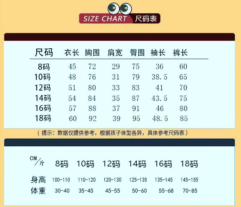 Size 8 (100-110cm), Size 10 (110-120cm), Size 12 (120-130cm), Size 14 (130-140cm), Size 16 (140-150cm), Size 18 (150-155cm)