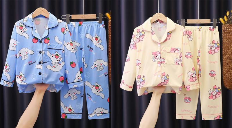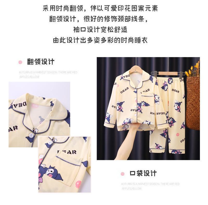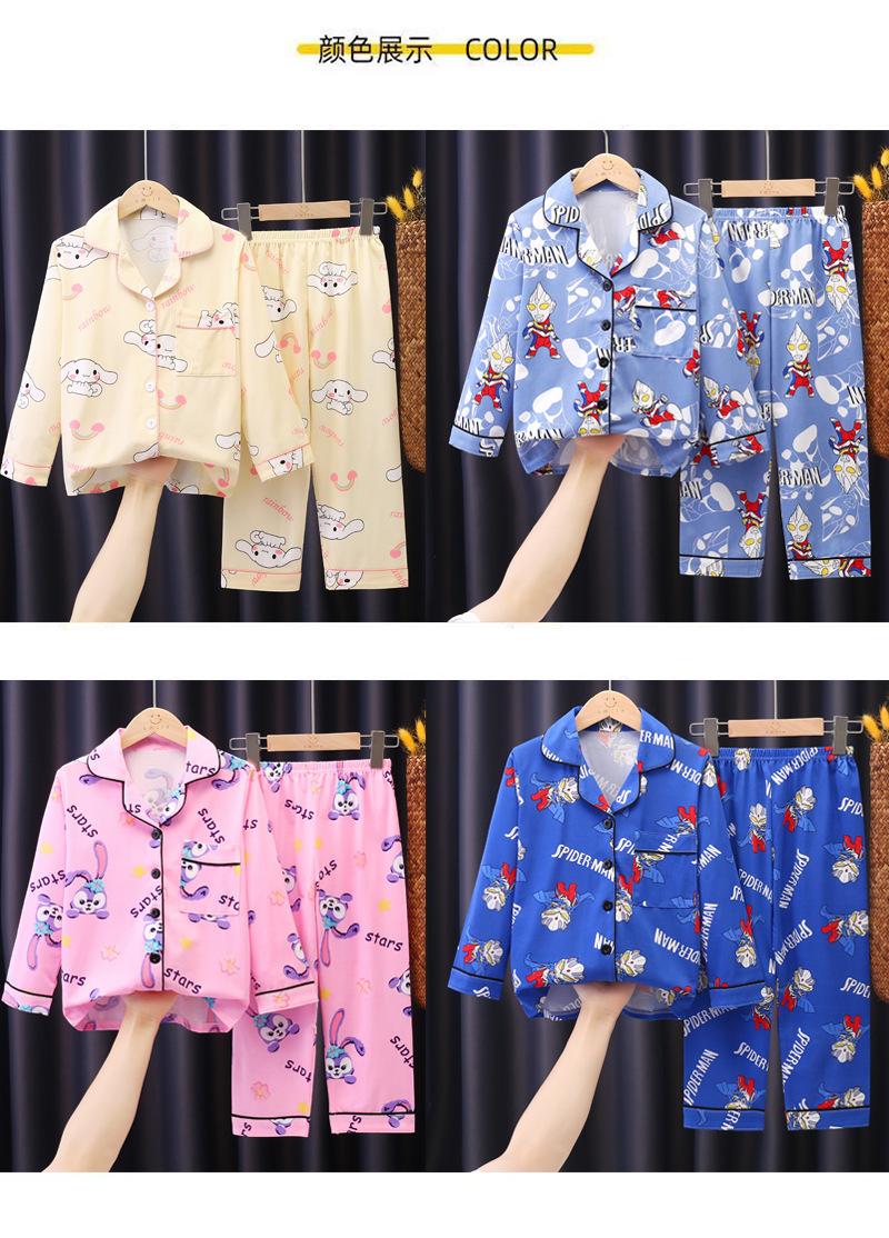Pijamas para niños, primavera y otoño, de manga larga, para niñas, bebés, niños, dibujos animados, para niños medianos y grandes, traje fino para el hogar