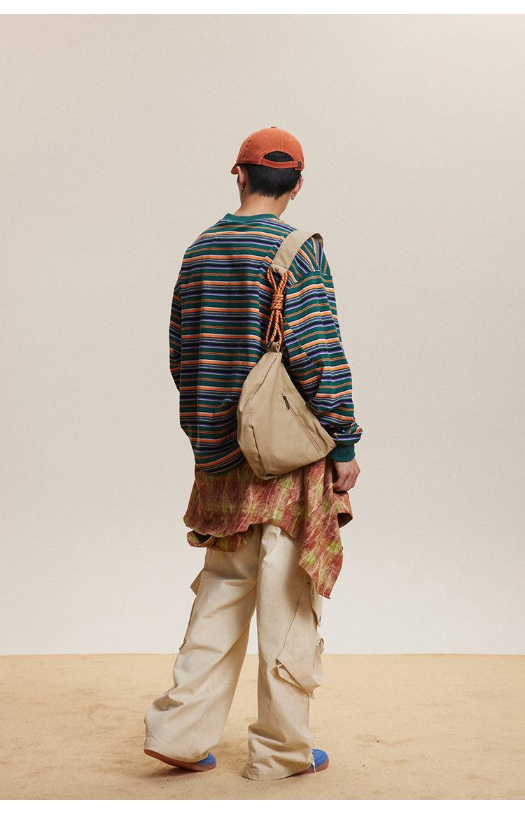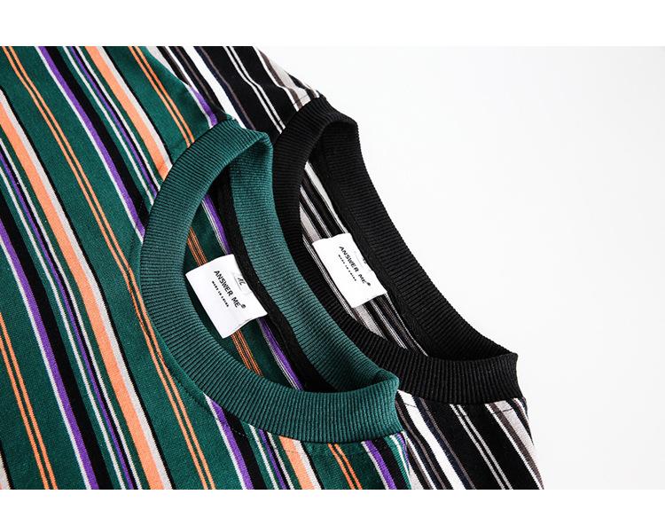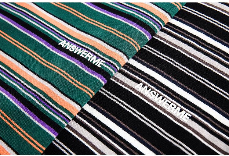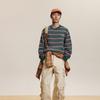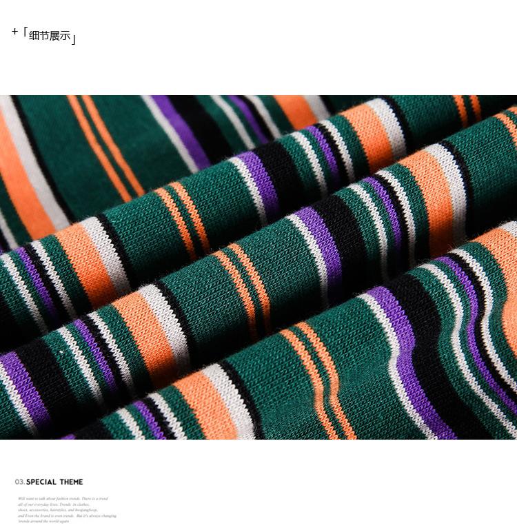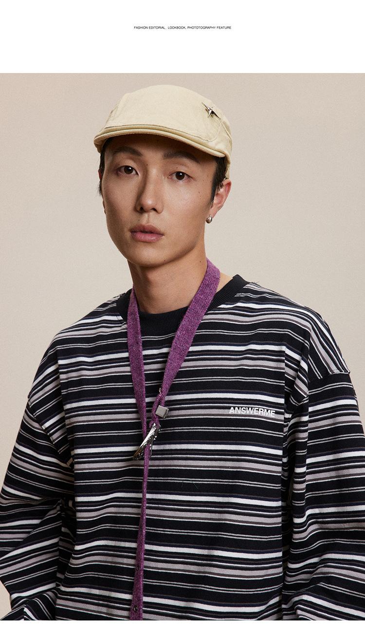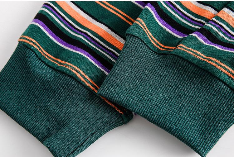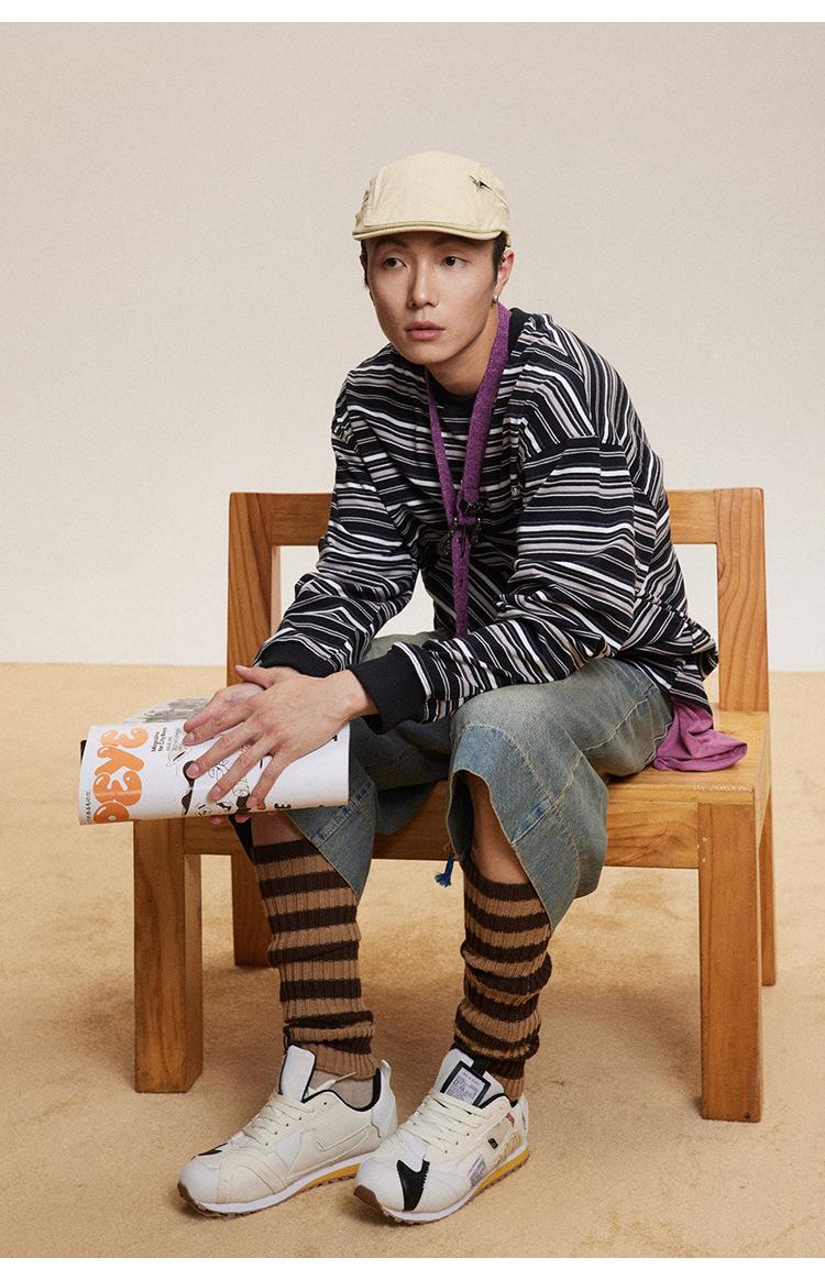 Camiseta de Manga Larga a Rayas Tendencia Urbana Americana Pareja Suéter Holgado Casual Cuello Redondo Pulóver Nacional de Moda