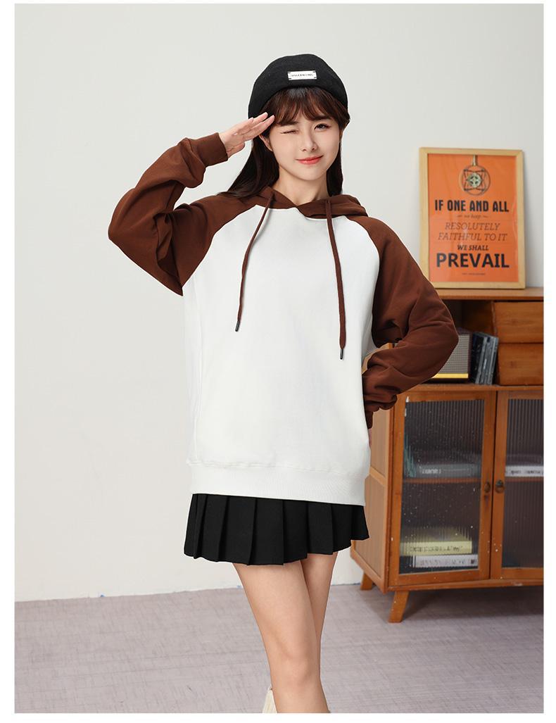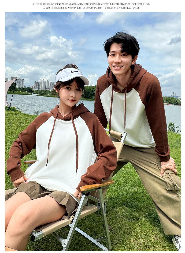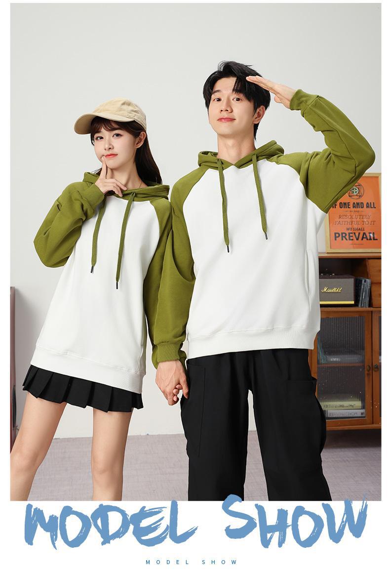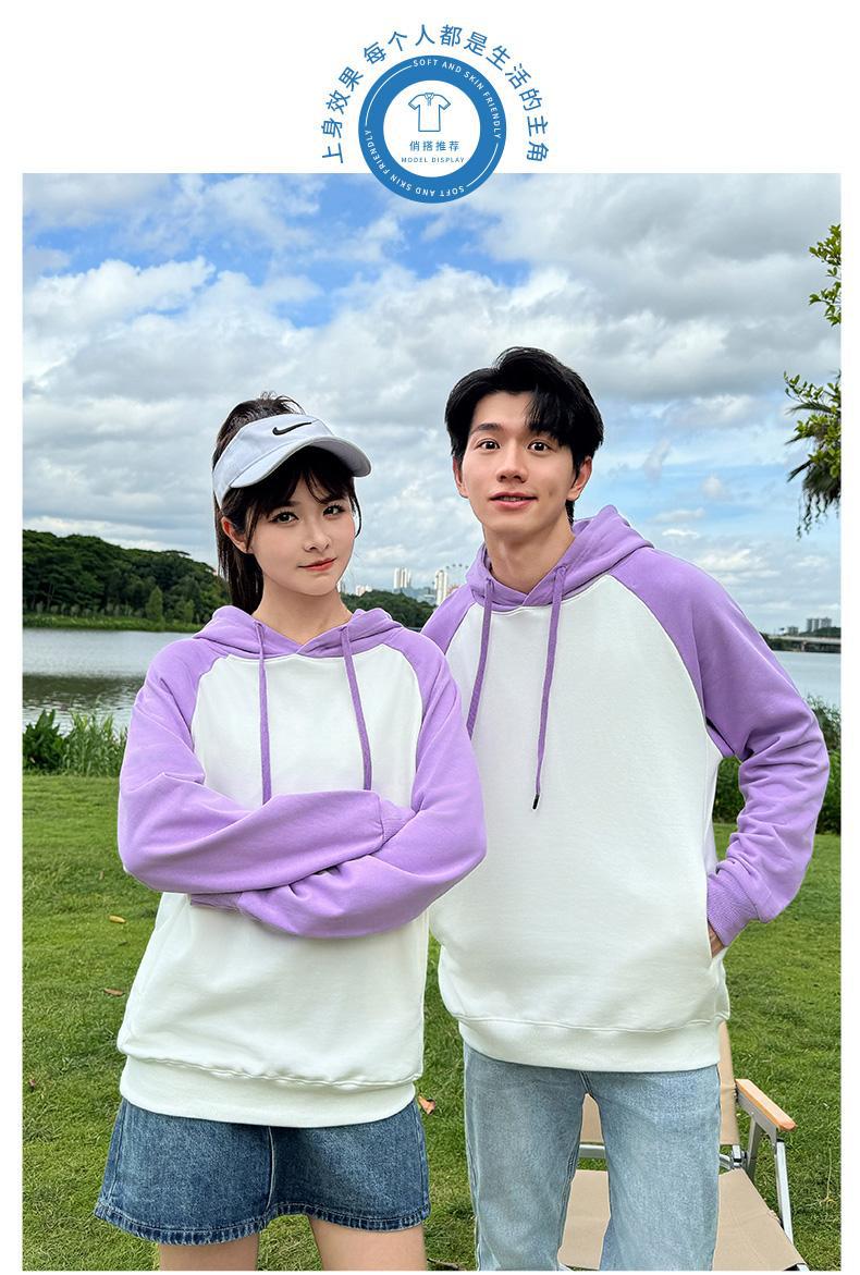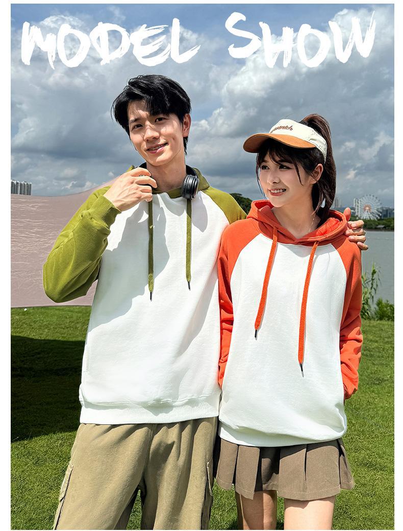 Suéter pesado de algodón peinado de 430 g con costuras en los hombros en contraste, sudadera con capucha holgada casual para hombre y mujer