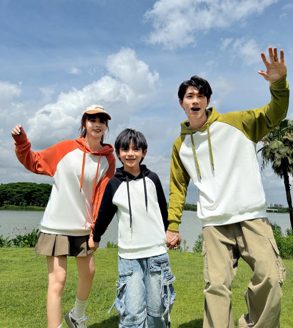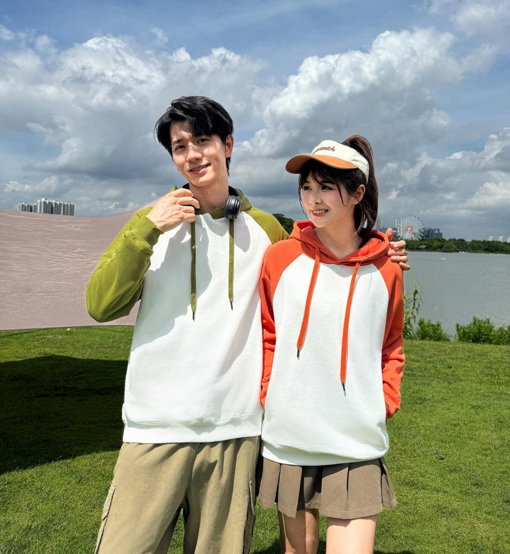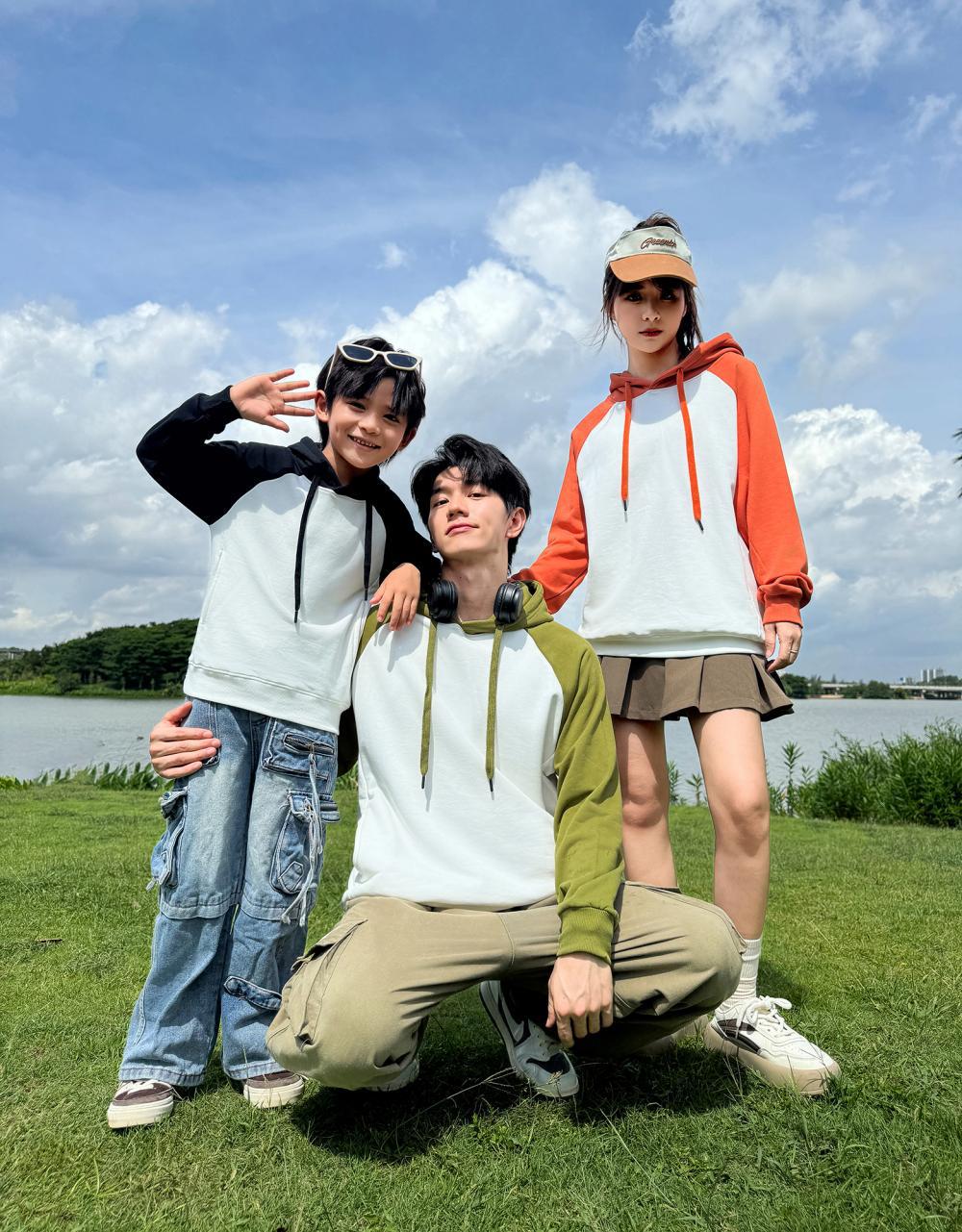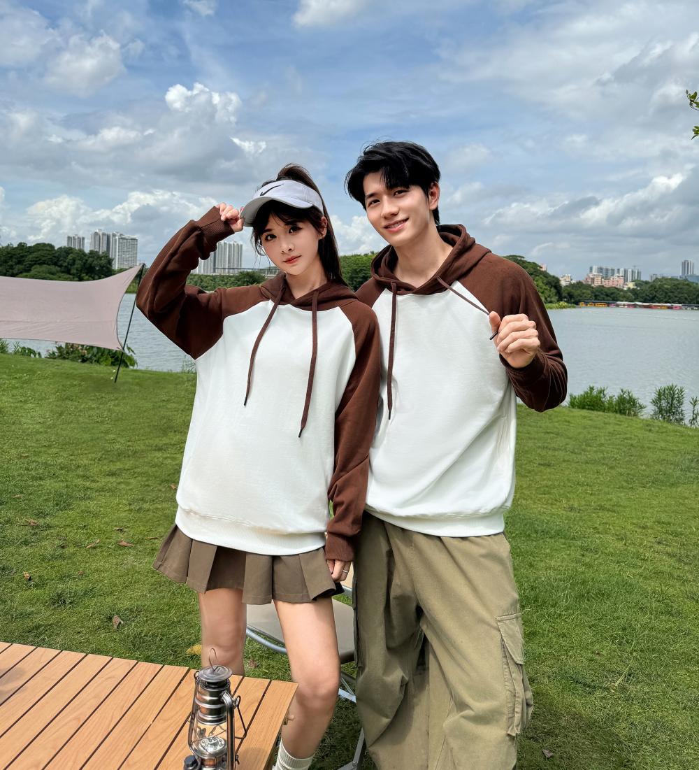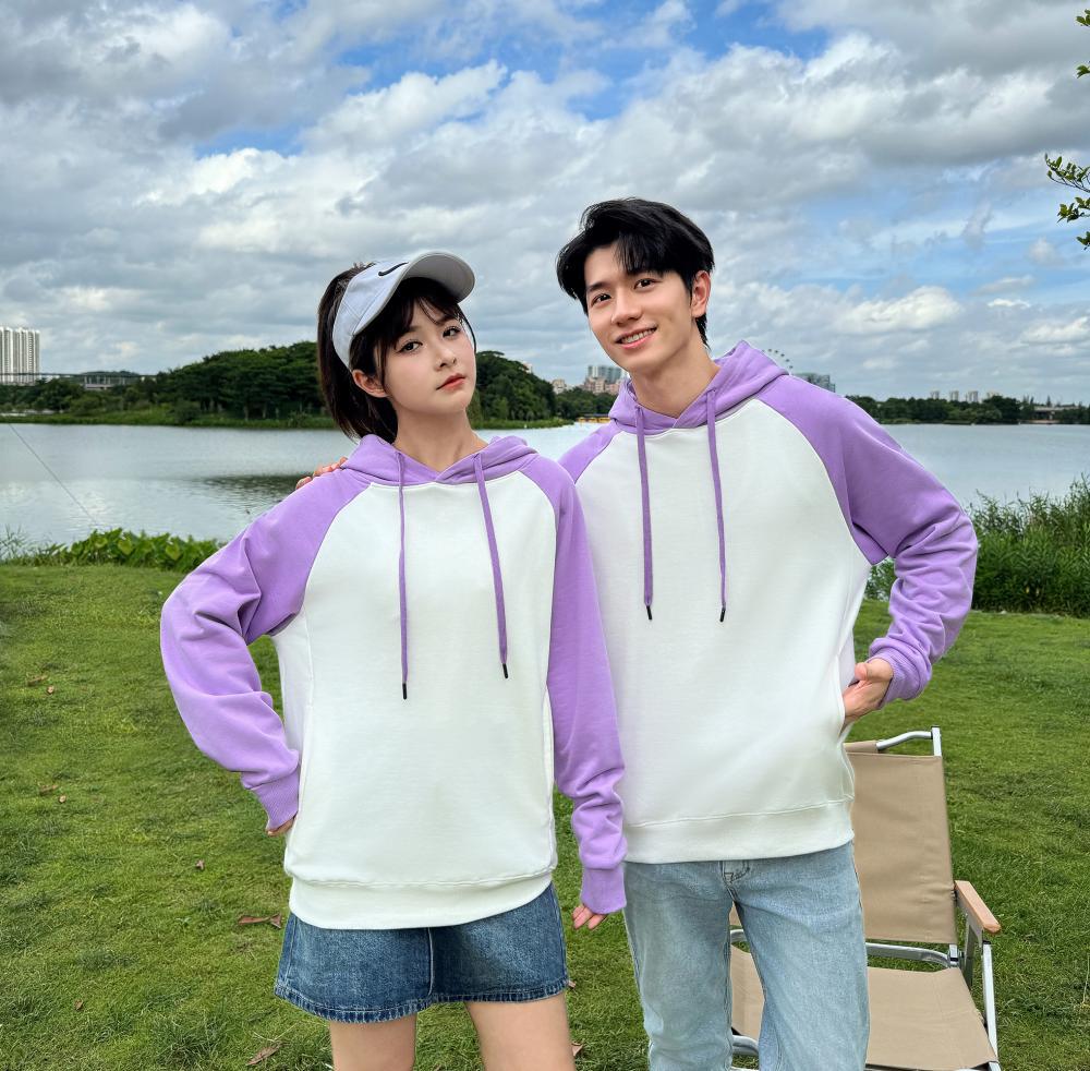 Suéter pesado de algodón peinado de 430 g con costuras en los hombros en contraste, sudadera con capucha holgada casual para hombre y mujer