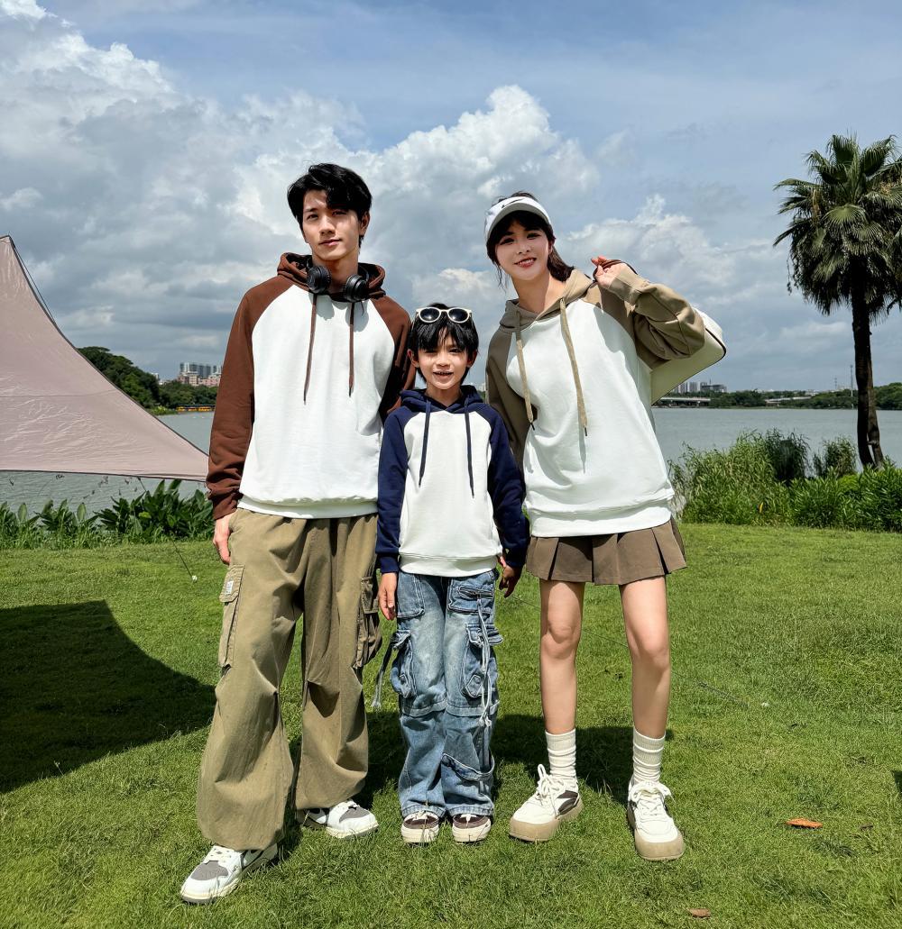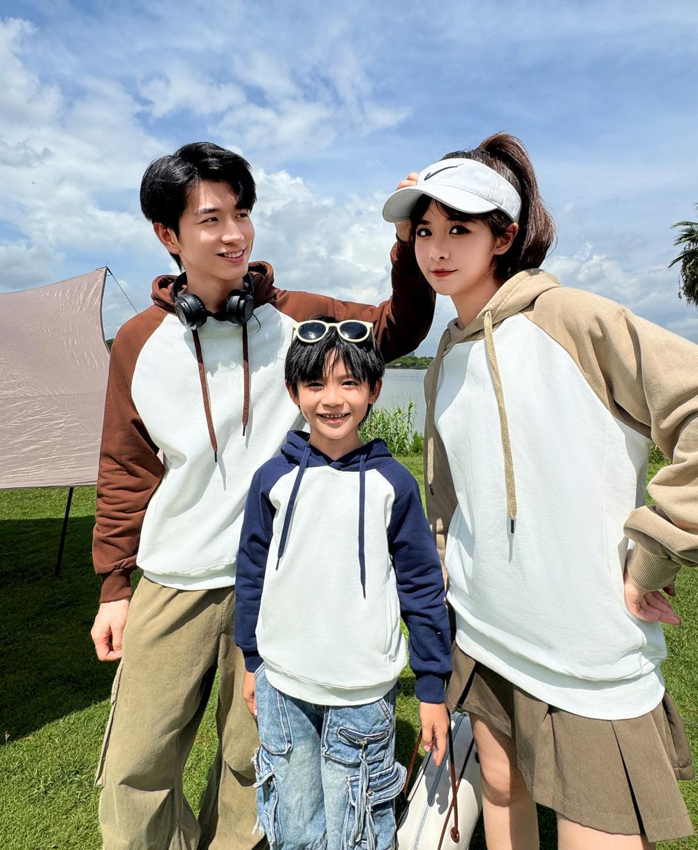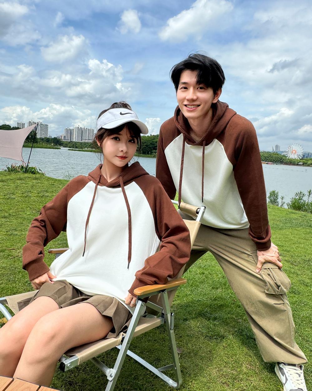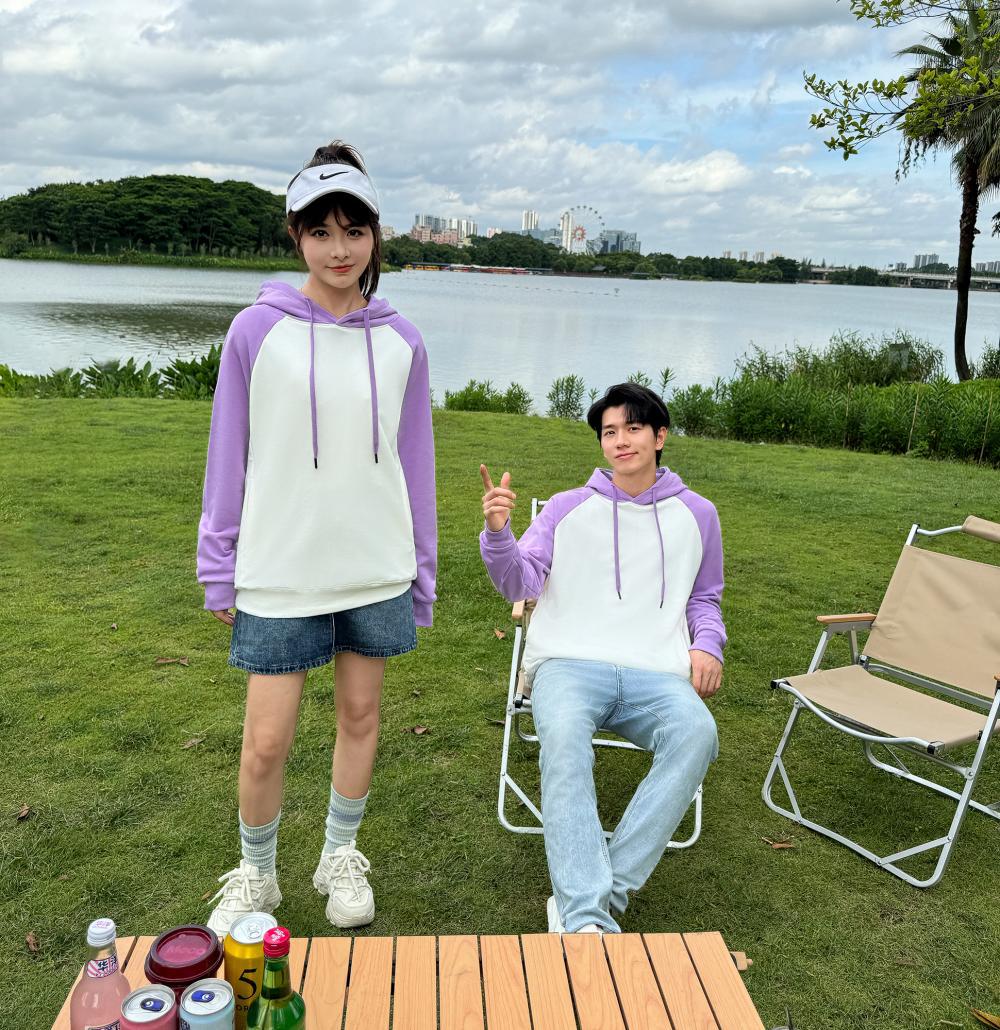Suéter pesado de algodón peinado de 430 g con costuras en los hombros en contraste, sudadera con capucha holgada casual para hombre y mujer
