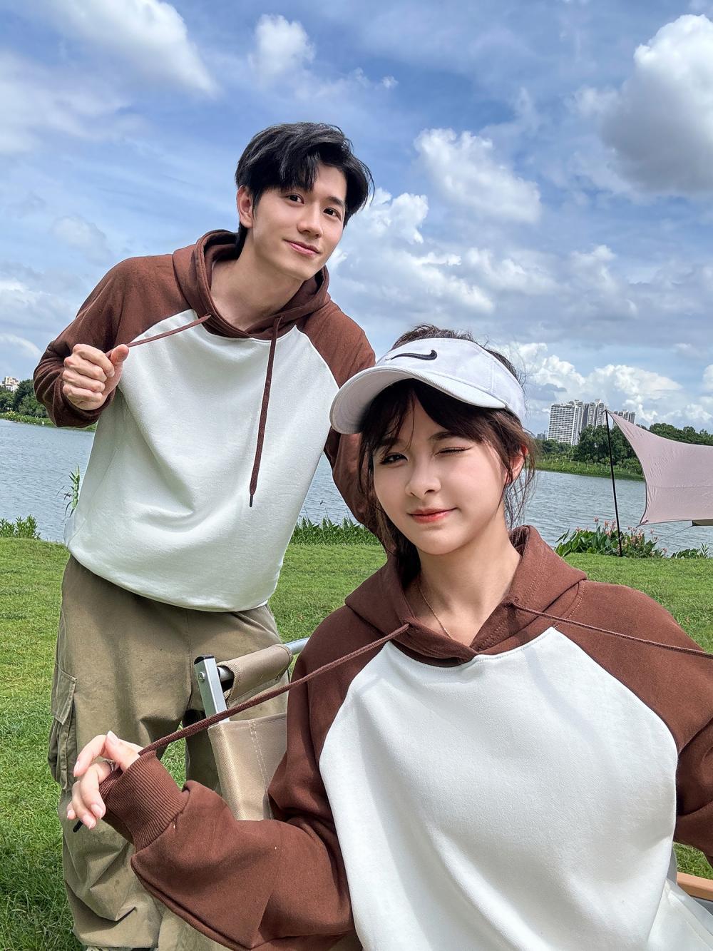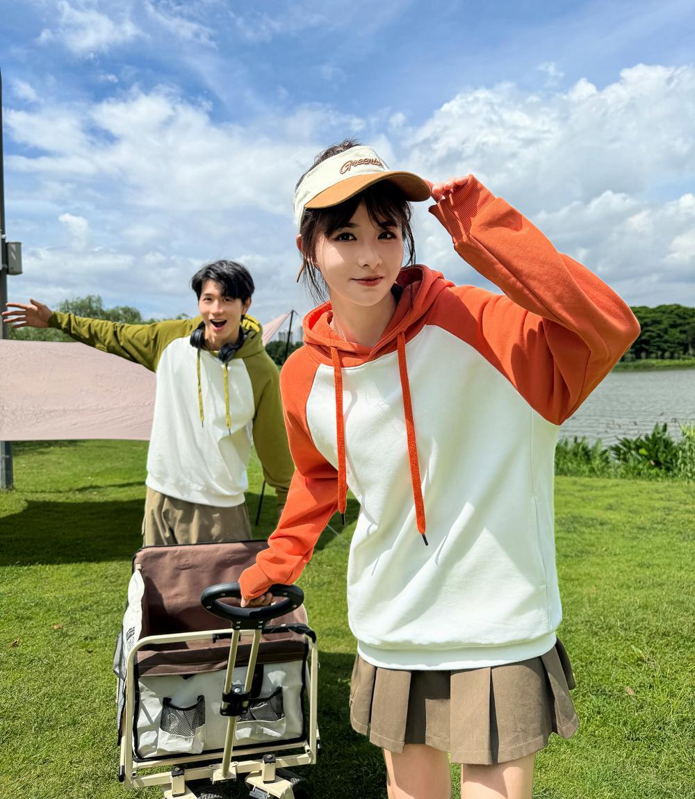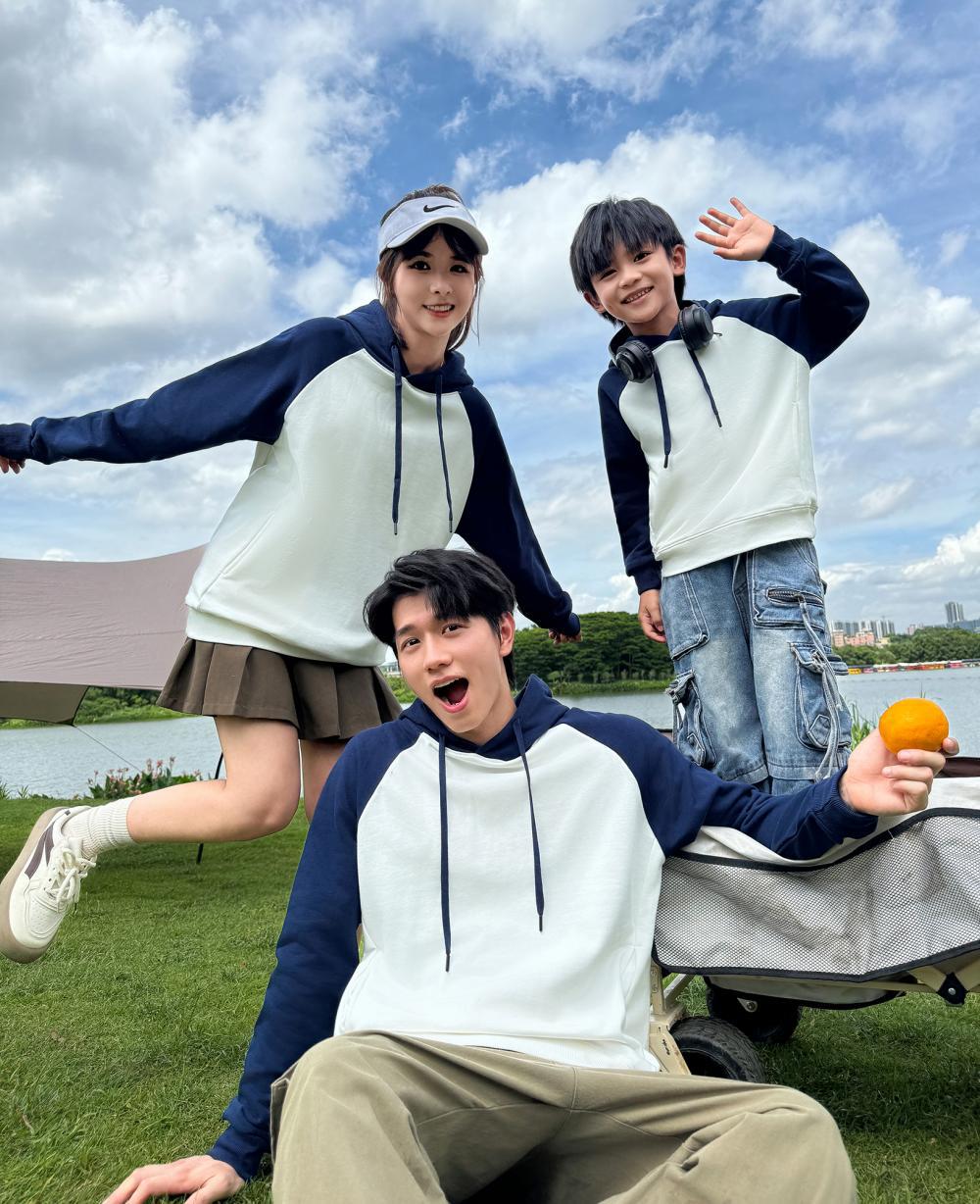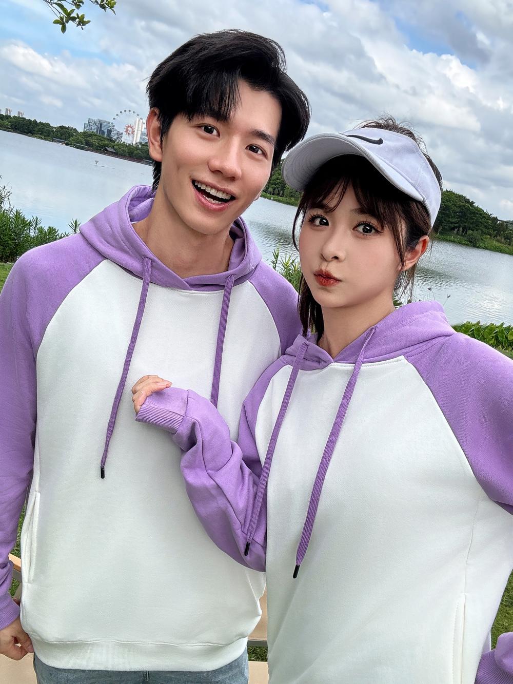 Suéter pesado de algodón peinado de 430 g con costuras en los hombros en contraste, sudadera con capucha holgada casual para hombre y mujer