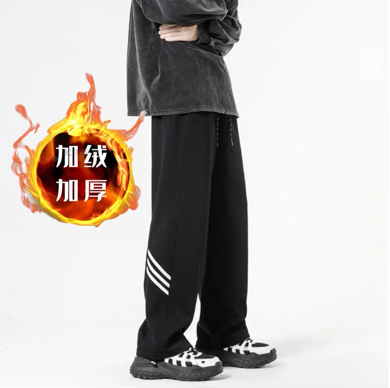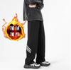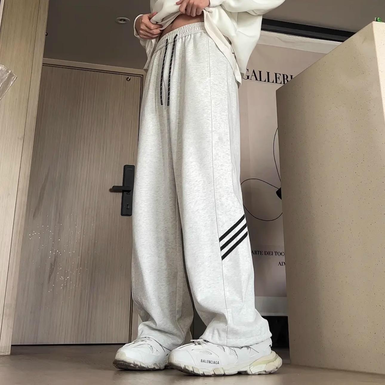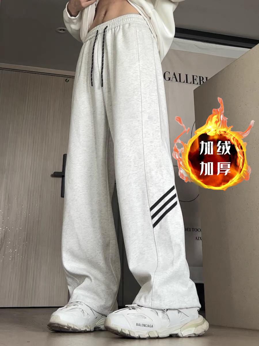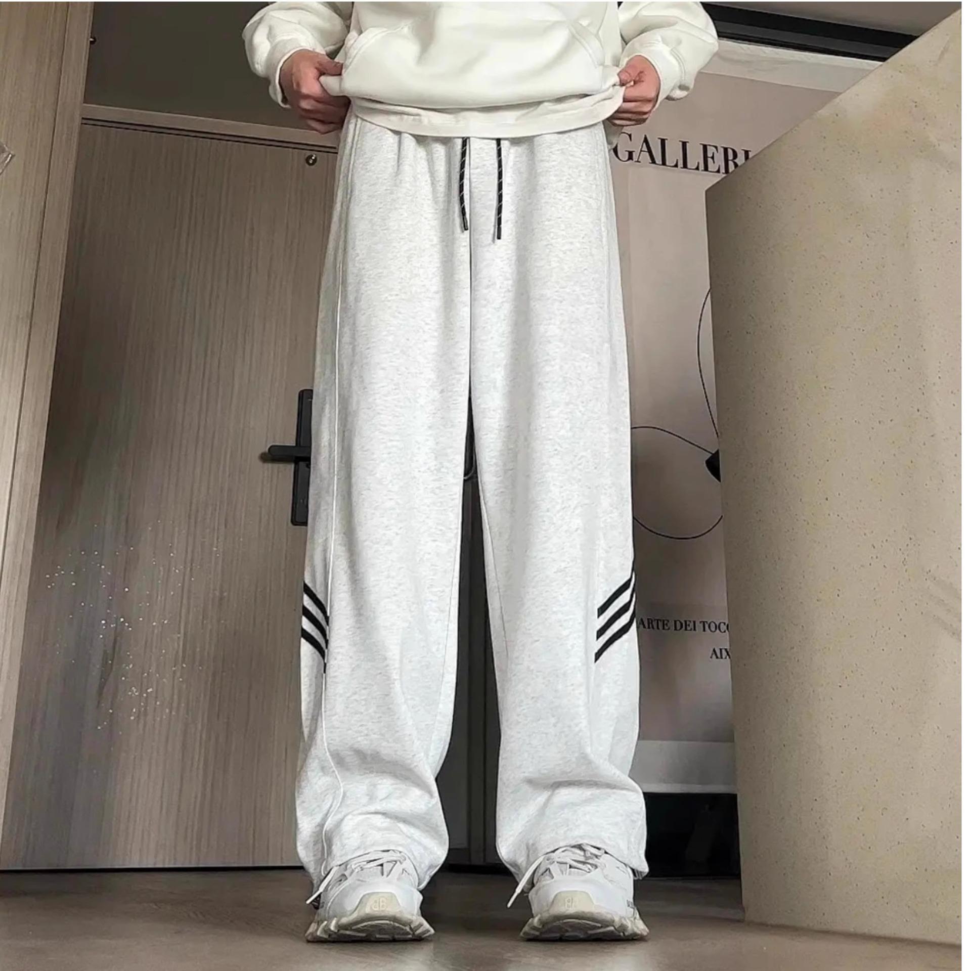 Pantalones deportivos grises holgados gruesos con forro polar para combinar con todo, de pierna recta, otoño e invierno, a rayas, estilo urbano, casual, con cordón