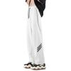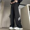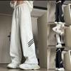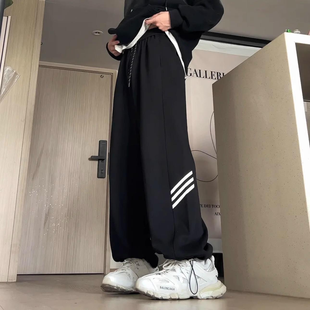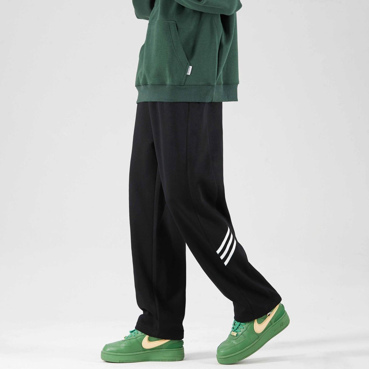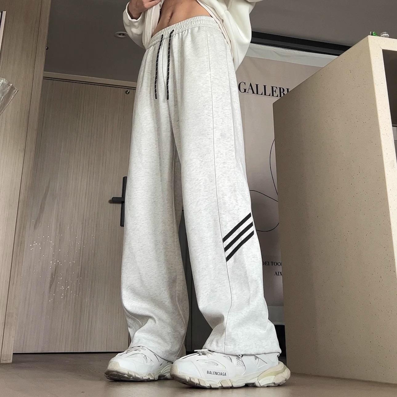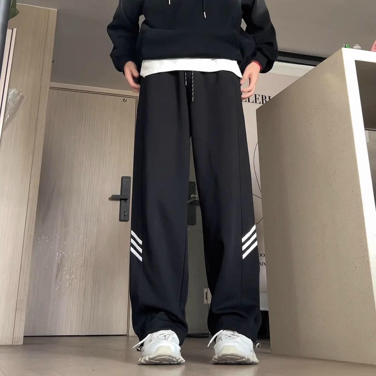Pantalones deportivos grises holgados gruesos con forro polar para combinar con todo, de pierna recta, otoño e invierno, a rayas, estilo urbano, casual, con cordón