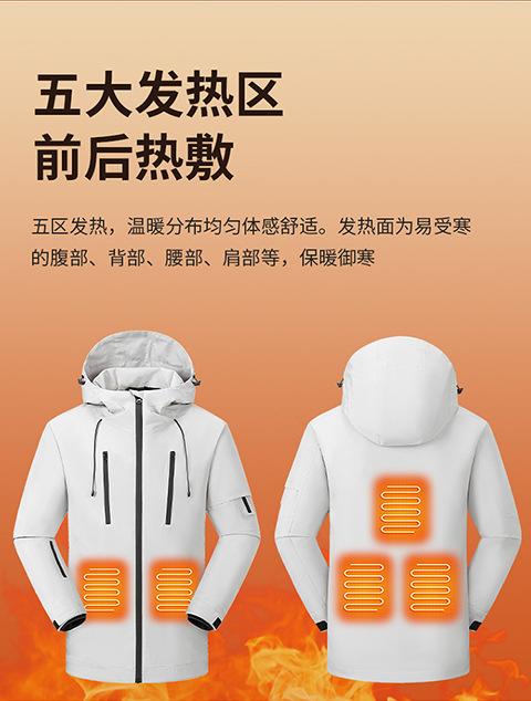 Ropa con carga de calefacción transfronteriza, nueva zona 5, calefacción inteligente, calefacción eléctrica USB, control de temperatura, ropa con carga a prueba de viento y cálida