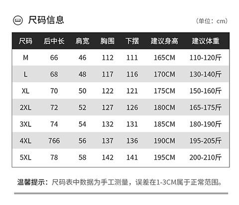 M, L, XL, 2XL, 3XL, 4XL, 5XL
