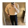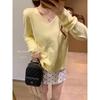 Suéter de Punto Suave y Encerado de Otoño e Invierno para la Universidad con Solapa en V Profunda Ins Combinable Suelto Cremoso-Blanco Suéter Jersey Abrigo