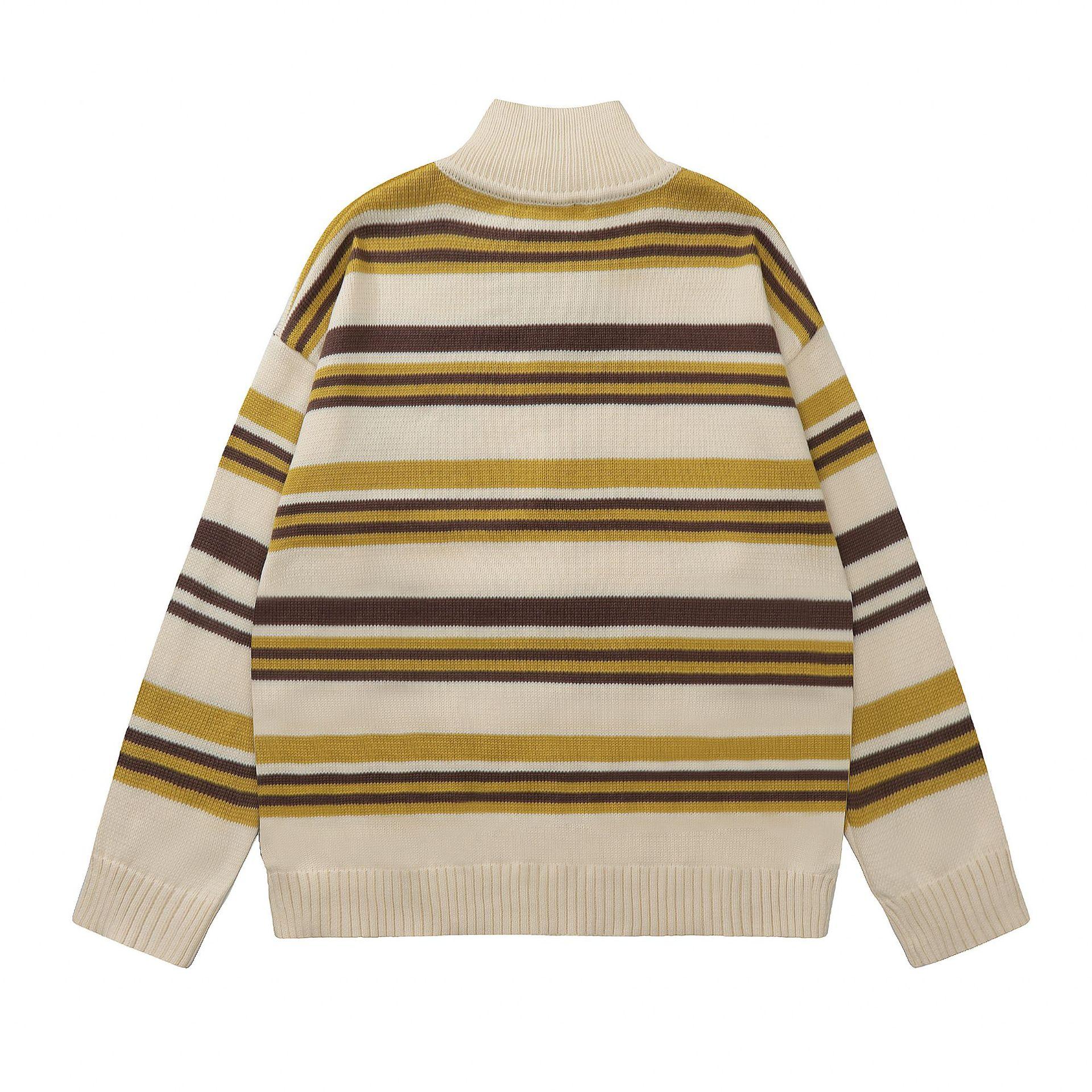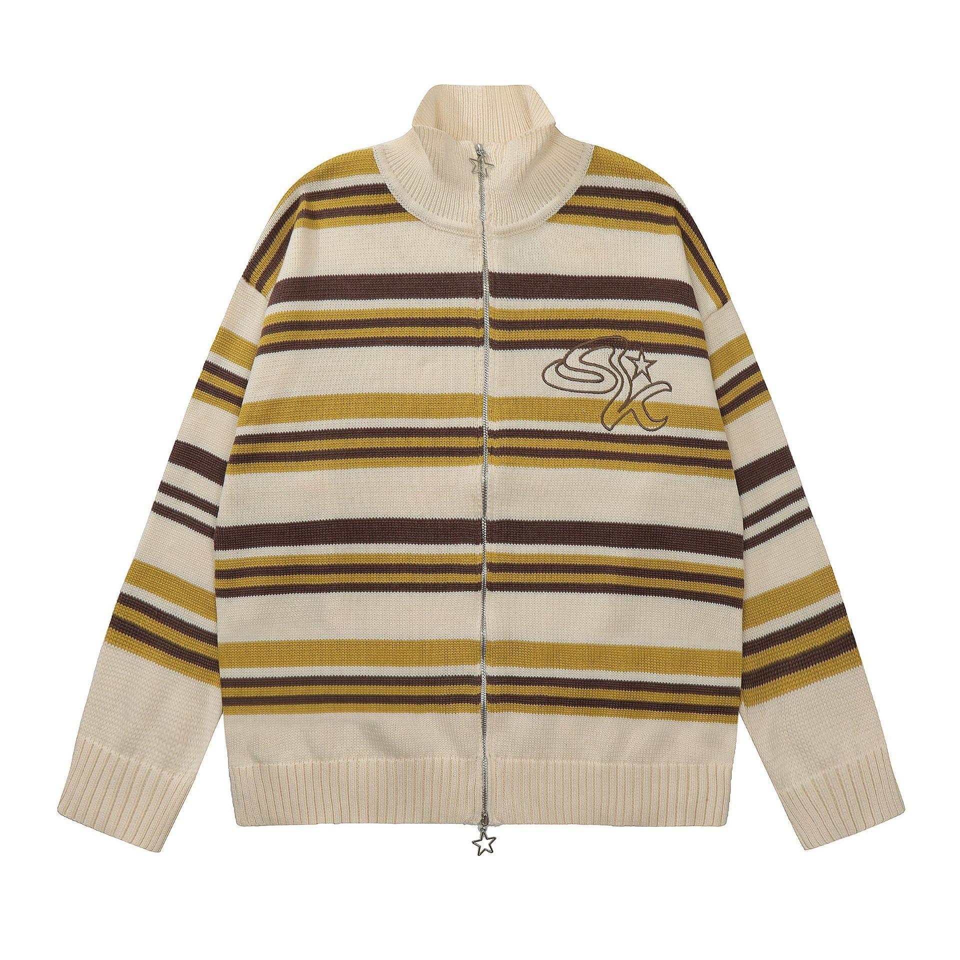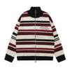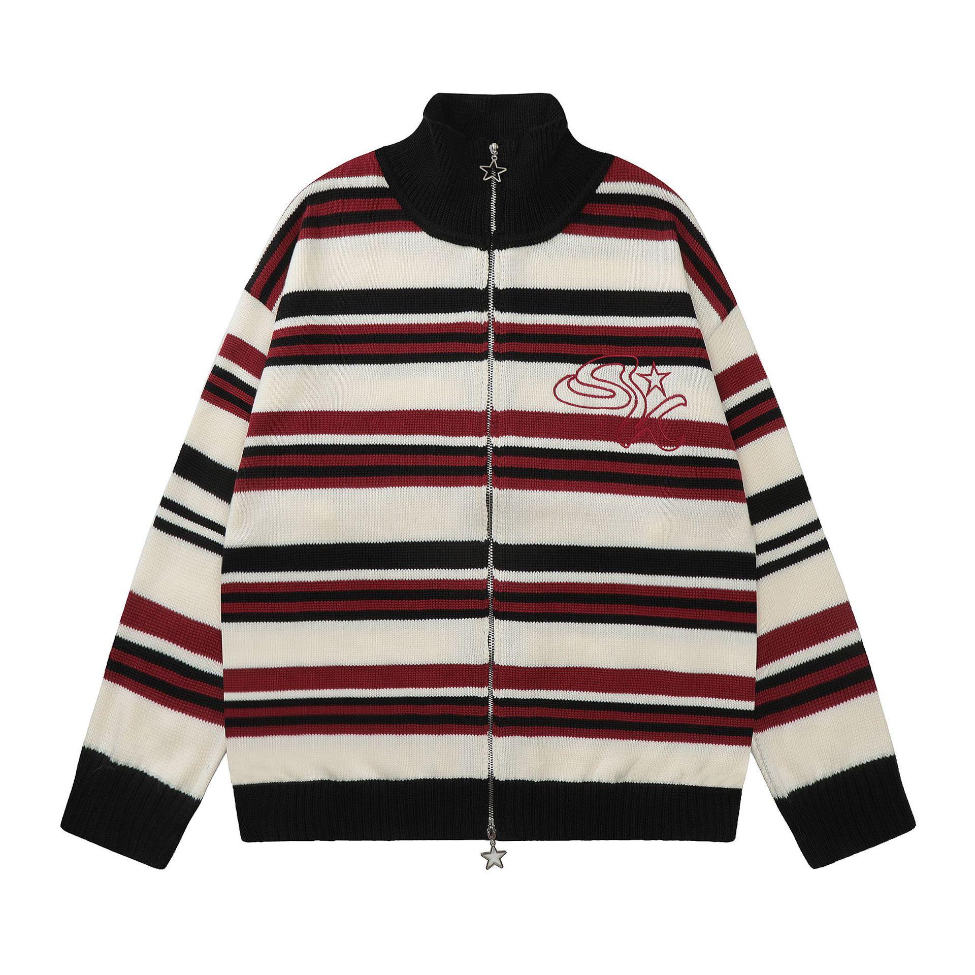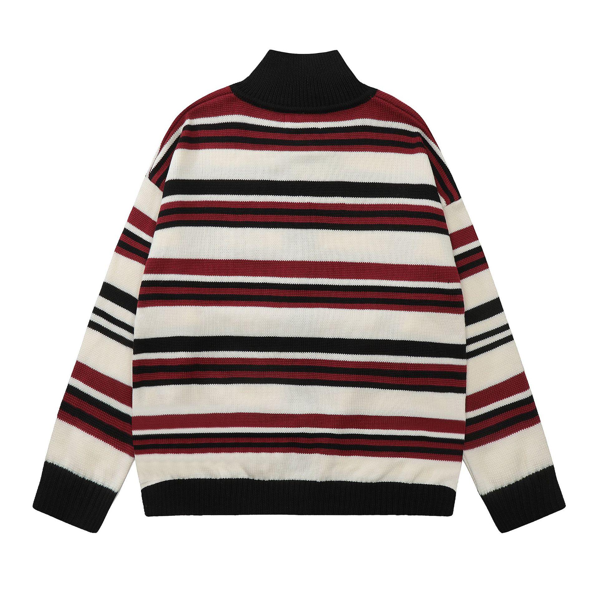 Suéter a rayas con costuras de colores contrastantes para hombre y mujer, chaqueta de otoño e invierno estilo retro americano holgado con cremallera y cuello vertical