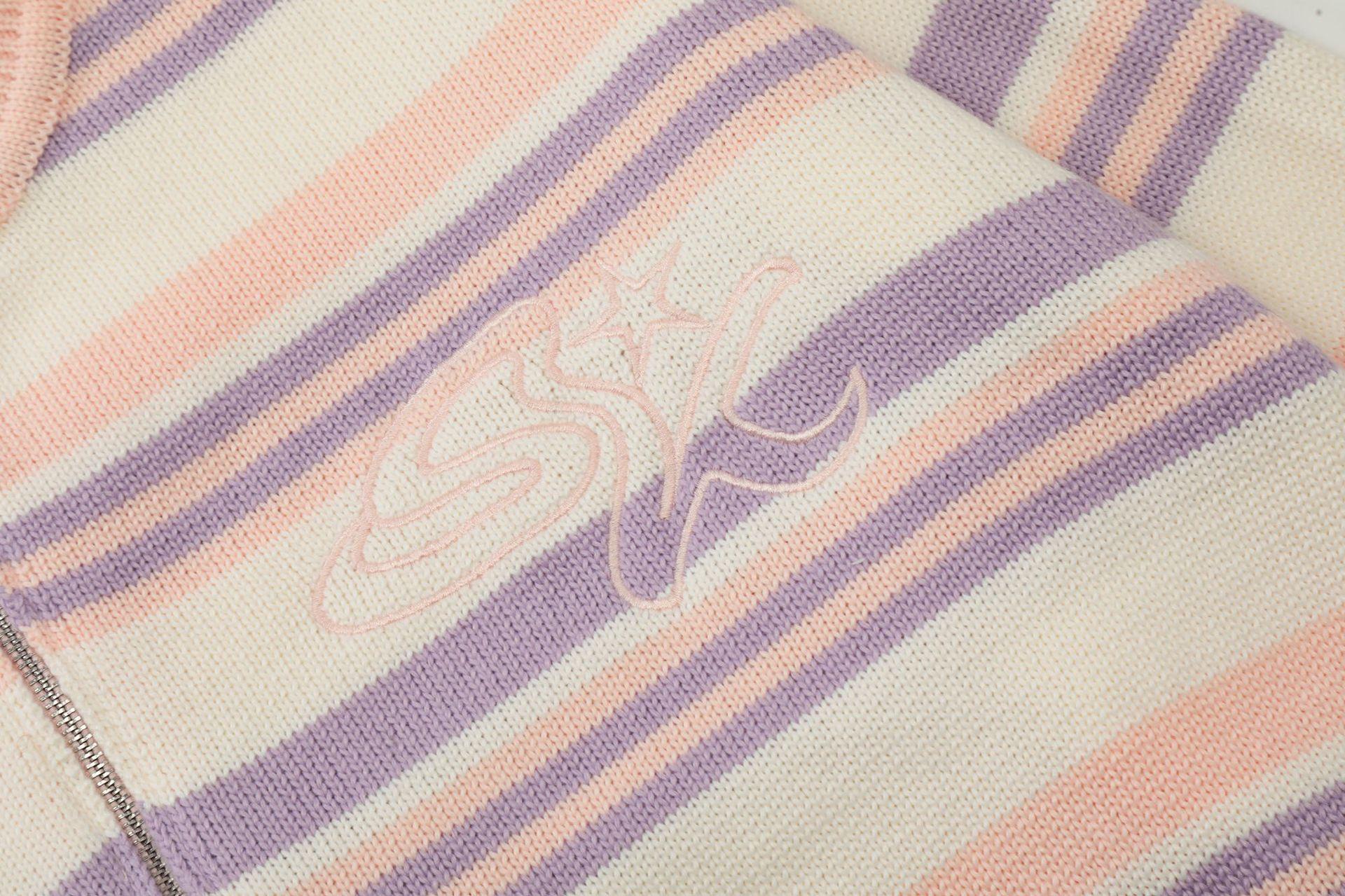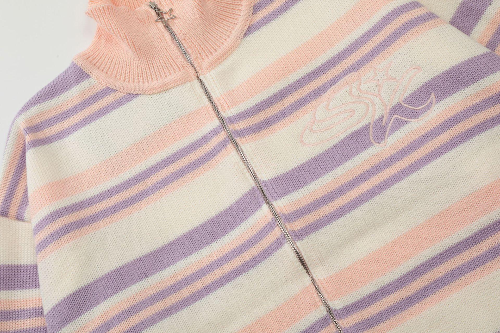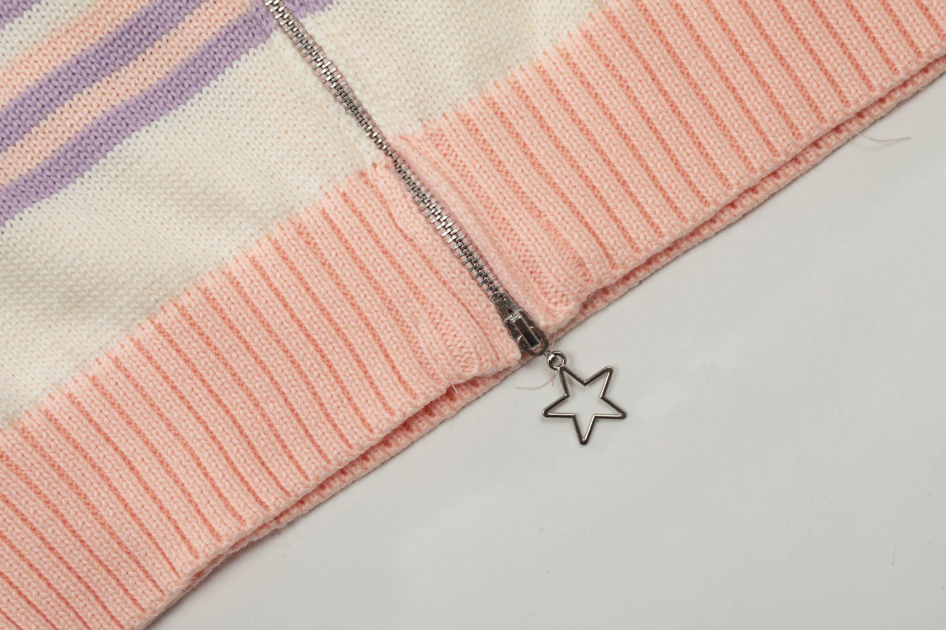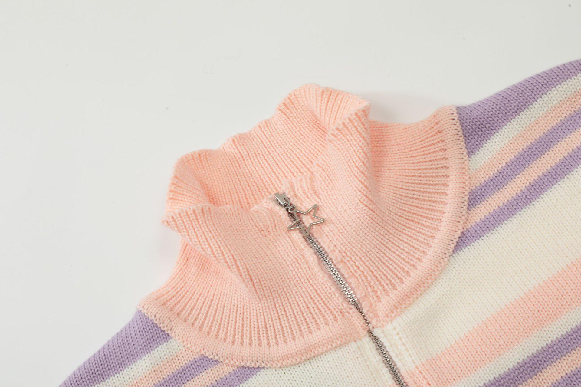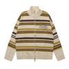 Suéter a rayas con costuras de colores contrastantes para hombre y mujer, chaqueta de otoño e invierno estilo retro americano holgado con cremallera y cuello vertical