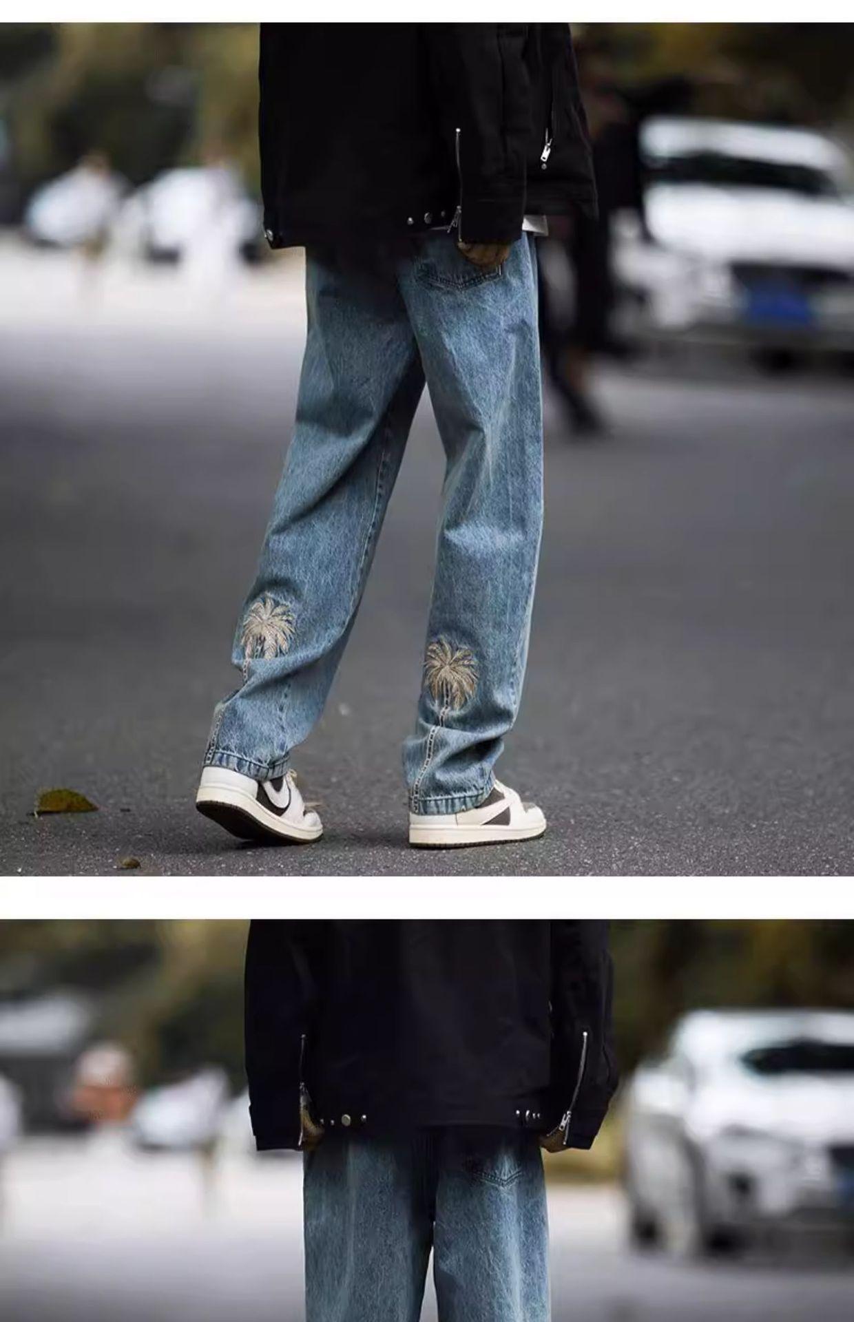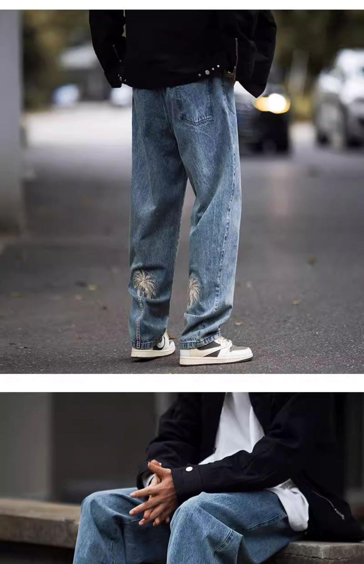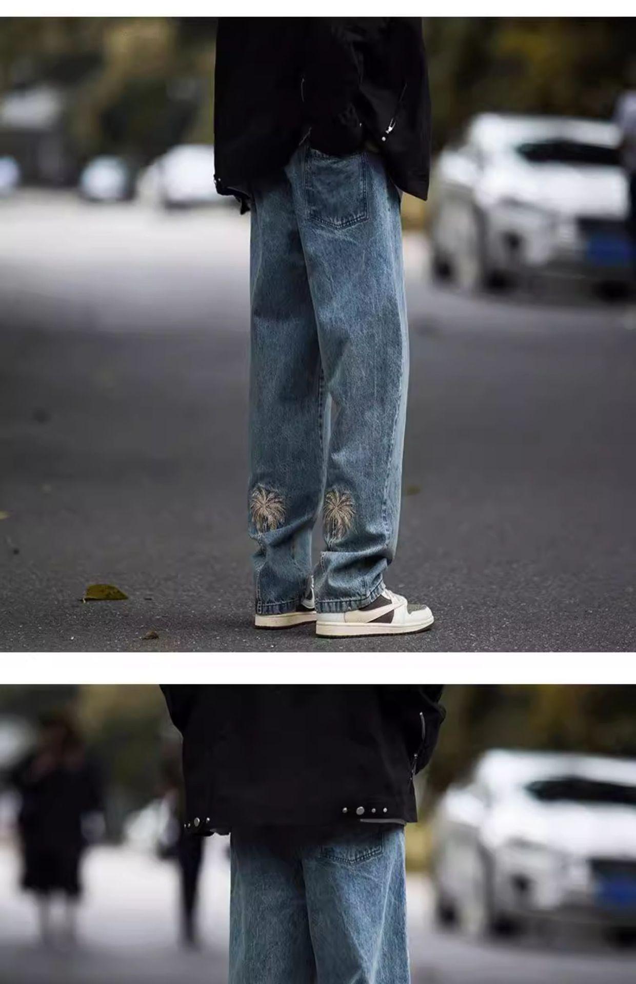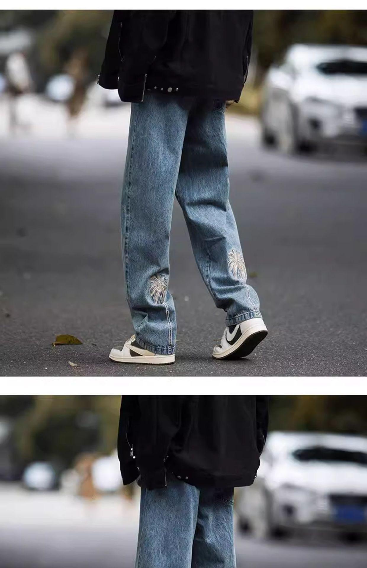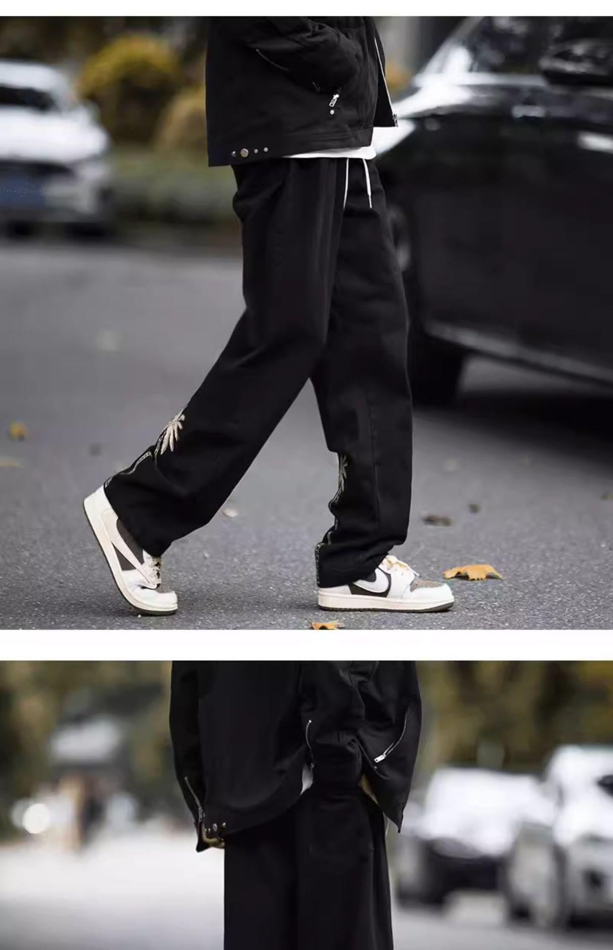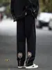 Jeans Bordados Retro Estilo Americano para Hombre y Mujer Otoño e Invierno Pantalones Casuales Rectos de Pierna Ancha Negros Modernos Combinables