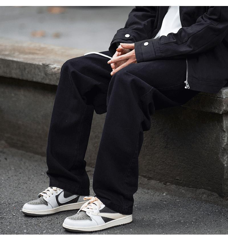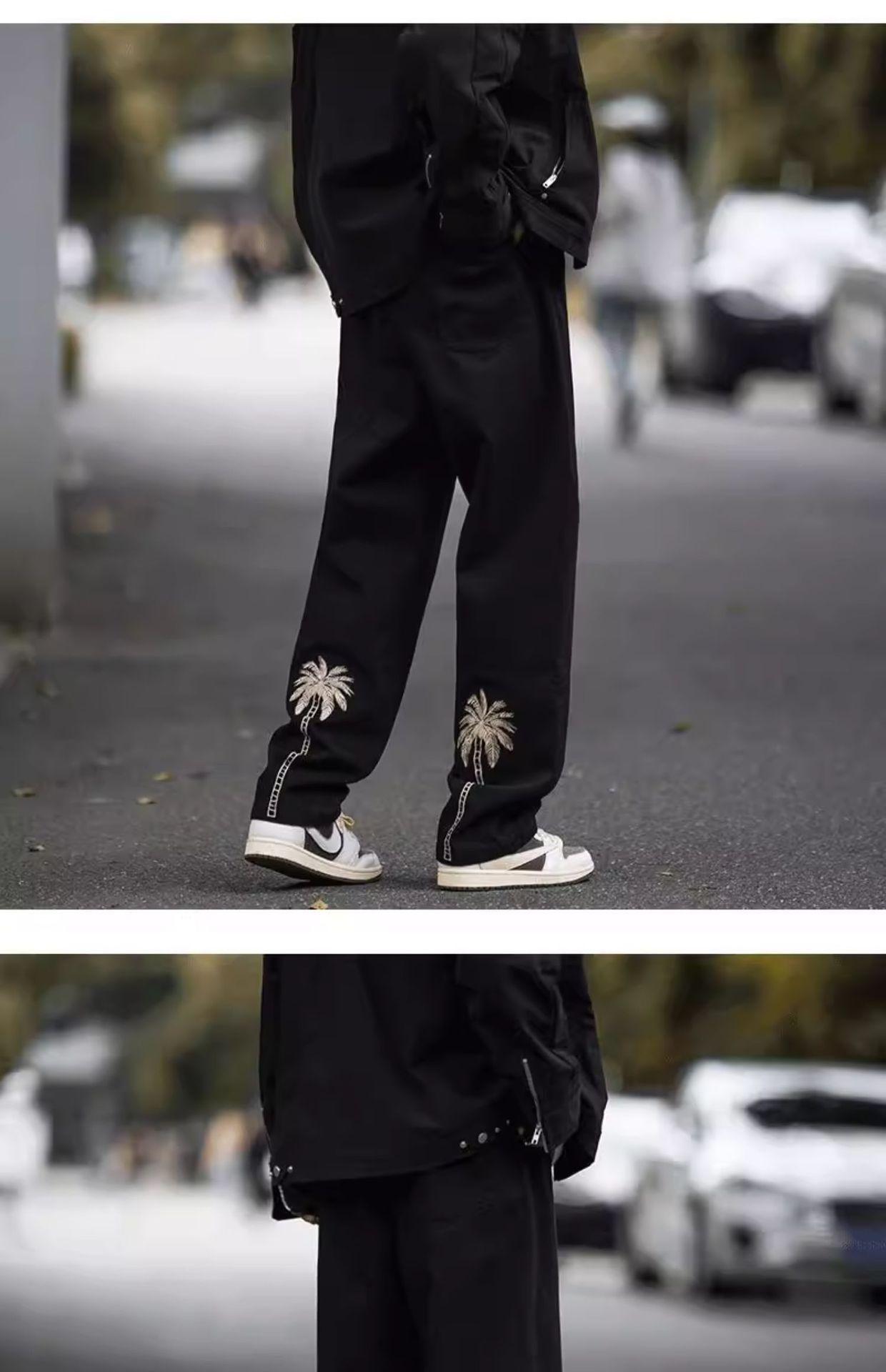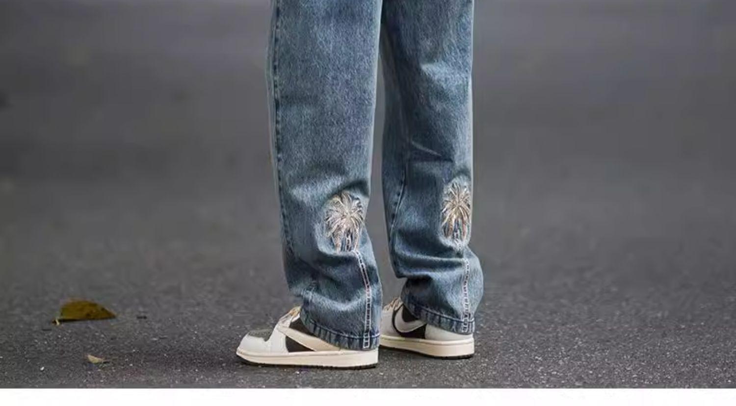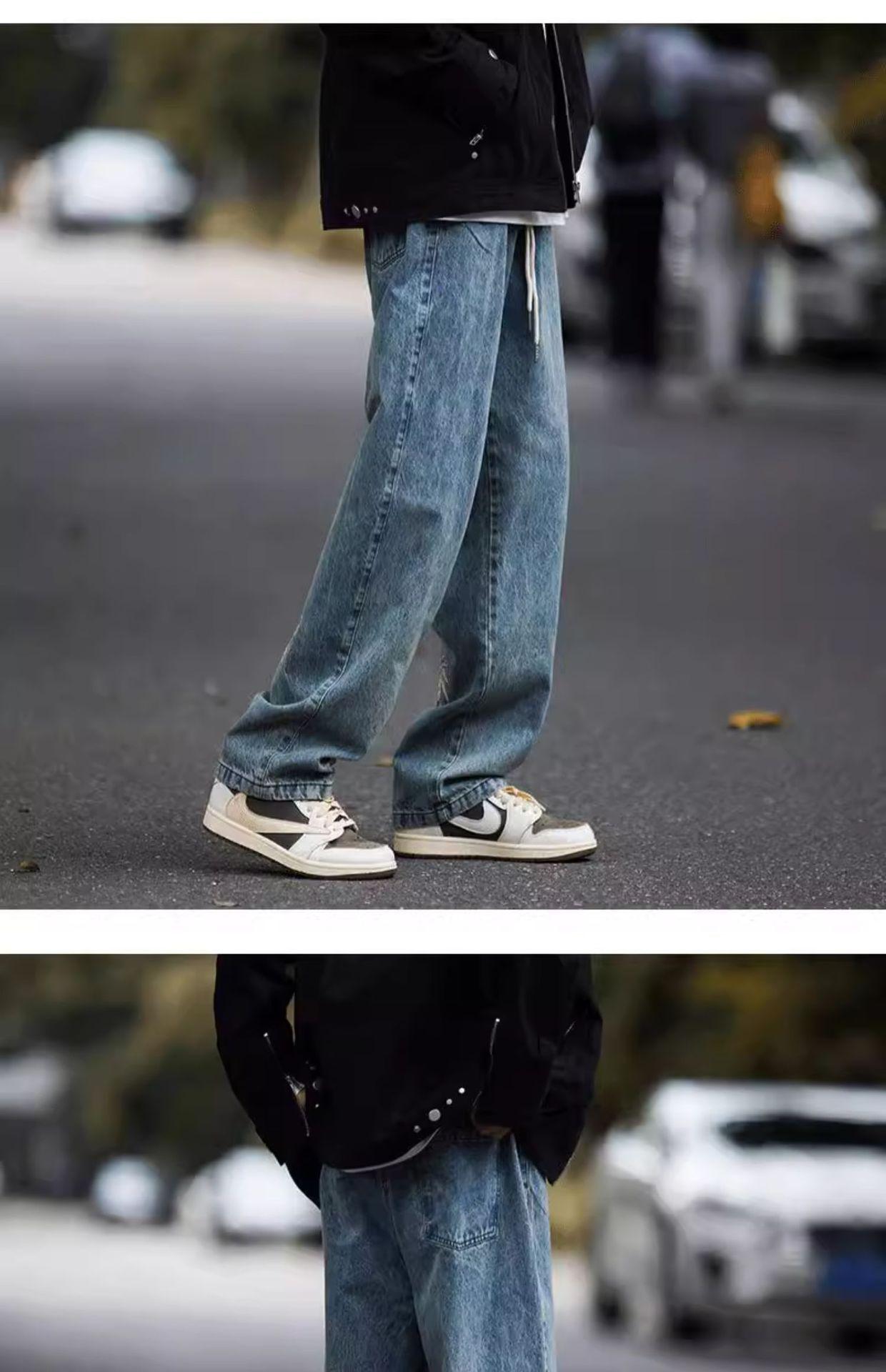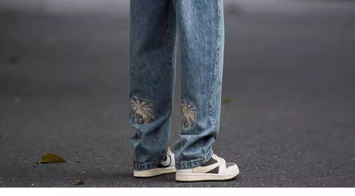 Jeans Bordados Retro Estilo Americano para Hombre y Mujer Otoño e Invierno Pantalones Casuales Rectos de Pierna Ancha Negros Modernos Combinables