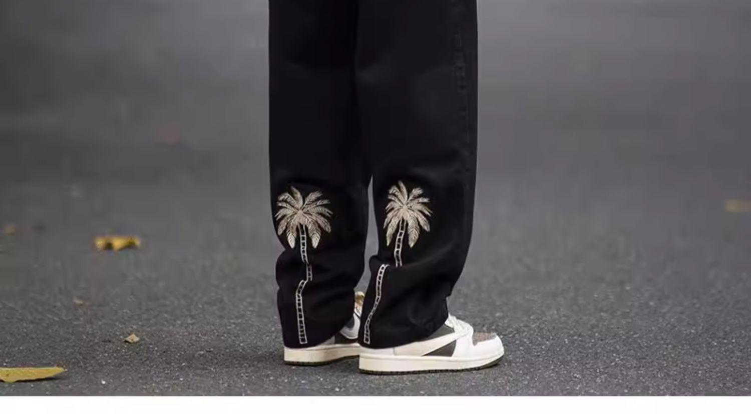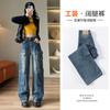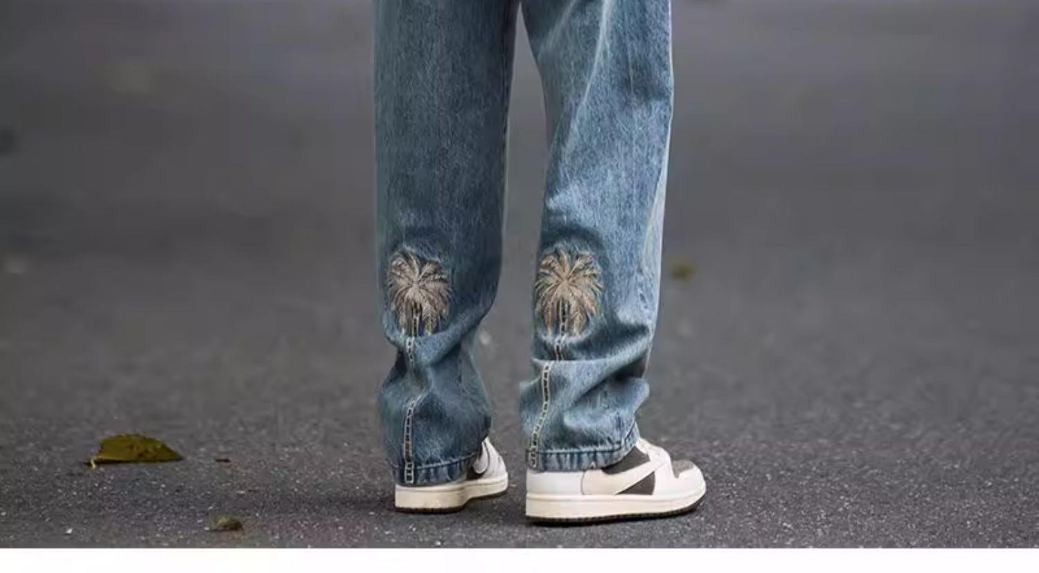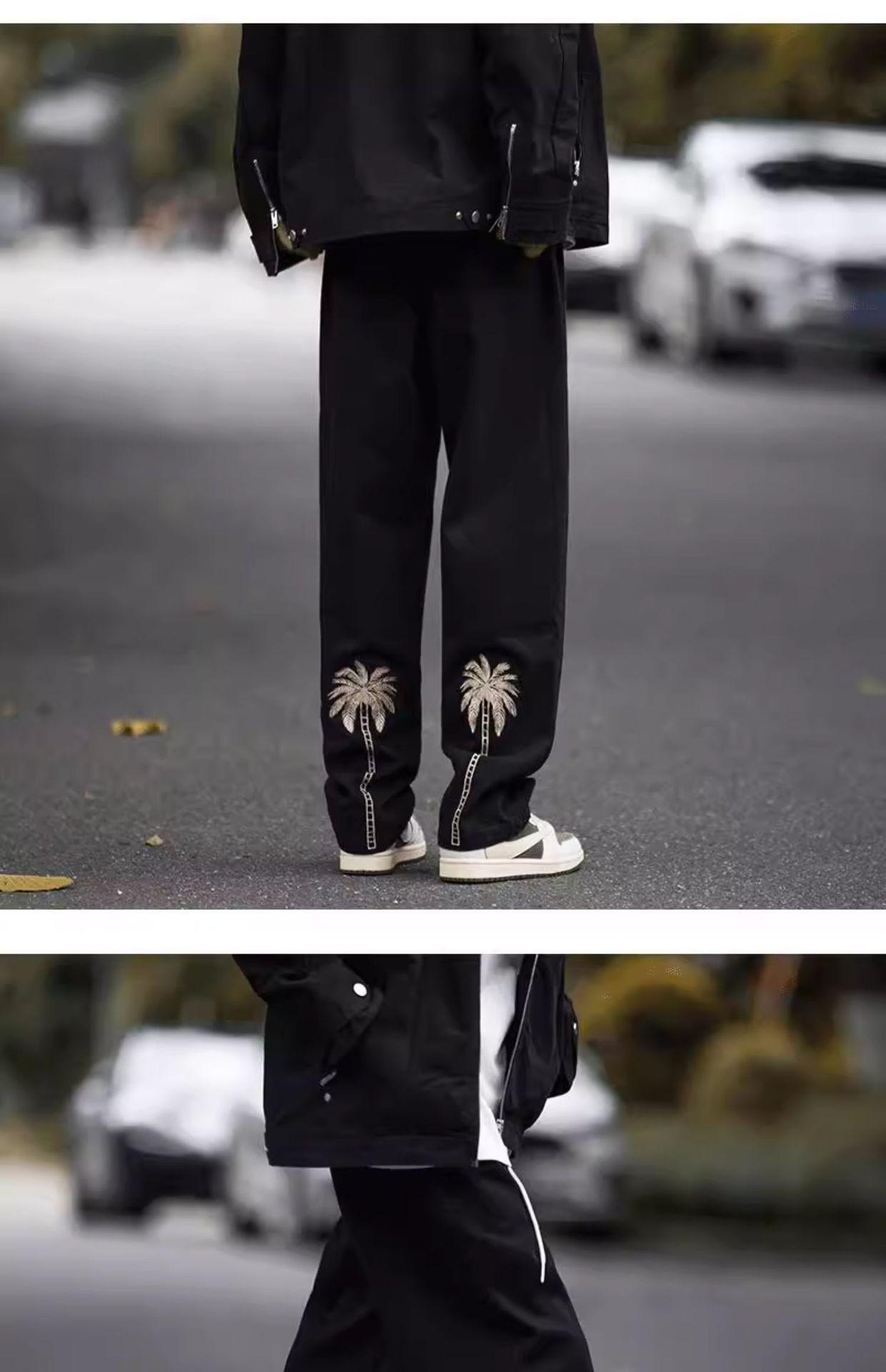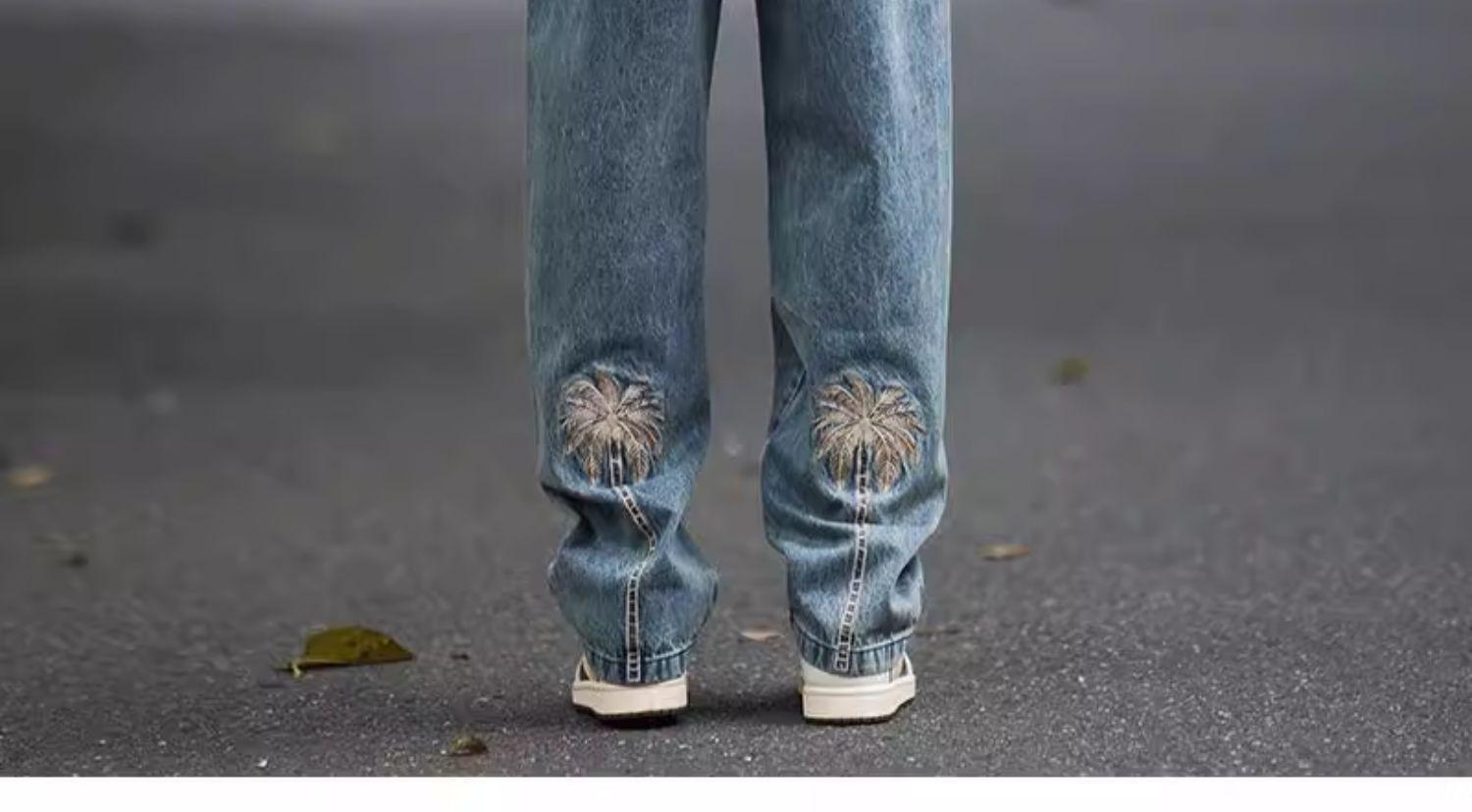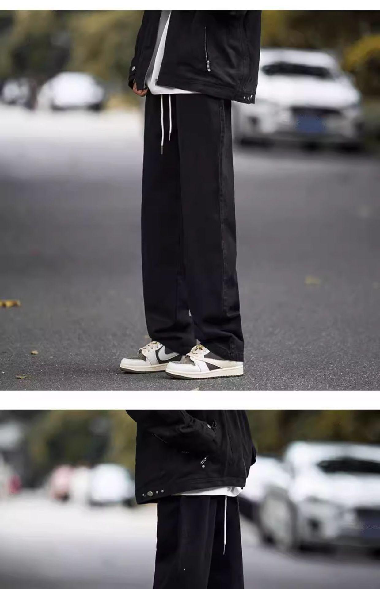 Jeans Bordados Retro Estilo Americano para Hombre y Mujer Otoño e Invierno Pantalones Casuales Rectos de Pierna Ancha Negros Modernos Combinables