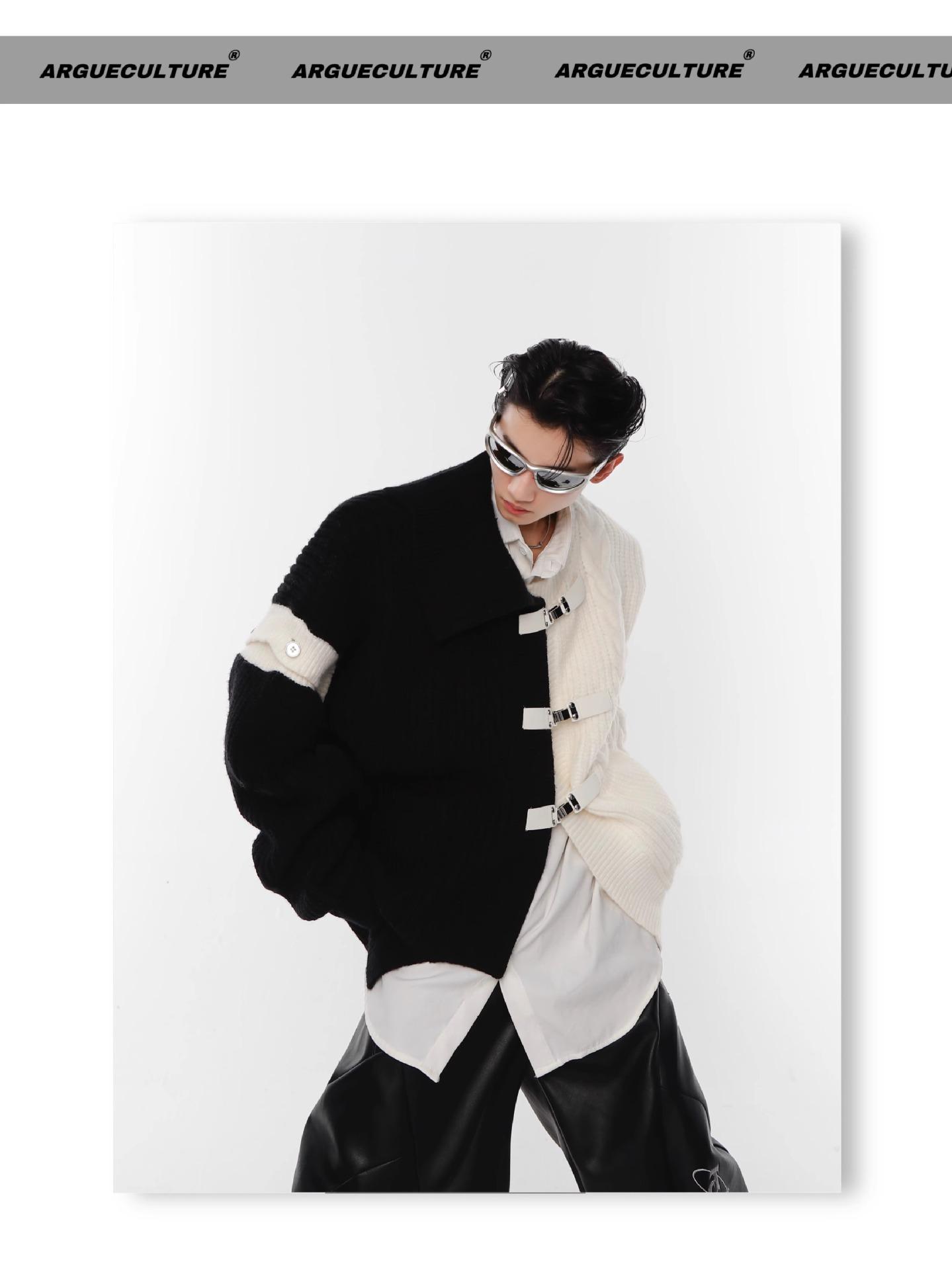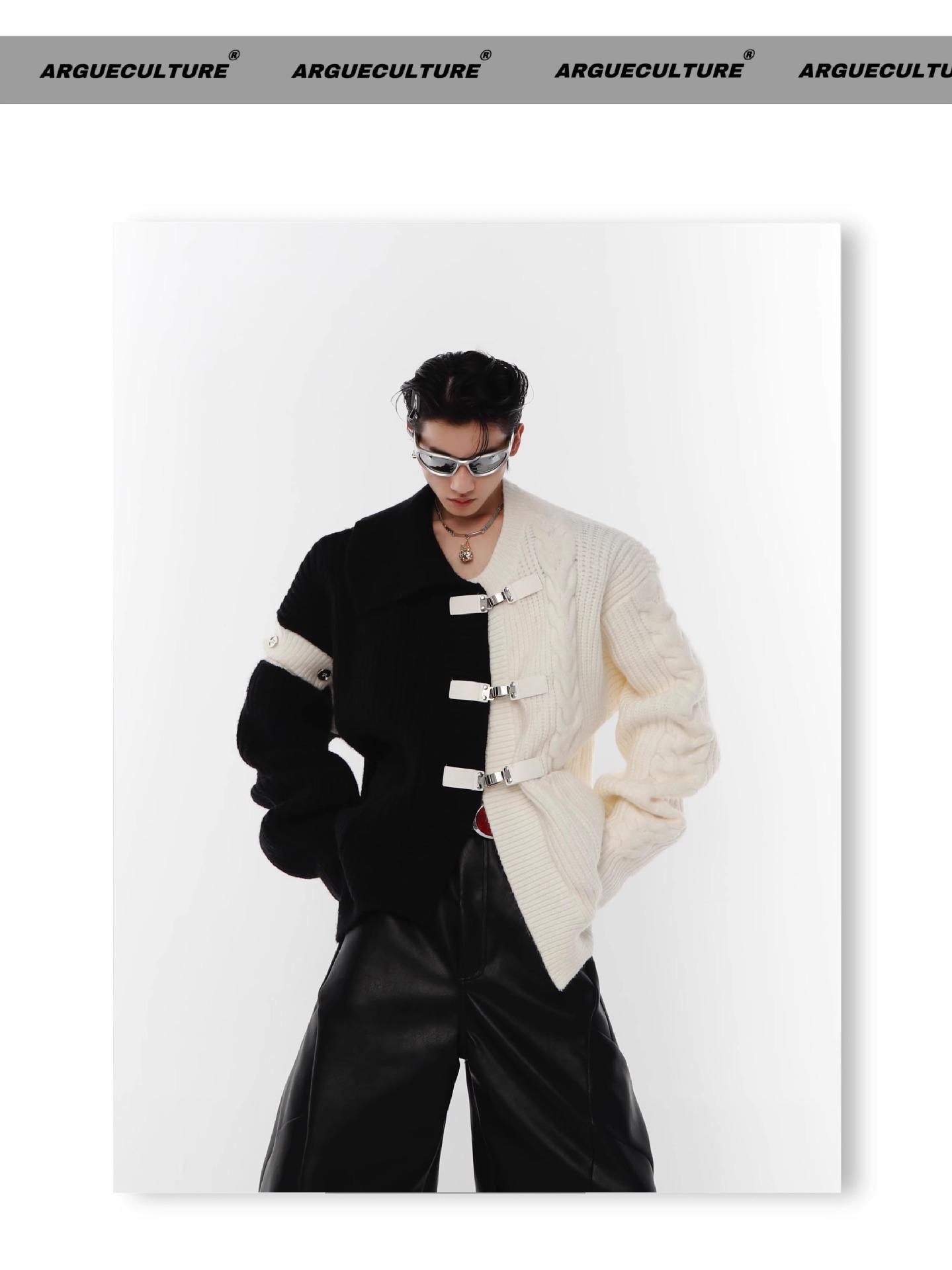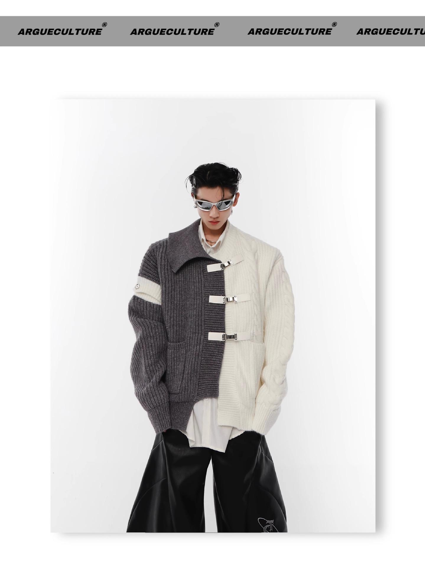 Suéter deconstruido de nicho, nuevo cárdigan holgado con diseño de costuras en blanco y negro, chaqueta de punto con botones metálicos, otoño e invierno 2024