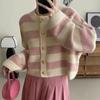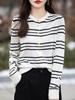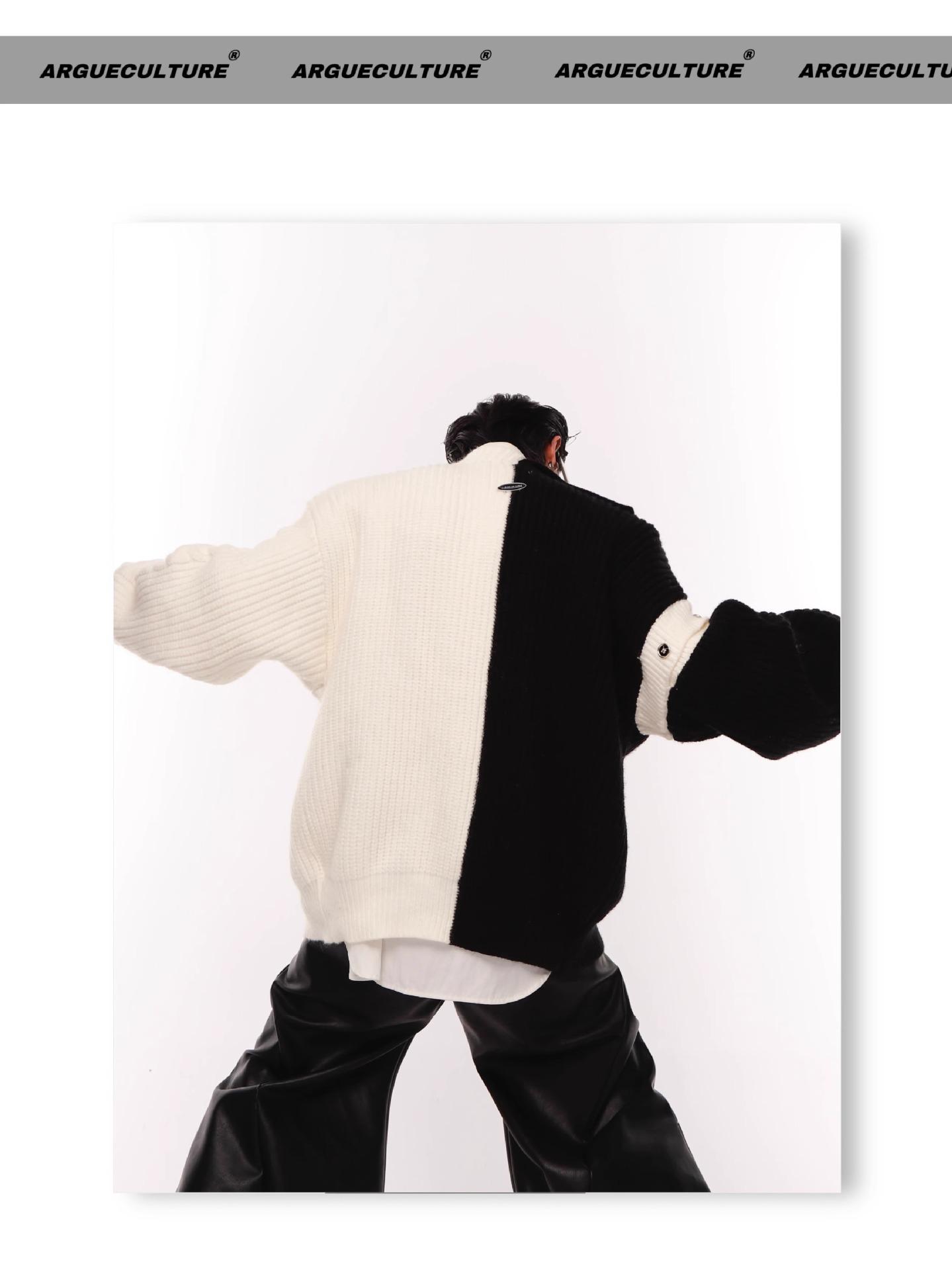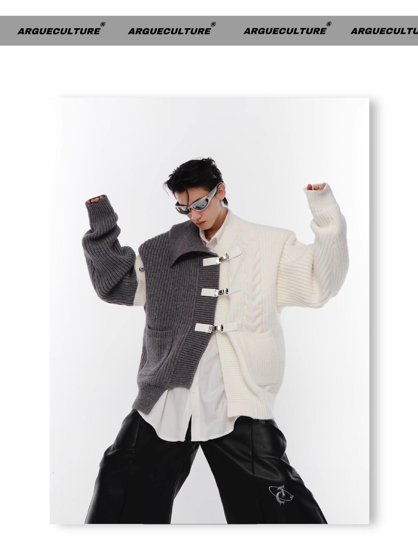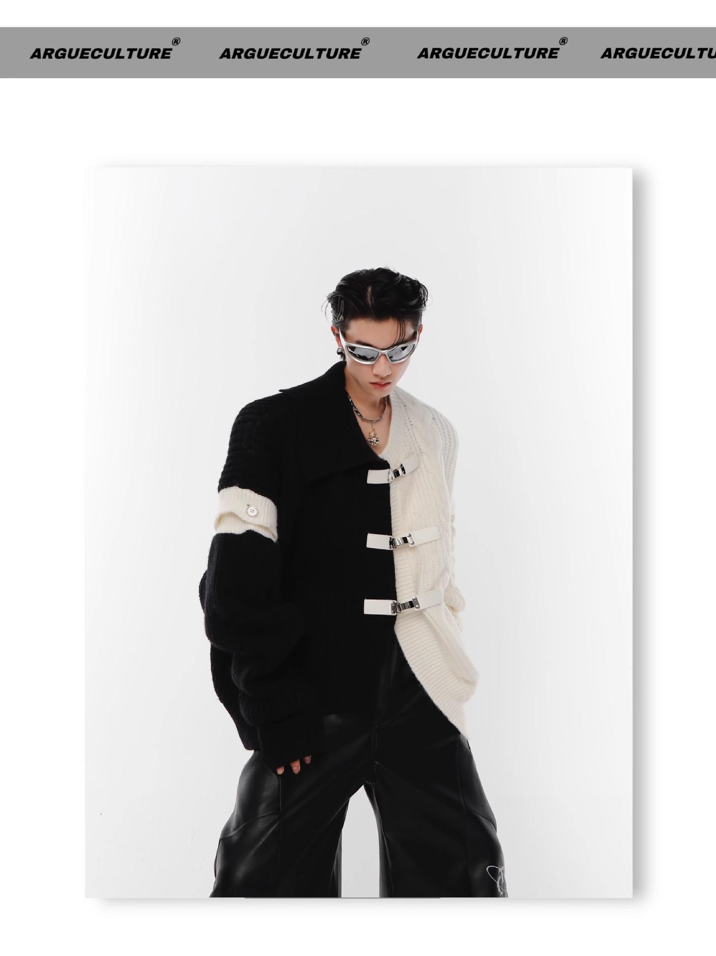 Suéter deconstruido de nicho, nuevo cárdigan holgado con diseño de costuras en blanco y negro, chaqueta de punto con botones metálicos, otoño e invierno 2024