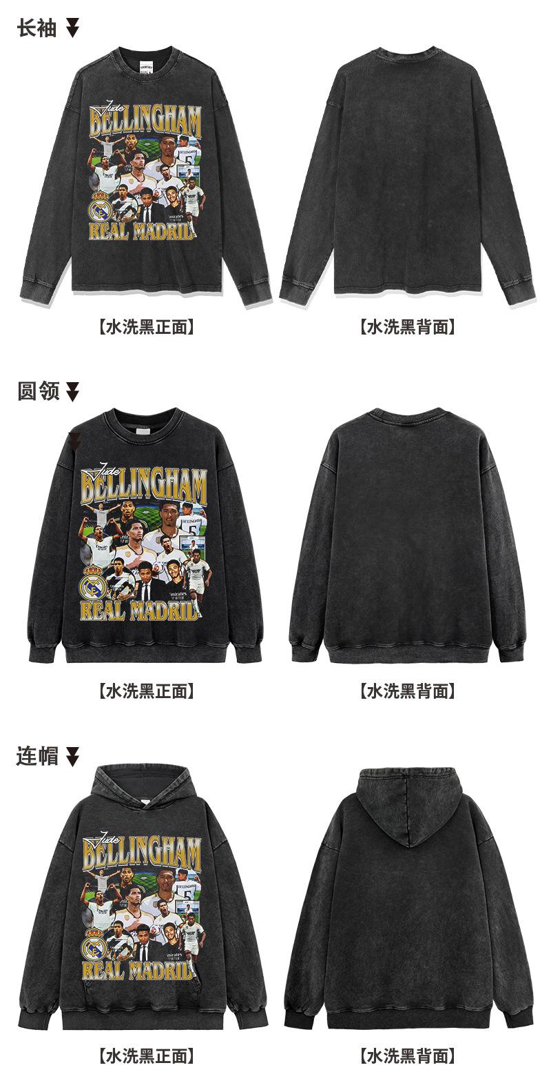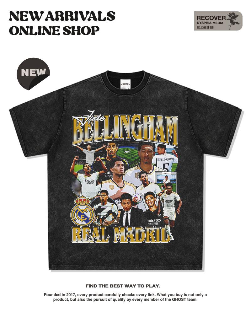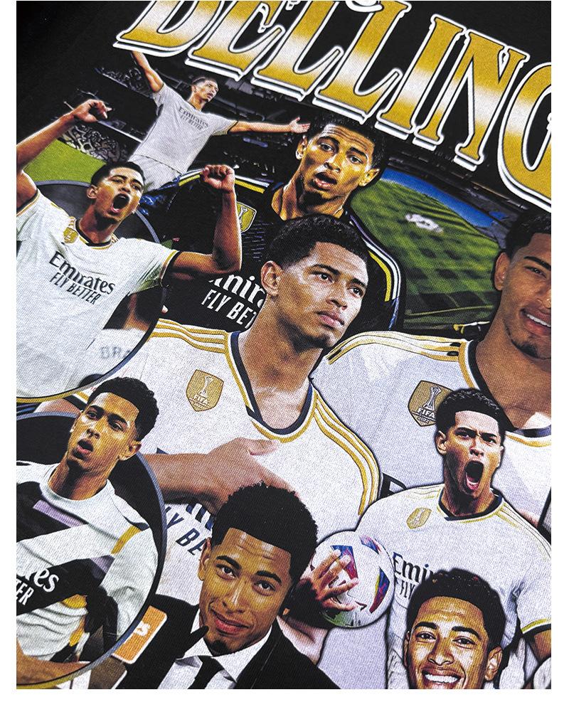 Camiseta de Manga Corta Estampada de Fútbol Americano Transfronterizo Zod Bellingham Sudadera Pesada con Cuello Redondo