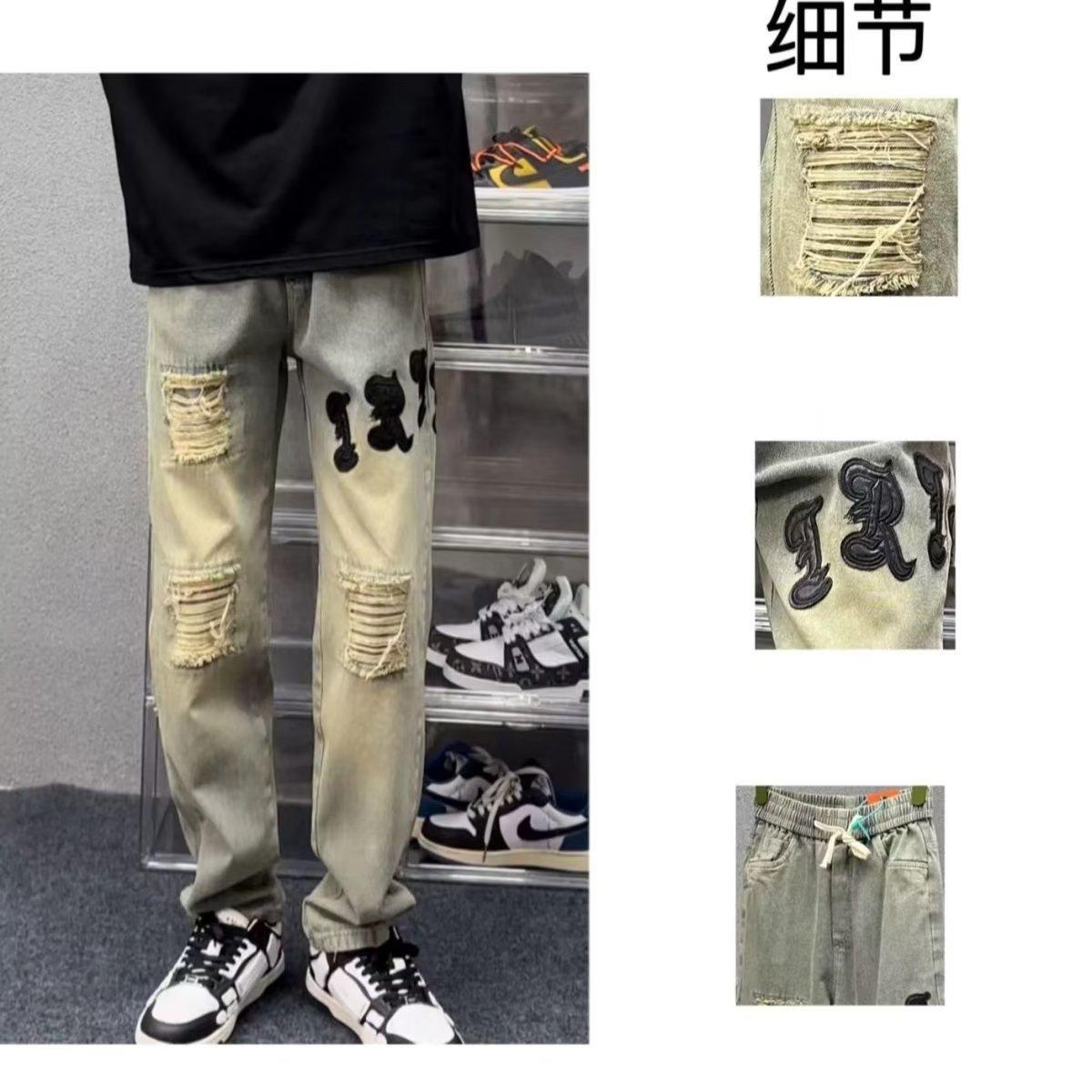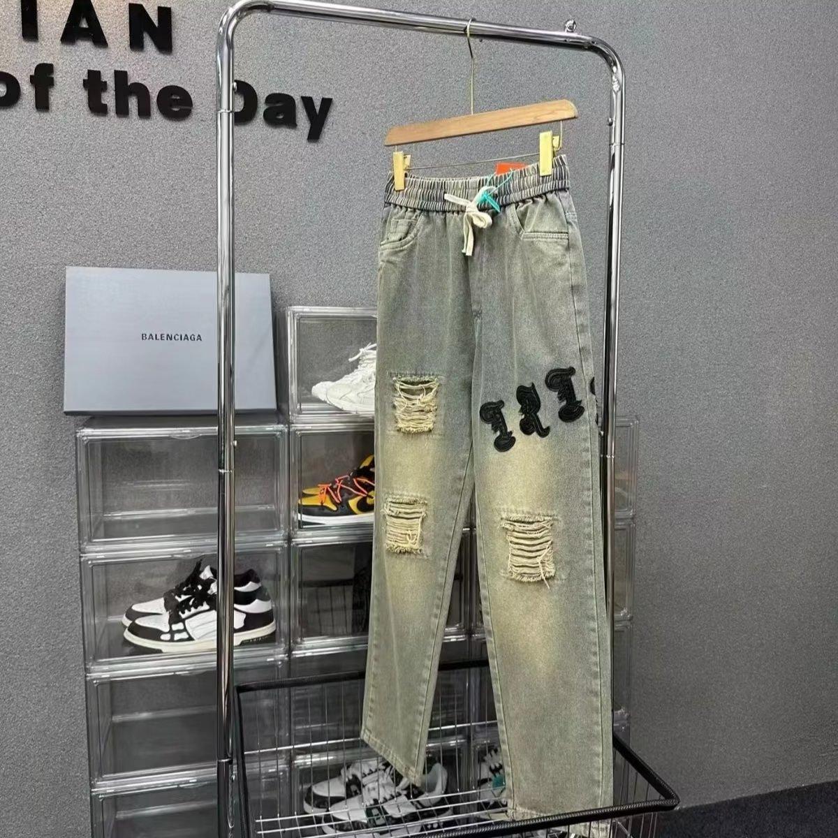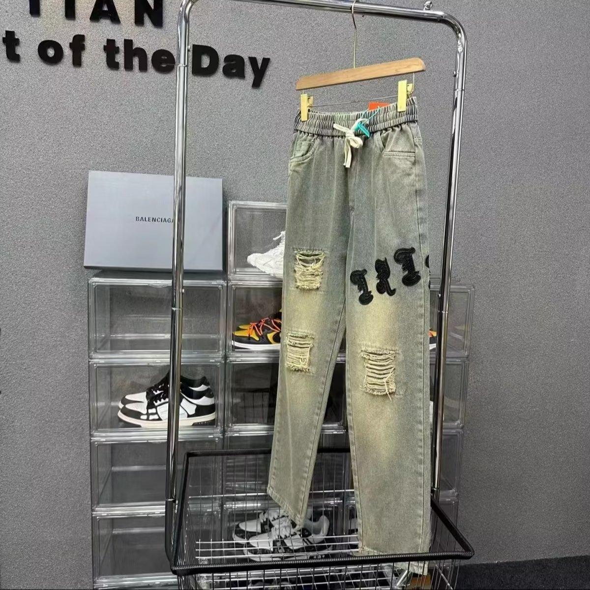 Otoño 2024 Nuevo Jeans Rotos para Hombre y Mujer Otoño High Street Europeo y Americano Popular en Internet Adelgazantes Leggings Lavados para Estudiante