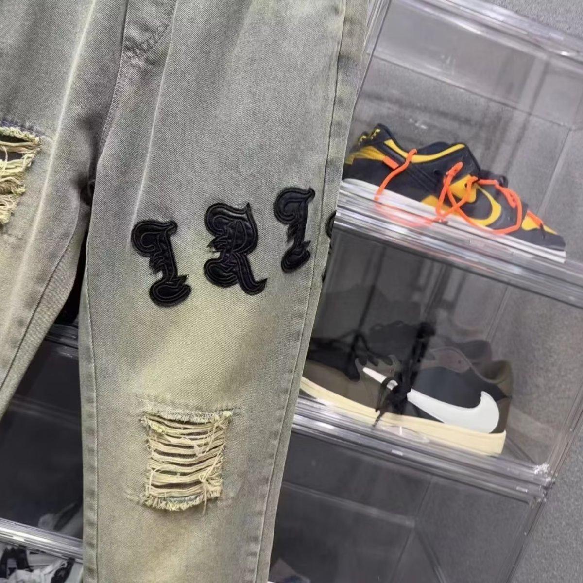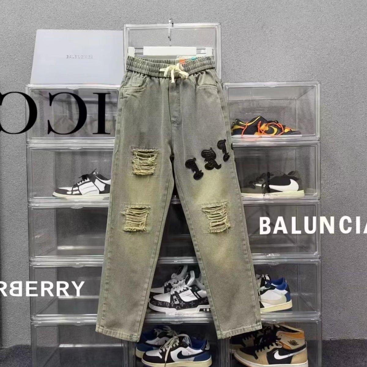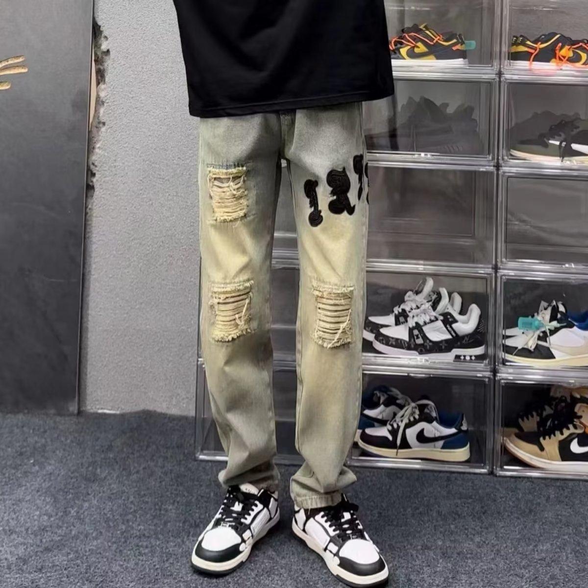 Otoño 2024 Nuevo Jeans Rotos para Hombre y Mujer Otoño High Street Europeo y Americano Popular en Internet Adelgazantes Leggings Lavados para Estudiante