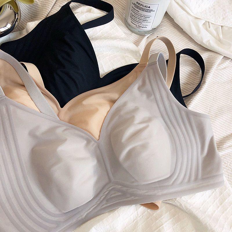 Semilíquido Soporte Suave Mascarilla Fría Tira de Gelatina Sujetador sin Aro de Acero Copa Orejas de Conejo Ropa Interior Fina Sin Costuras Ligero