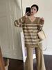 Otoño e Invierno 2024 Nuevo Suéter Holgado a Rayas de Cuello Bajo con Botonadura Sencilla y Manga Larga Traje Drapeado de Cintura Alta y Pierna Ancha