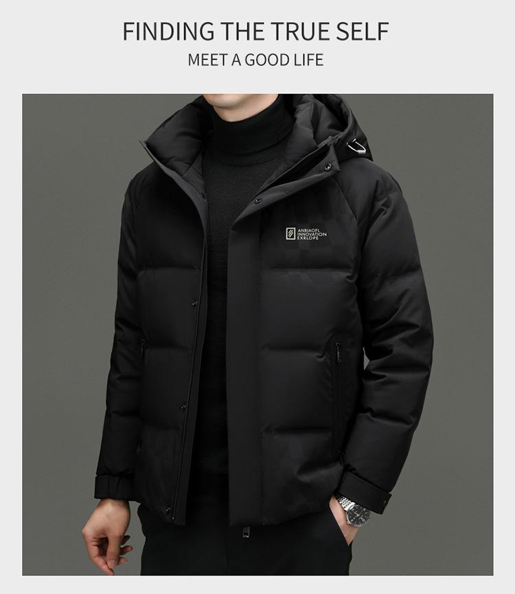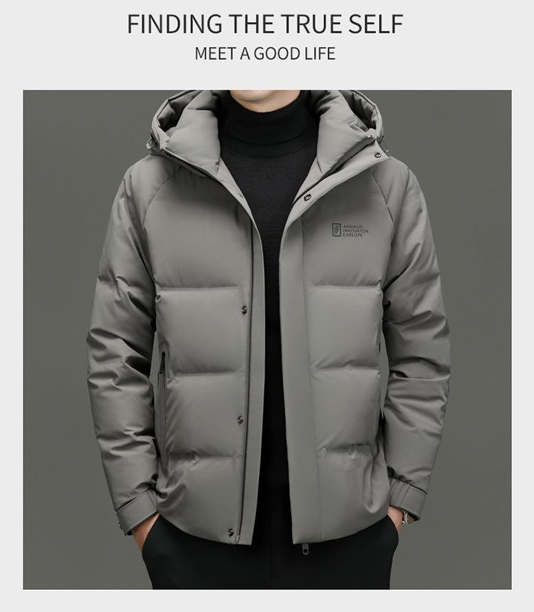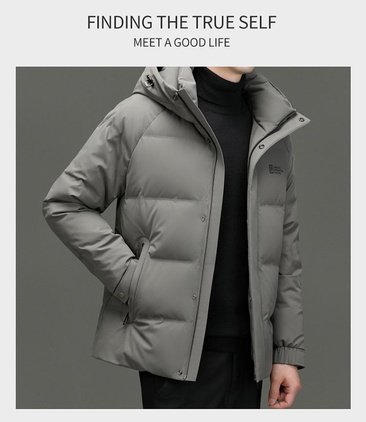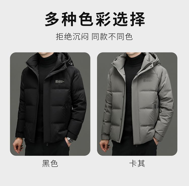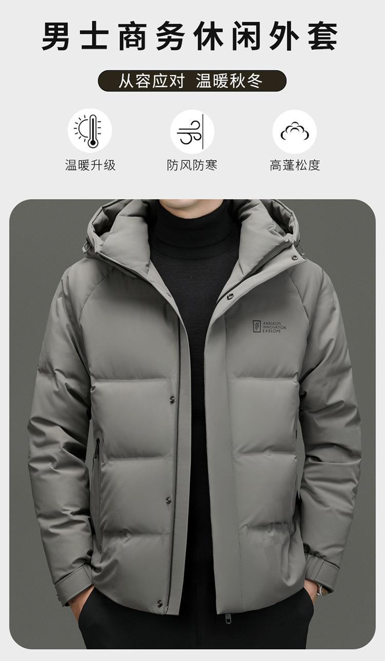 Chaqueta de plumón con capucha de color liso para hombre, chaqueta informal de moda de plumón de pato 90%, ropa de negocios para jóvenes y de mediana edad.