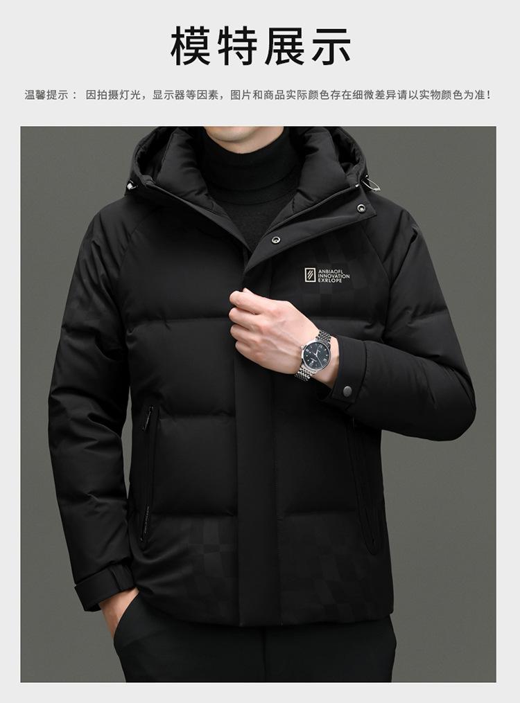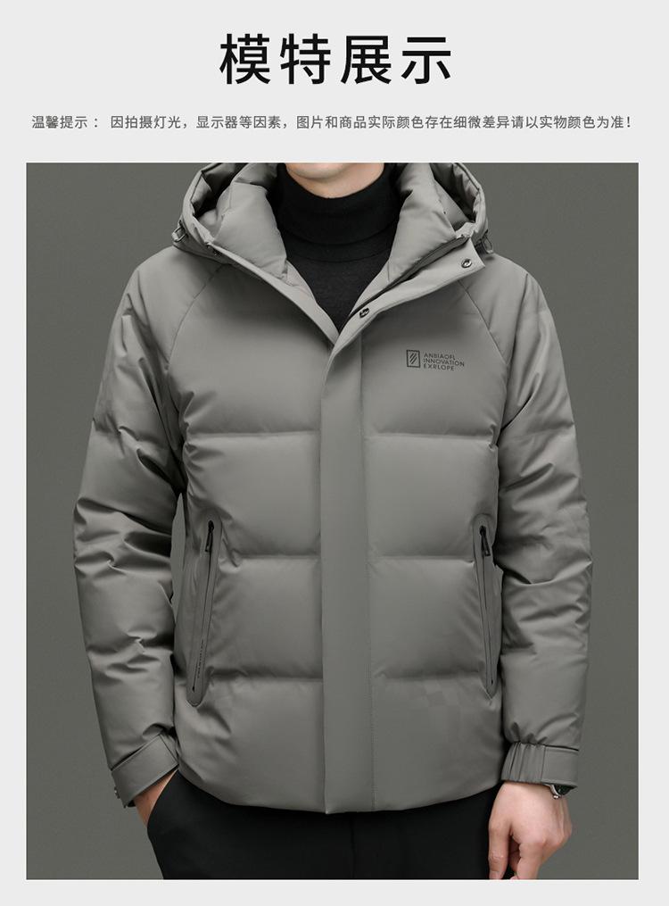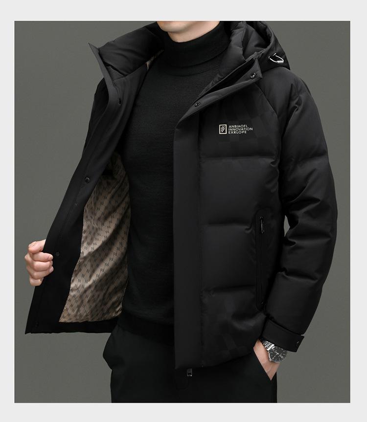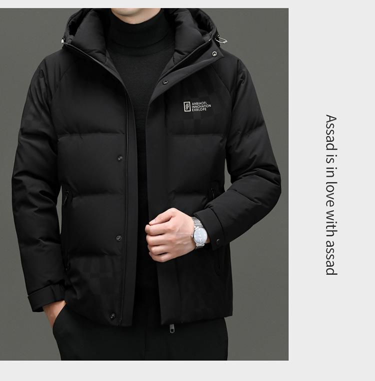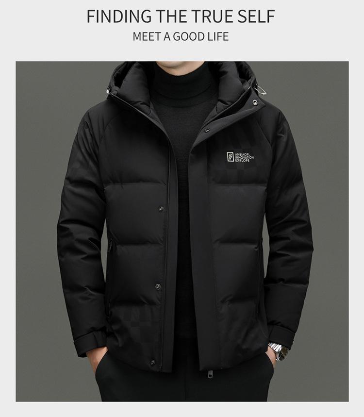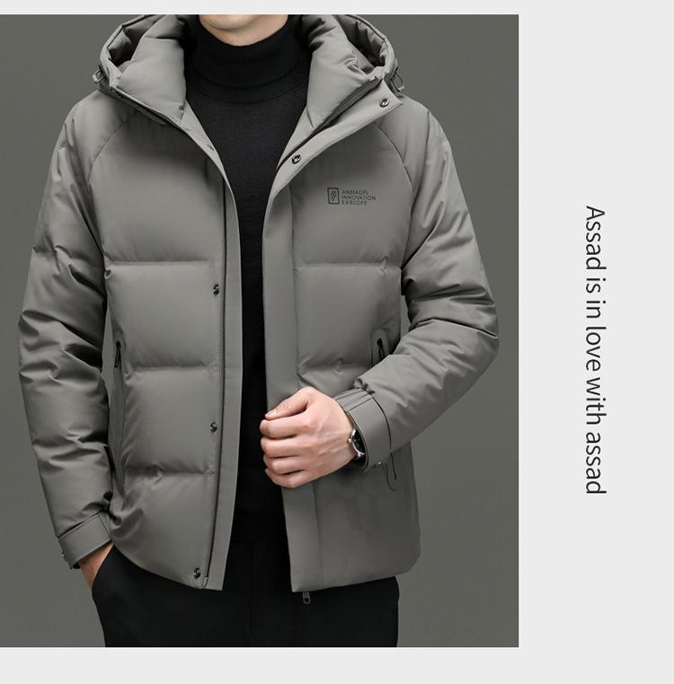 Chaqueta de plumón con capucha de color liso para hombre, chaqueta informal de moda de plumón de pato 90%, ropa de negocios para jóvenes y de mediana edad.