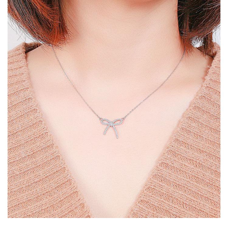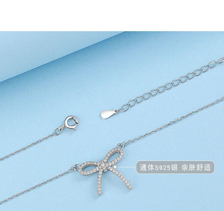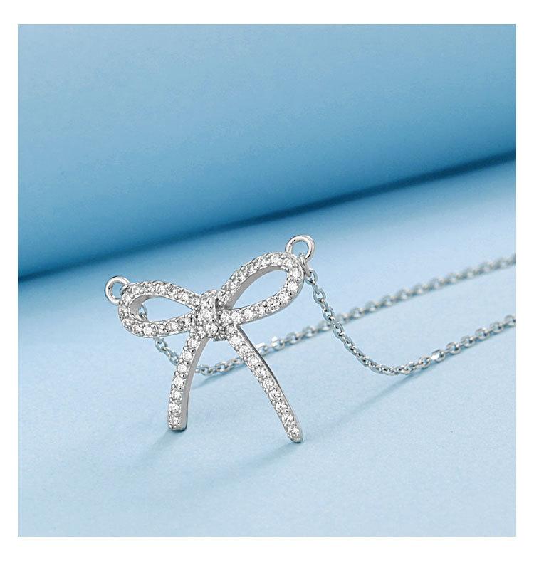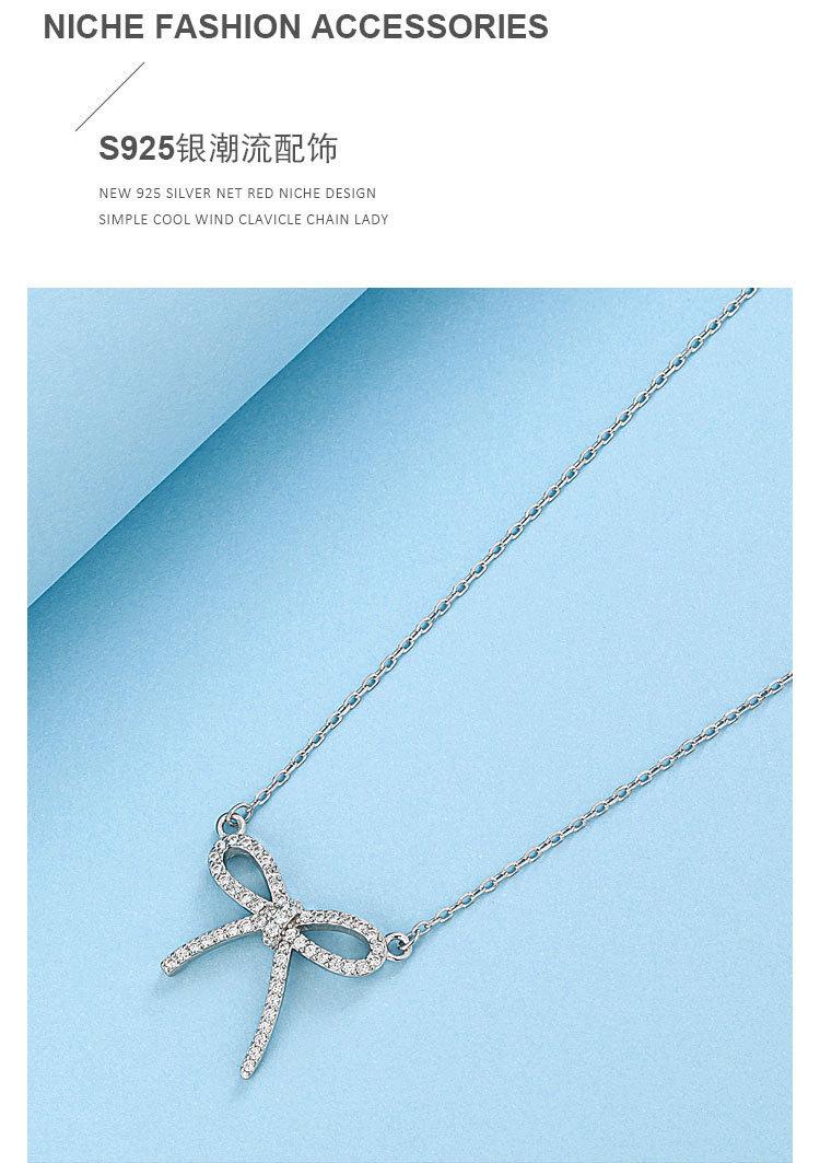 Collar de lazo de plata esterlina S925 para mujer, estilo coreano, combinable con todo, con cadena de clavícula de alta calidad y colgante de circonita.