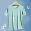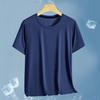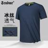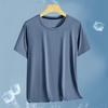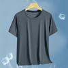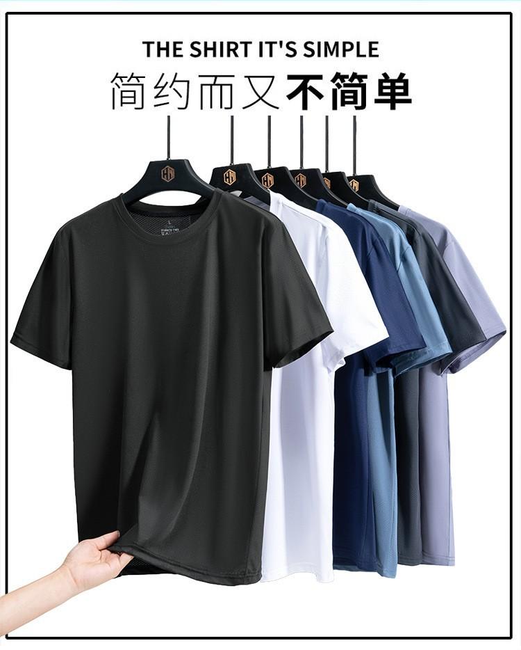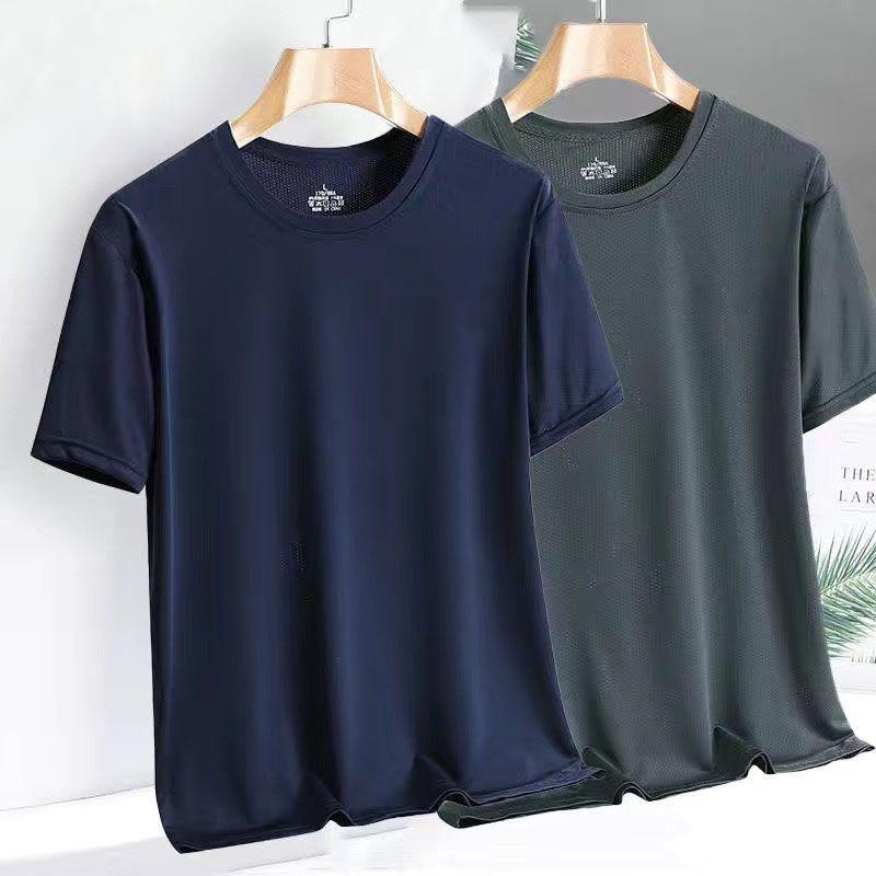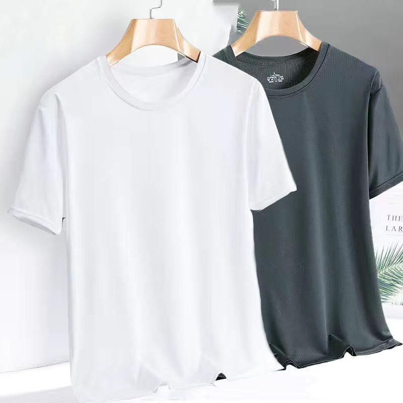 Camiseta de manga corta de malla de secado rápido de seda de hielo para hombre, fina, transpirable, informal, deportiva, ajustada, con cuello redondo, de verano