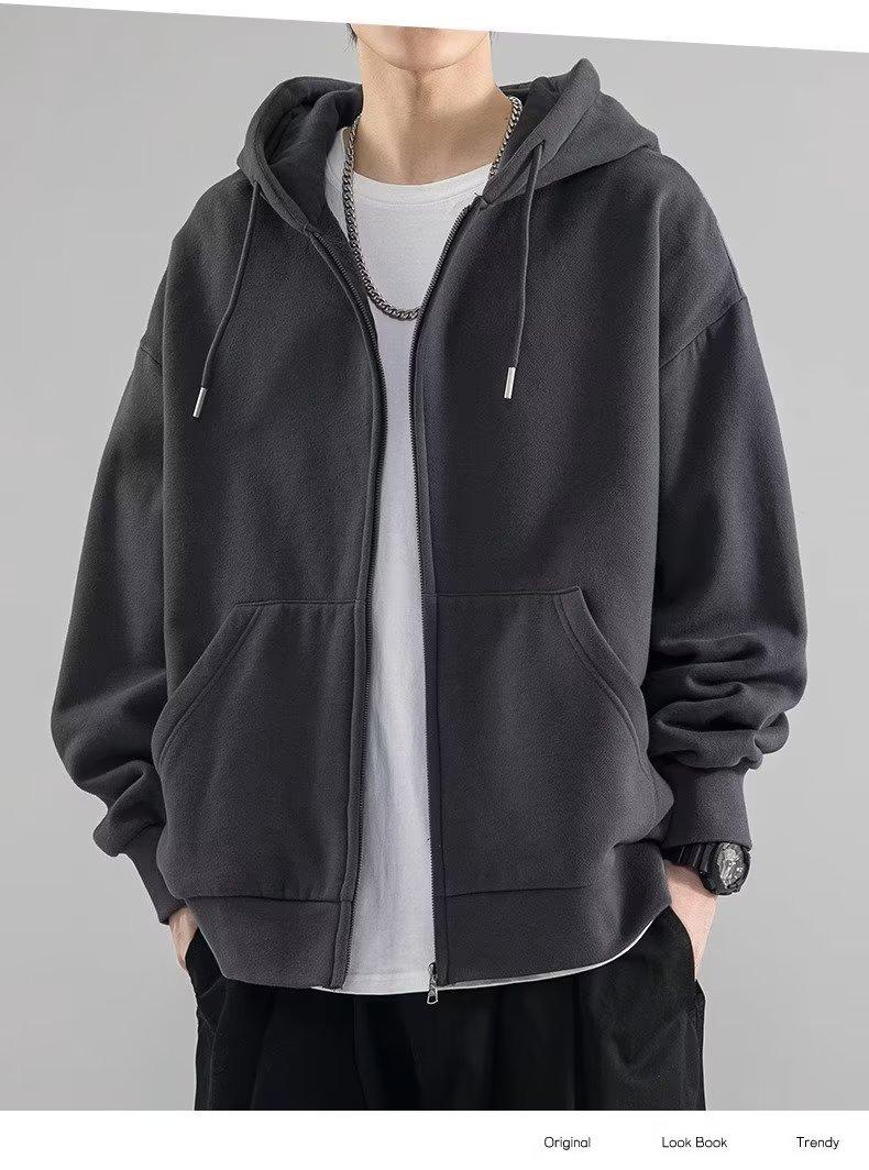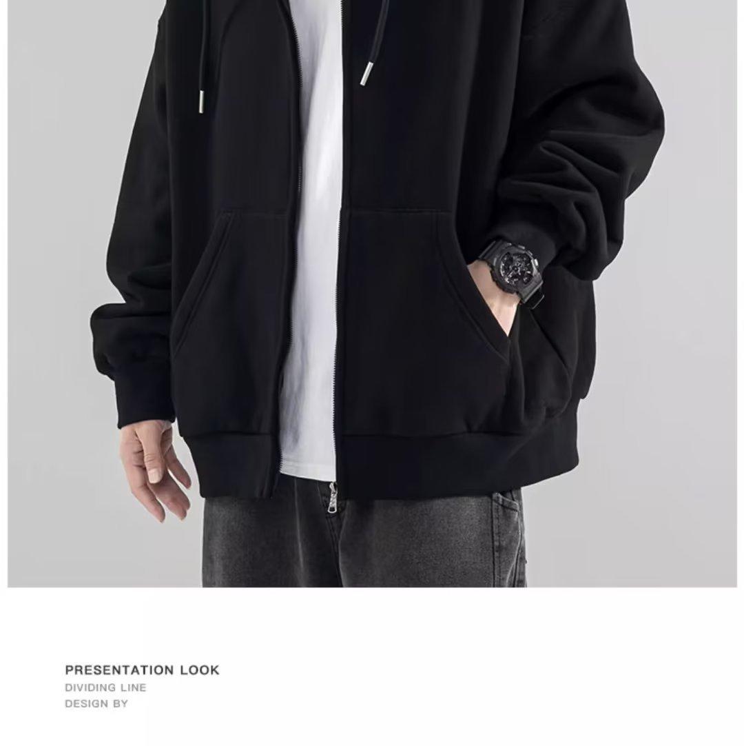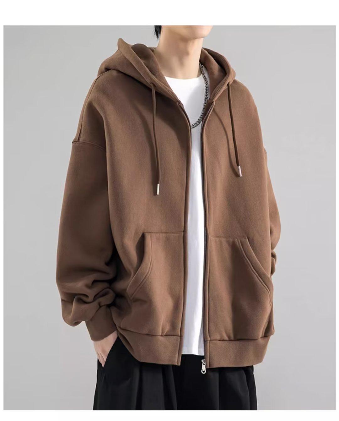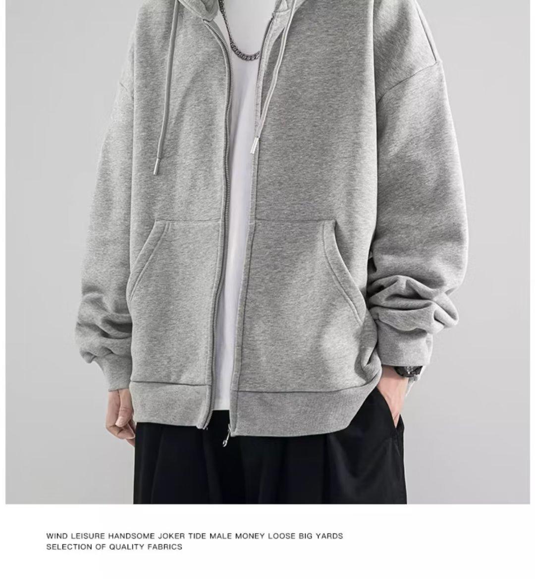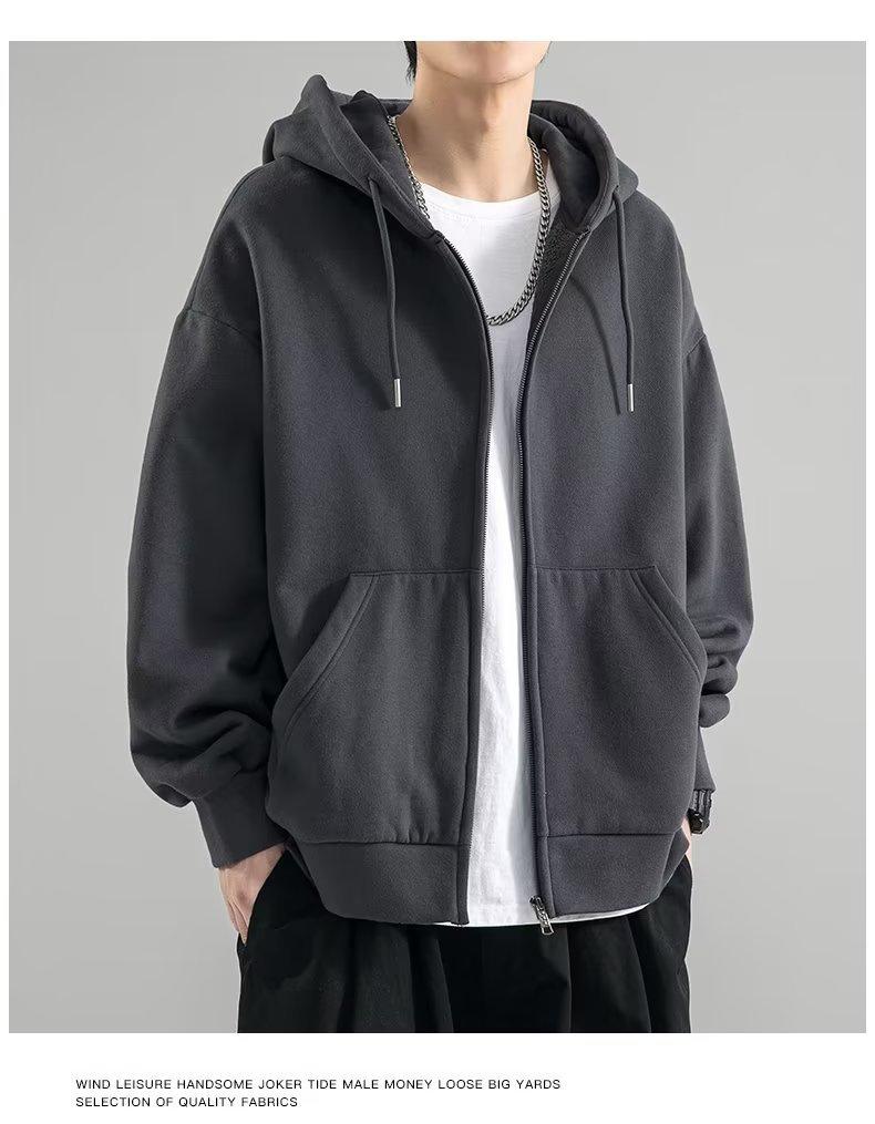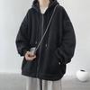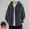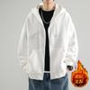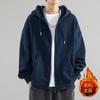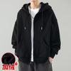 Suéter con cremallera y capucha para hombre y mujer, color sólido, otoño e invierno, forro polar, grueso, informal, para estudiantes, estilo coreano, chaqueta tipo cárdigan holgada.