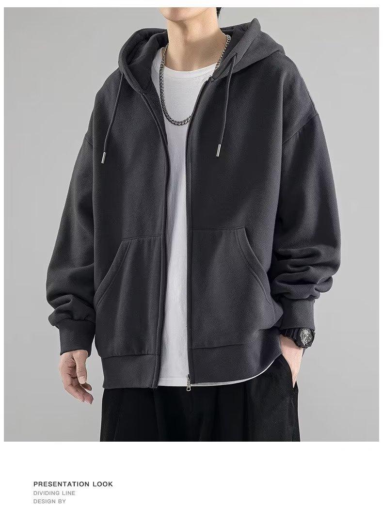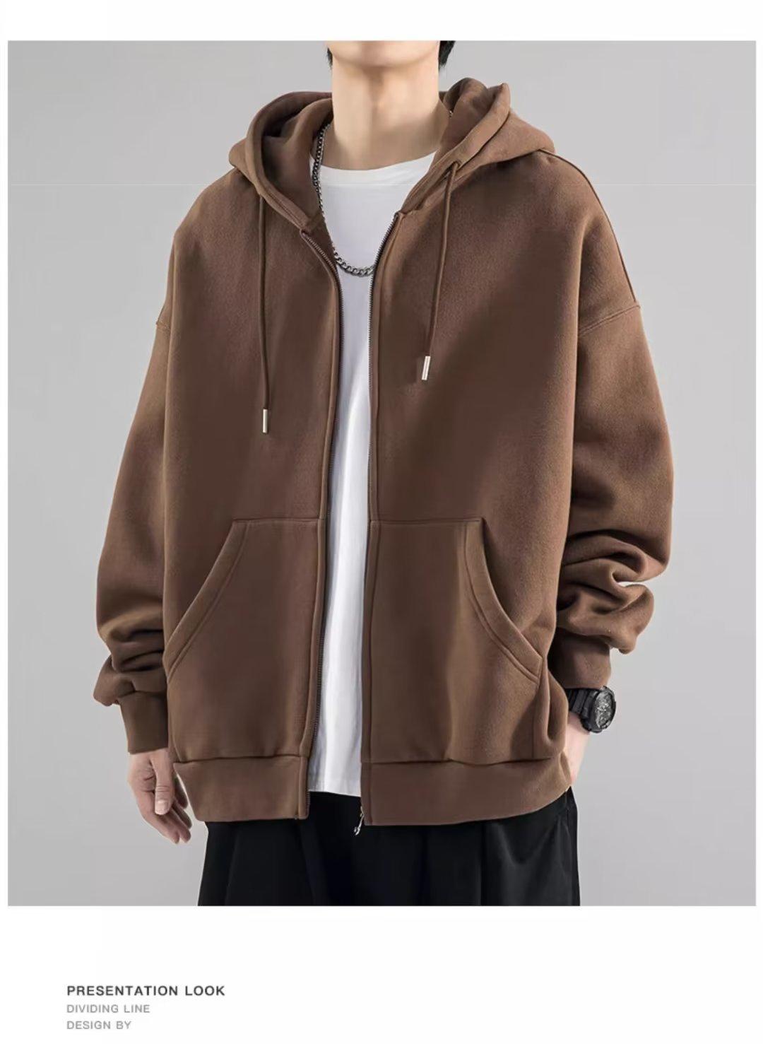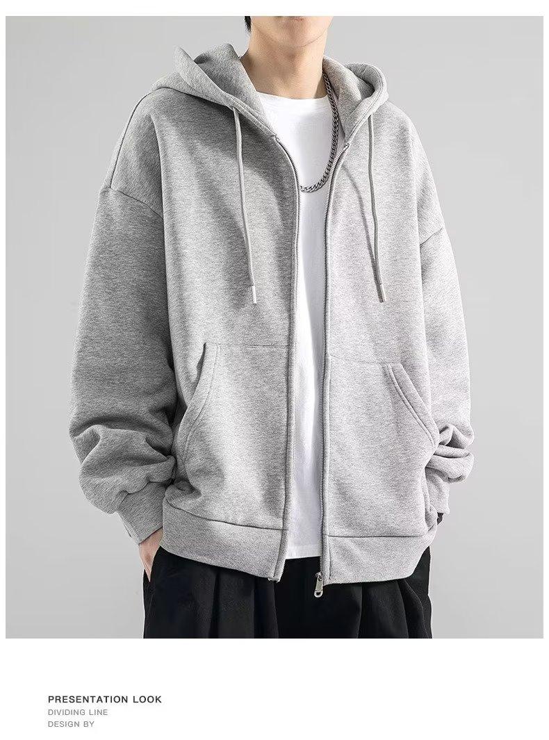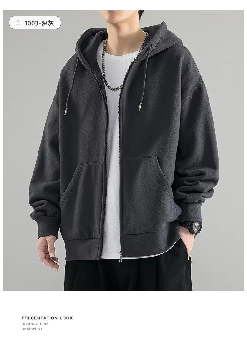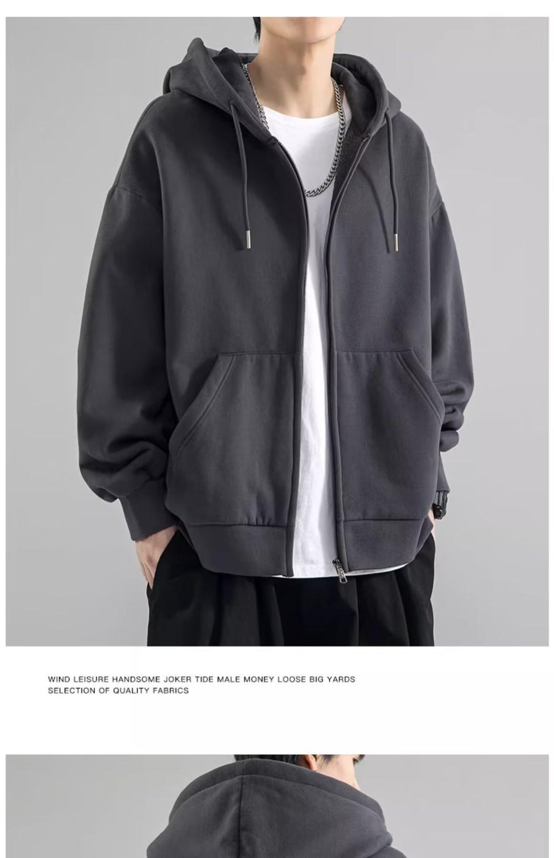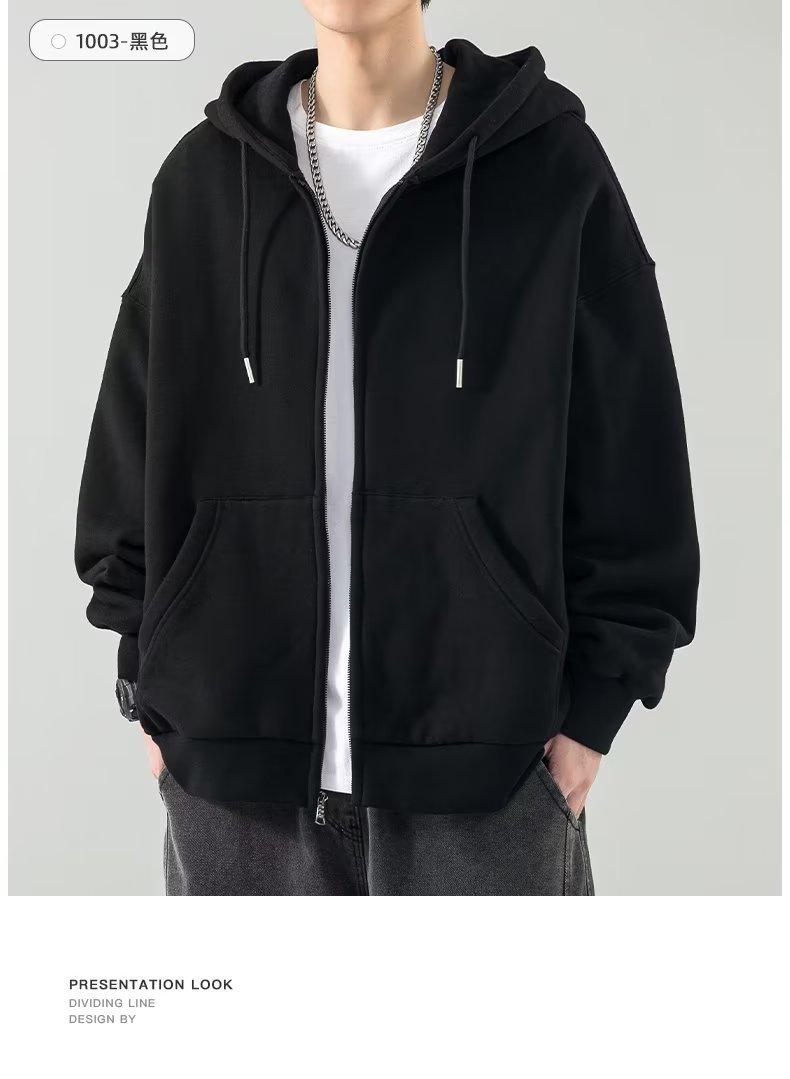 Suéter con cremallera y capucha para hombre y mujer, color sólido, otoño e invierno, forro polar, grueso, informal, para estudiantes, estilo coreano, chaqueta tipo cárdigan holgada.