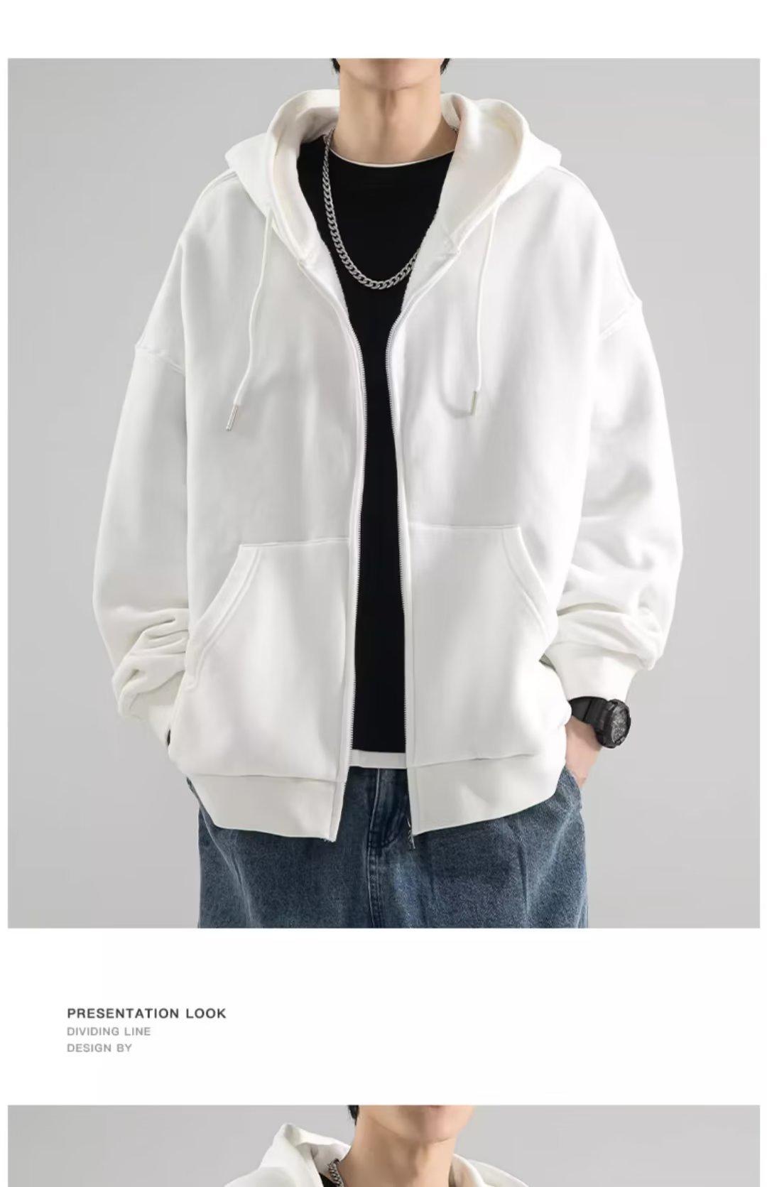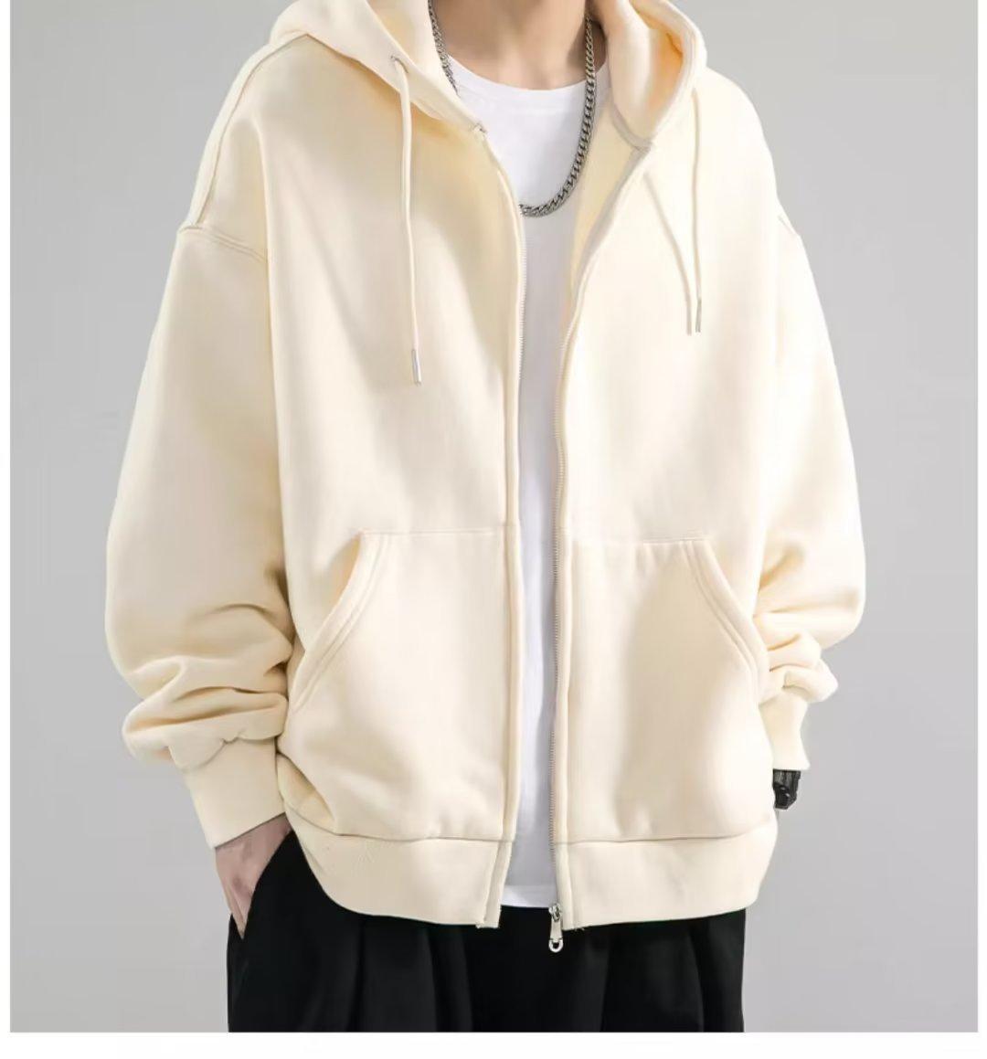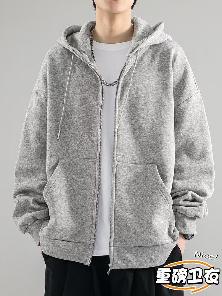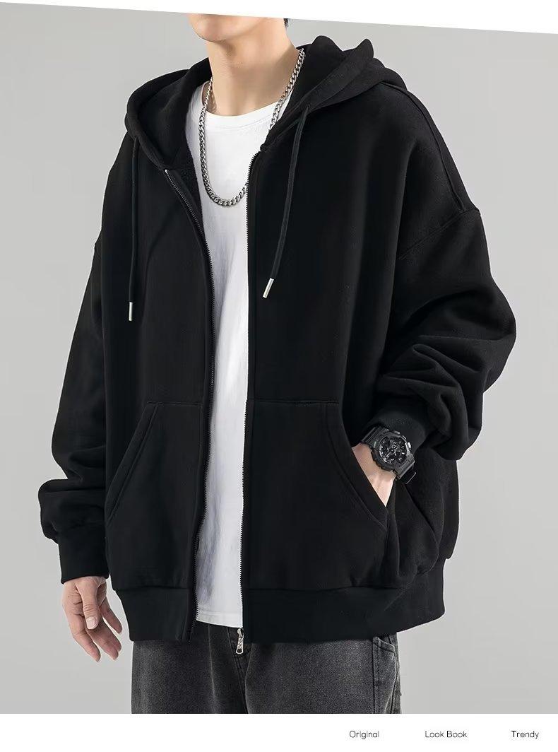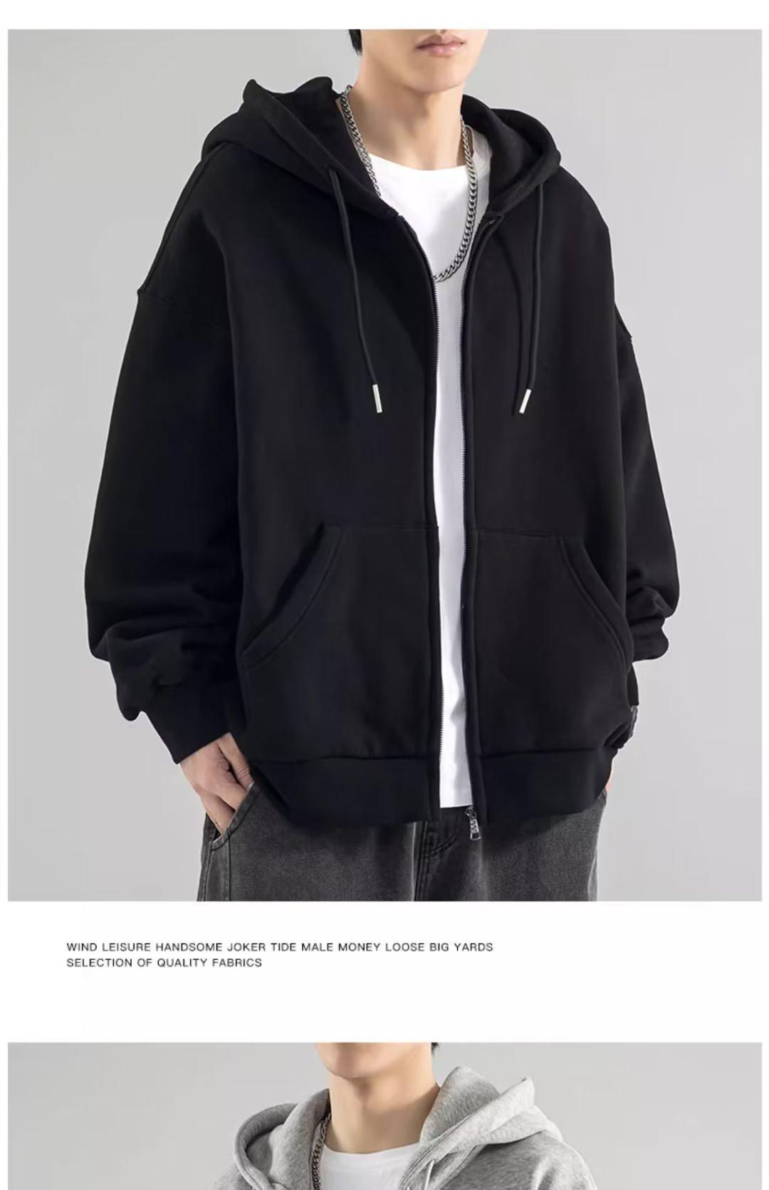Suéter con cremallera y capucha para hombre y mujer, color sólido, otoño e invierno, forro polar, grueso, informal, para estudiantes, estilo coreano, chaqueta tipo cárdigan holgada.