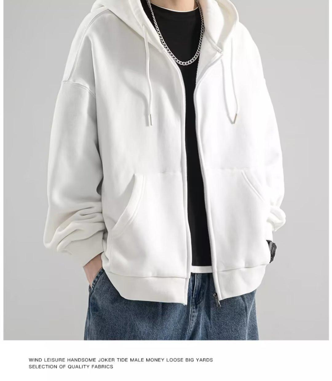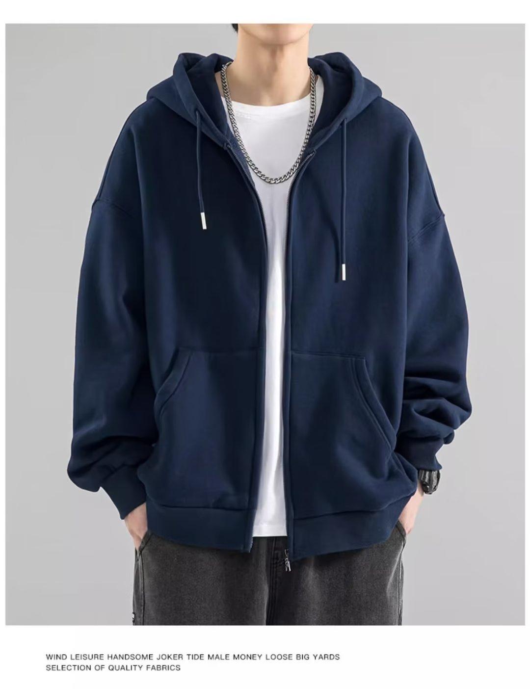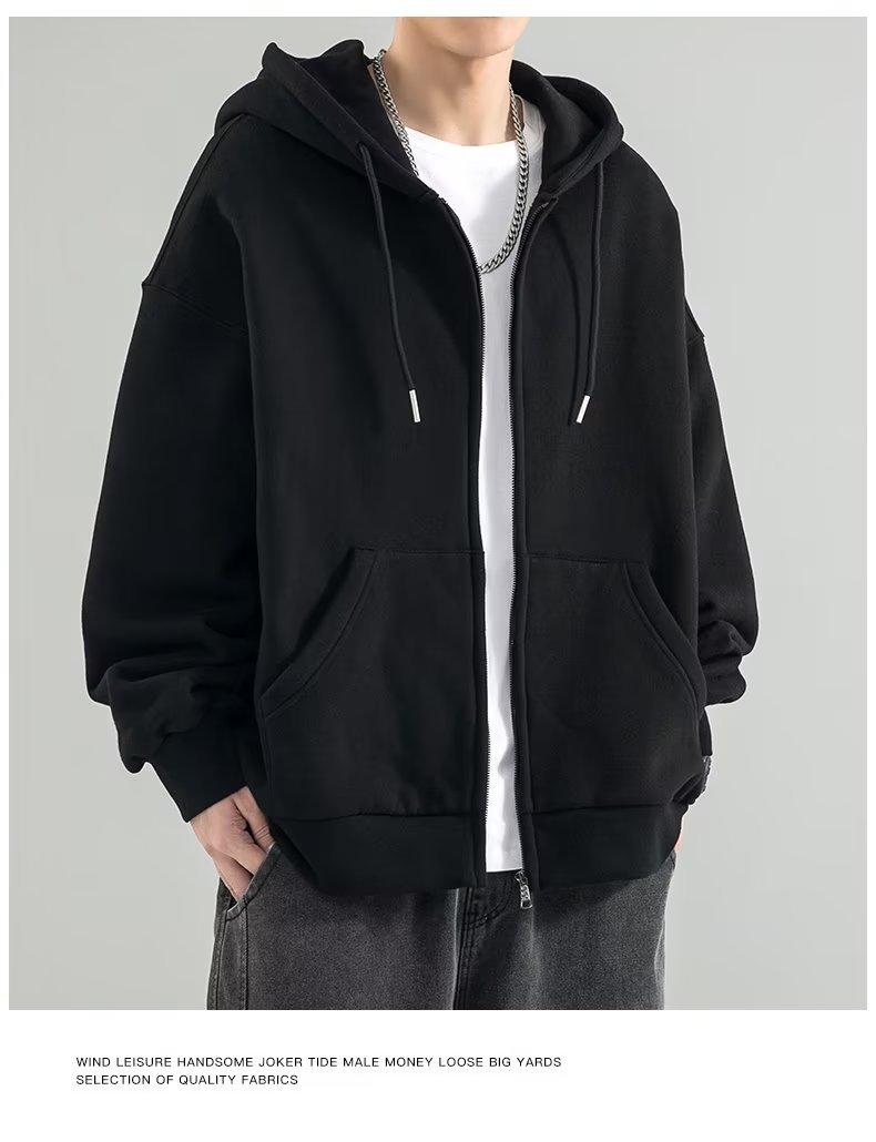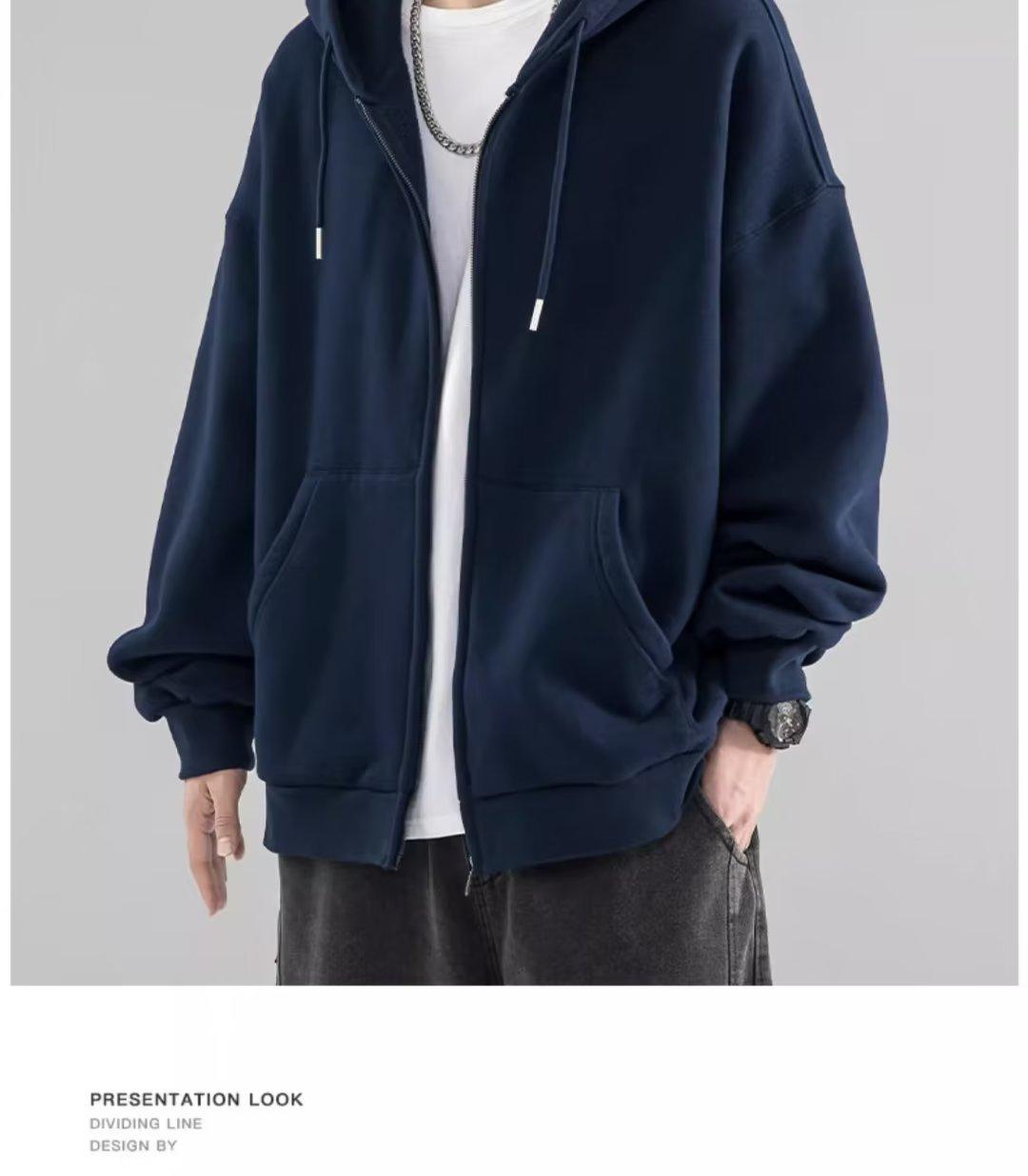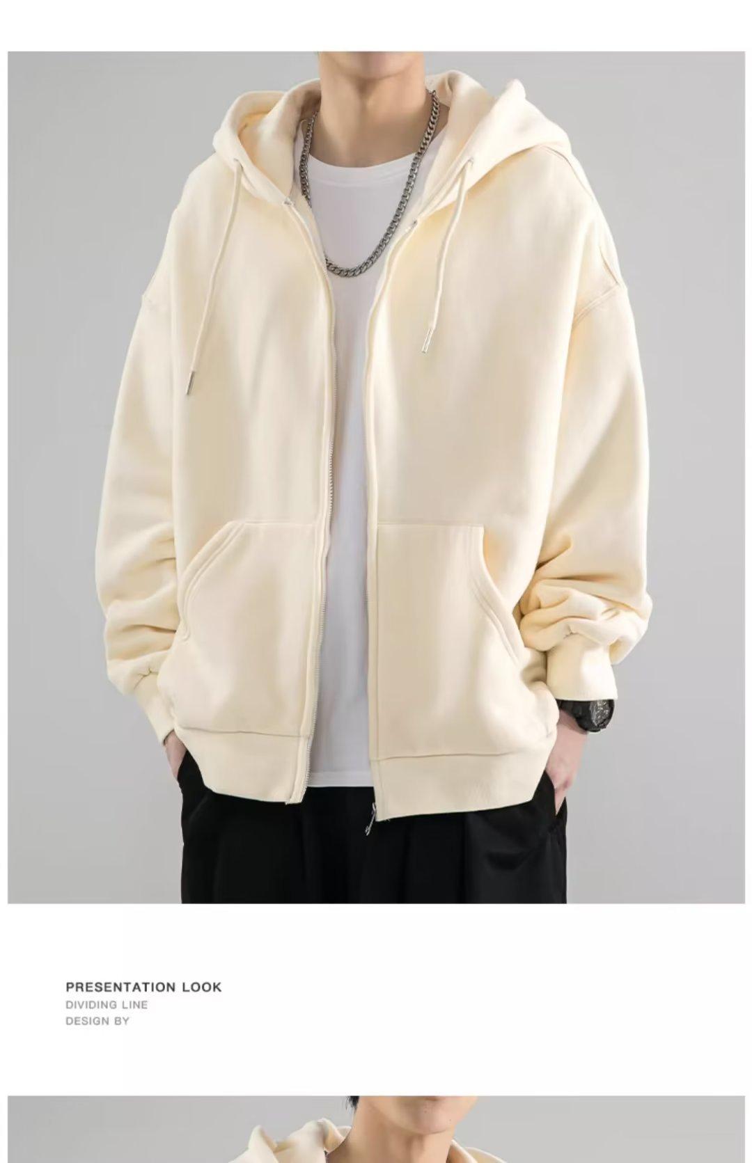 Suéter con cremallera y capucha para hombre y mujer, color sólido, otoño e invierno, forro polar, grueso, informal, para estudiantes, estilo coreano, chaqueta tipo cárdigan holgada.