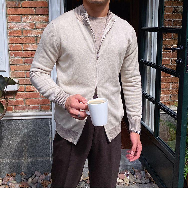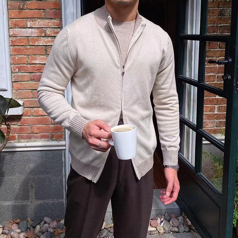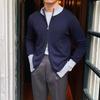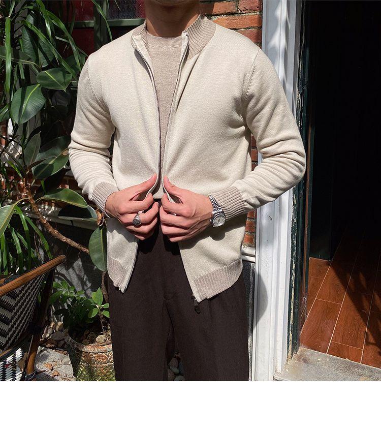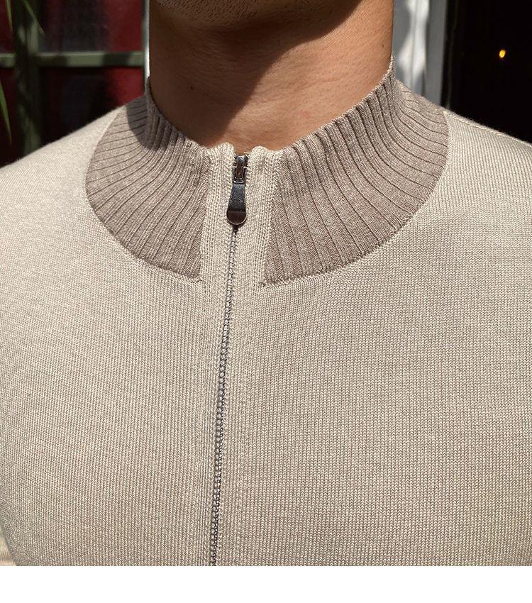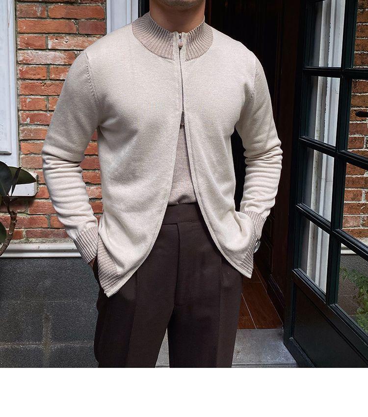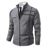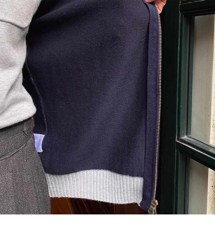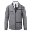 Suéter cárdigan de punto para hombre con doble cremallera y bloques de color, abrigo para hombre británico con cuello alto, suéter ajustado casual