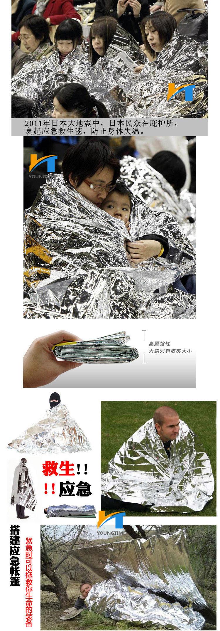 1. Después de un accidente, puede utilizar una manta de emergencia para cubrir su cuerpo y evitar que su temperatura corporal baje bruscamente;