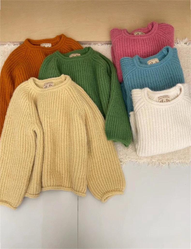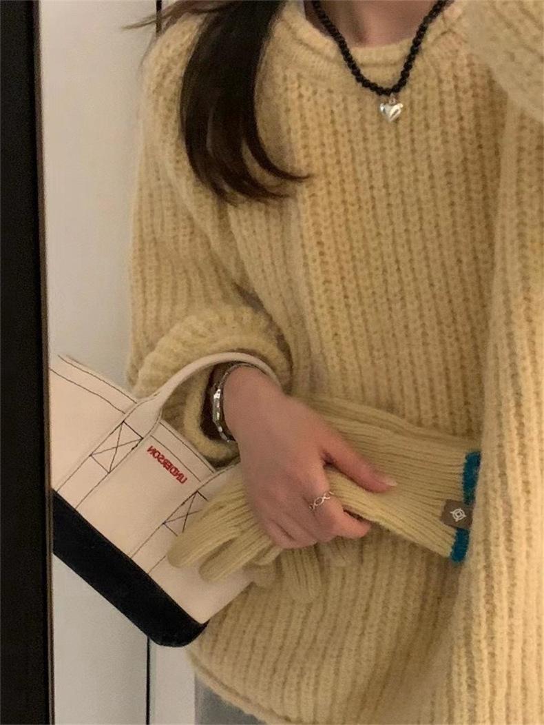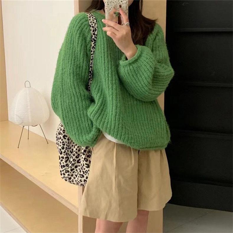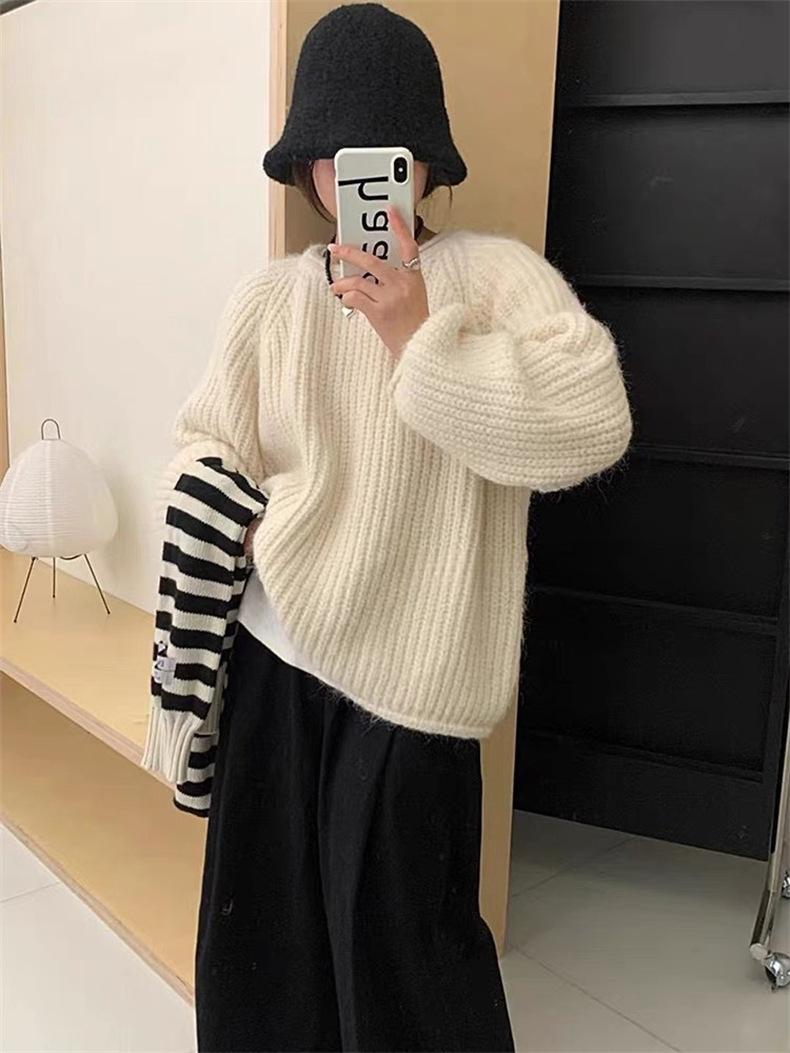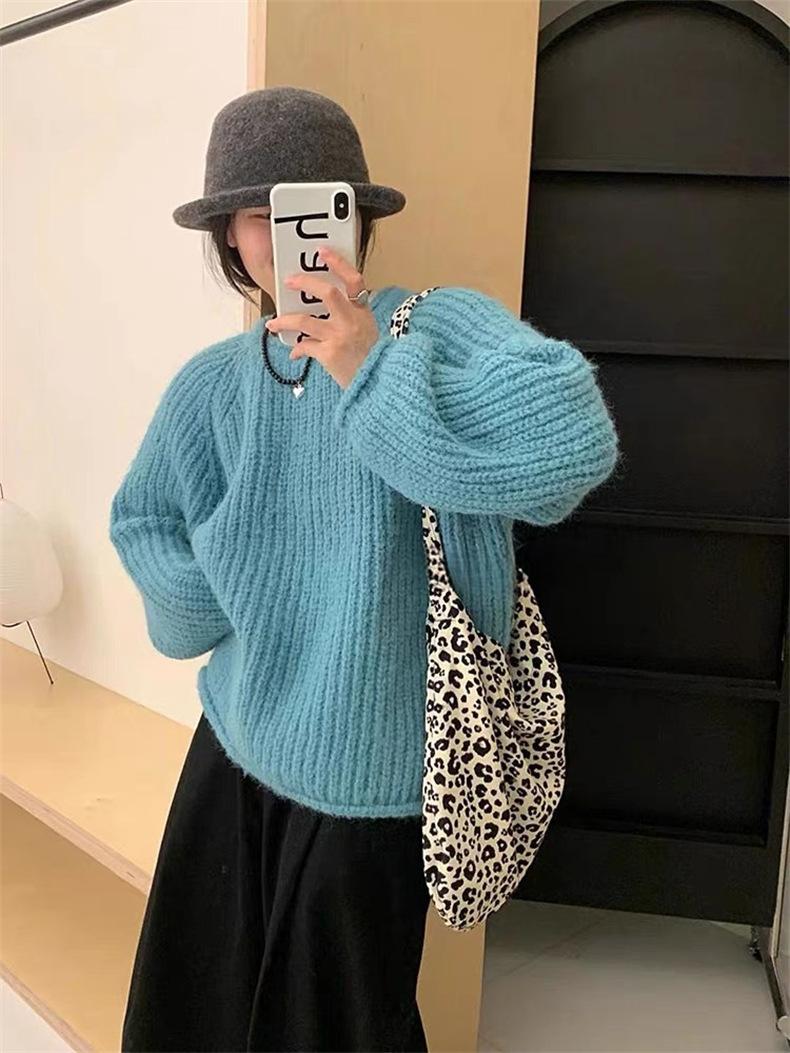 2024 Otoño e Invierno Nuevo Suéter Pulóver Japonés Retro de Línea Gruesa de Color Sólido para Mujer Estilo Lazy Color Caramelo Tejido