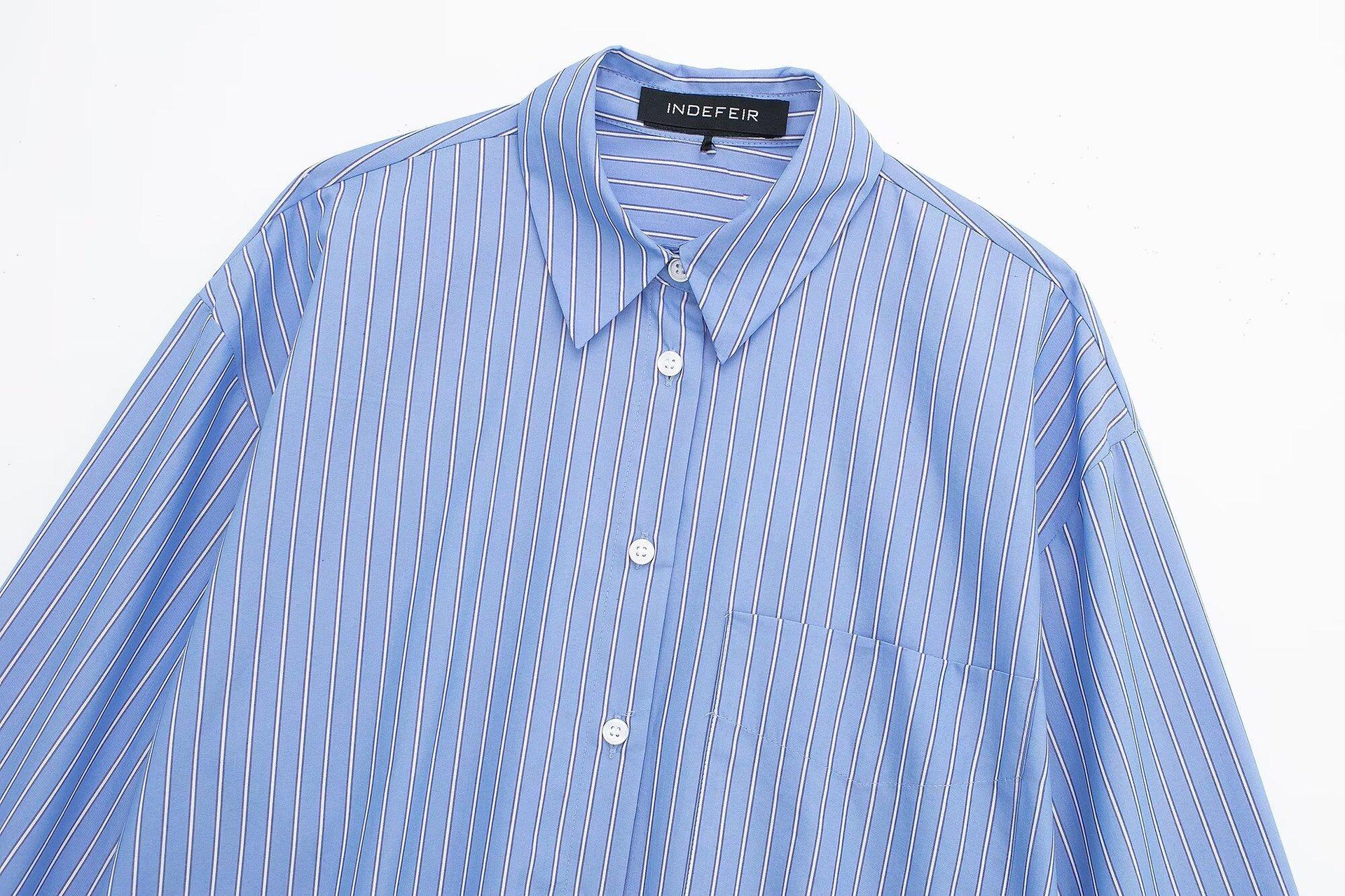 Comercio exterior transfronterizo de Amazon, venta al por mayor de ropa para mujer europea y americana, nueva camisa holgada con estampado de rayas de primavera 2024