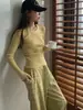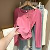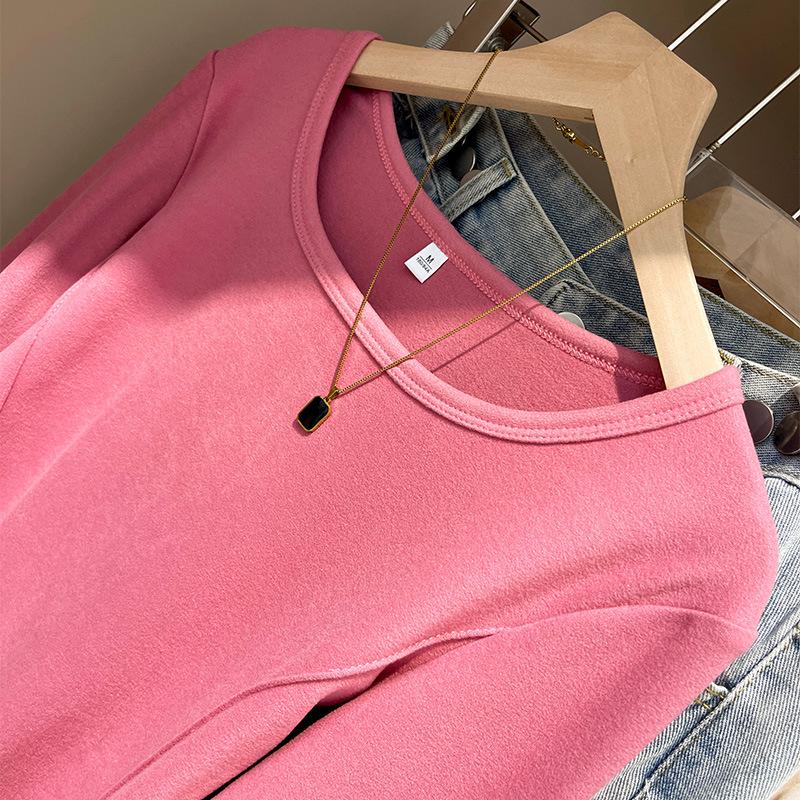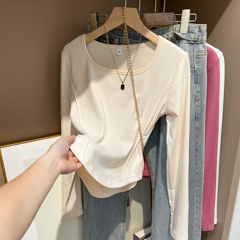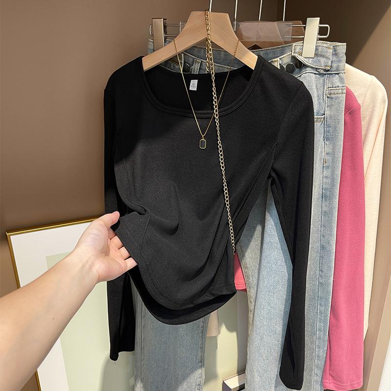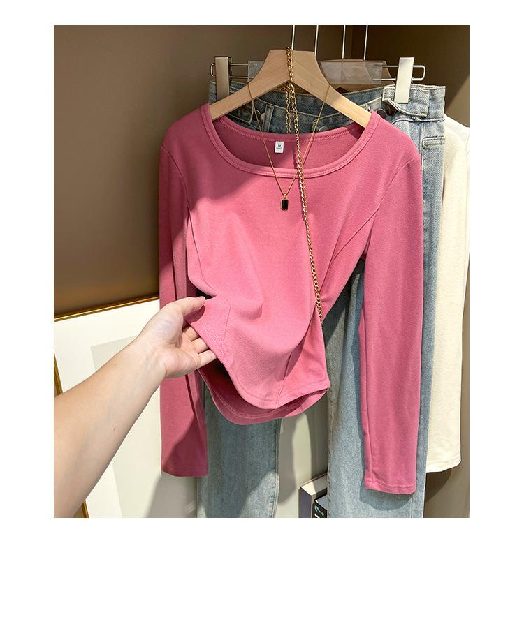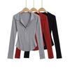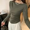 Camiseta de Capa Base De Rong para Mujer, Otoño e Invierno, Top Corto de Espiga de Pescado Elegante y Único, Corte Slim, Camiseta de Manga Larga