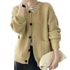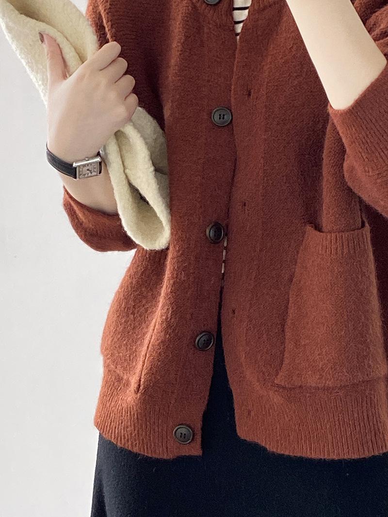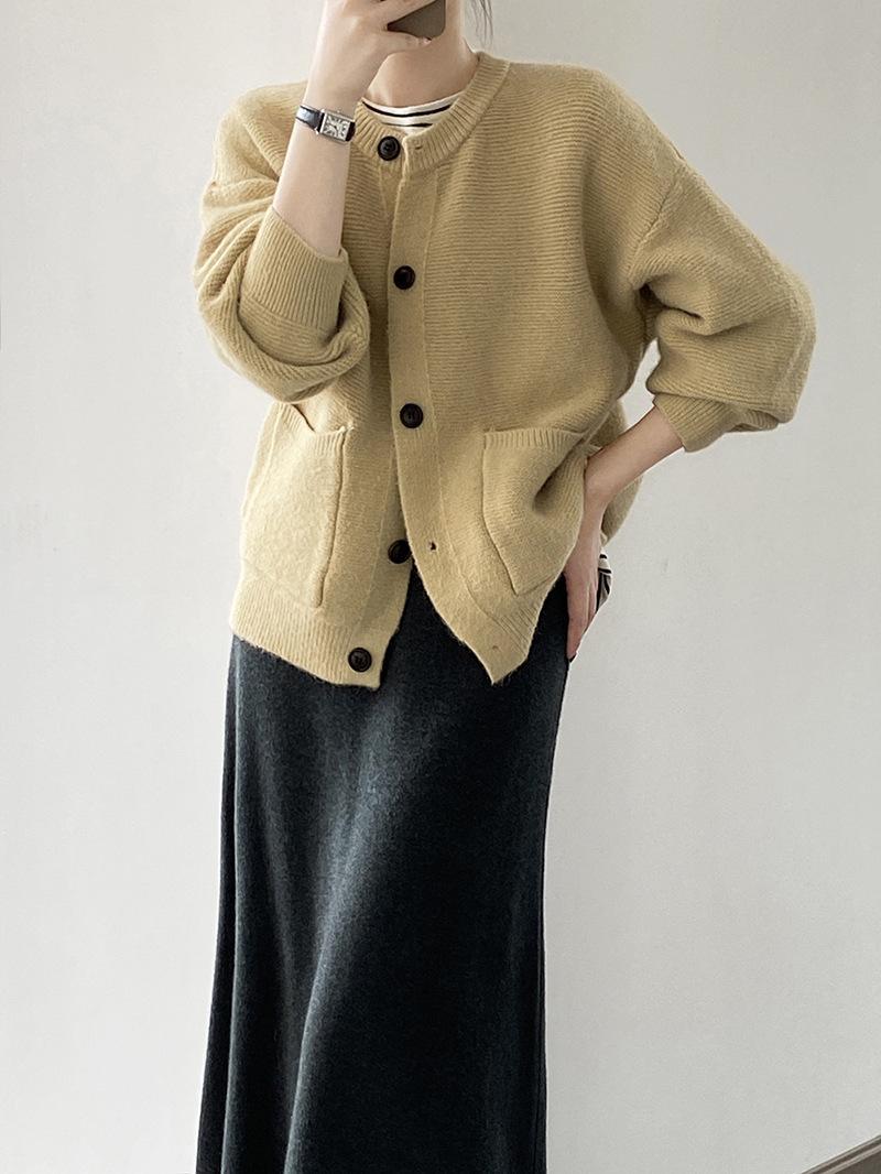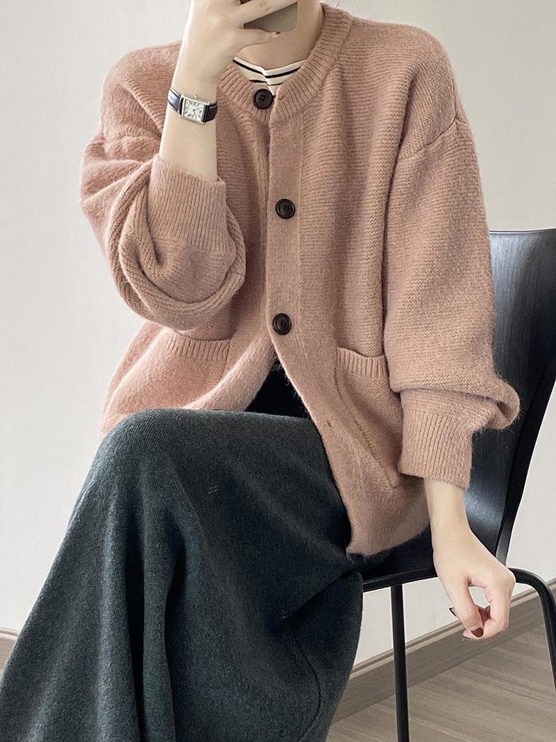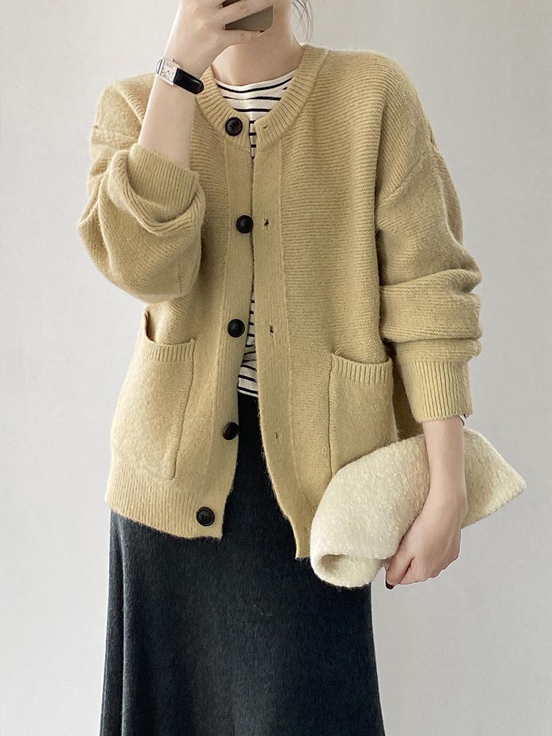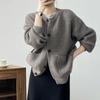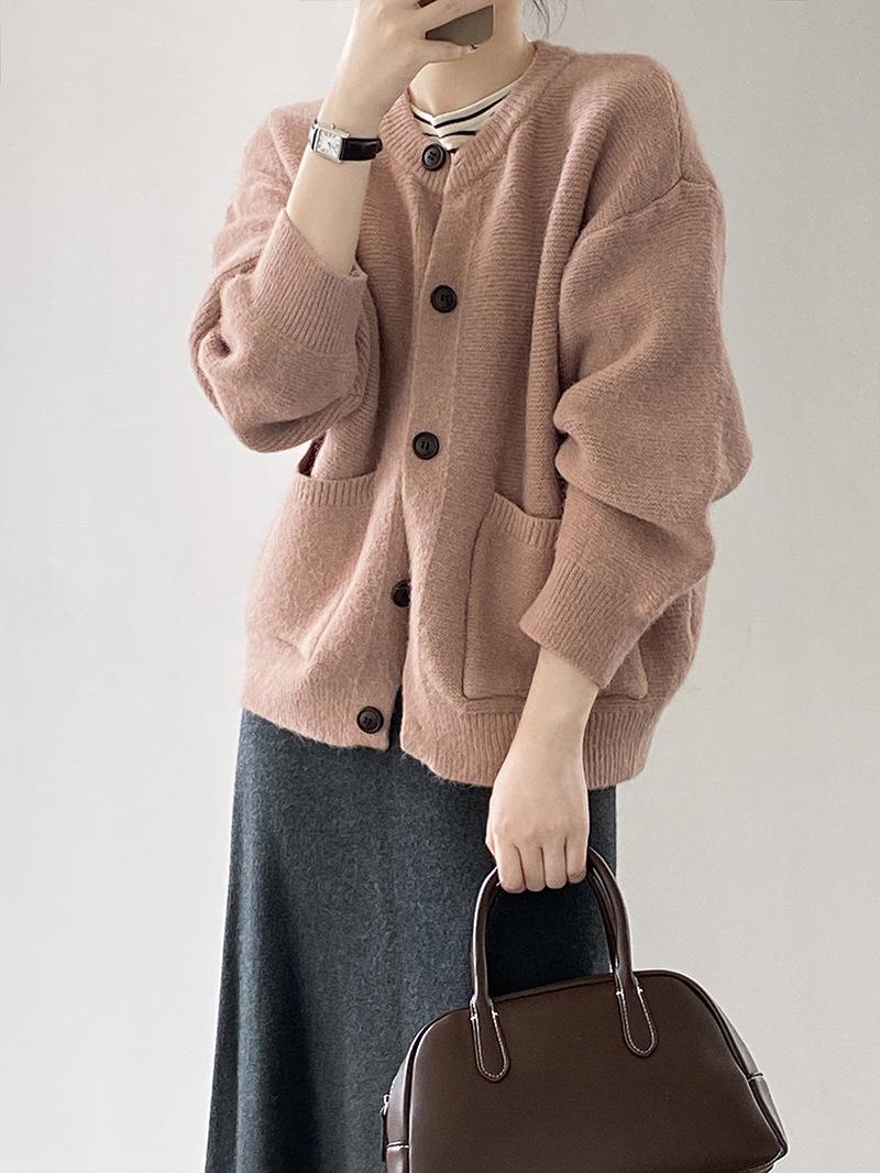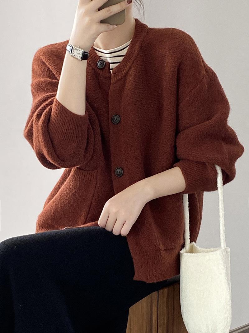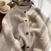 2025 Otoño e Invierno Nuevo Estilo Japonés Color Sólido Casual Cárdigan de Punto Moda para Mujer Cuello Redondo Holgado Estilo Perezoso Chaqueta Suéter