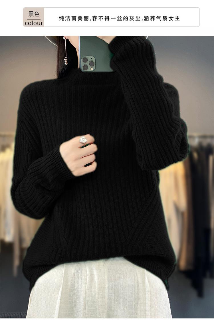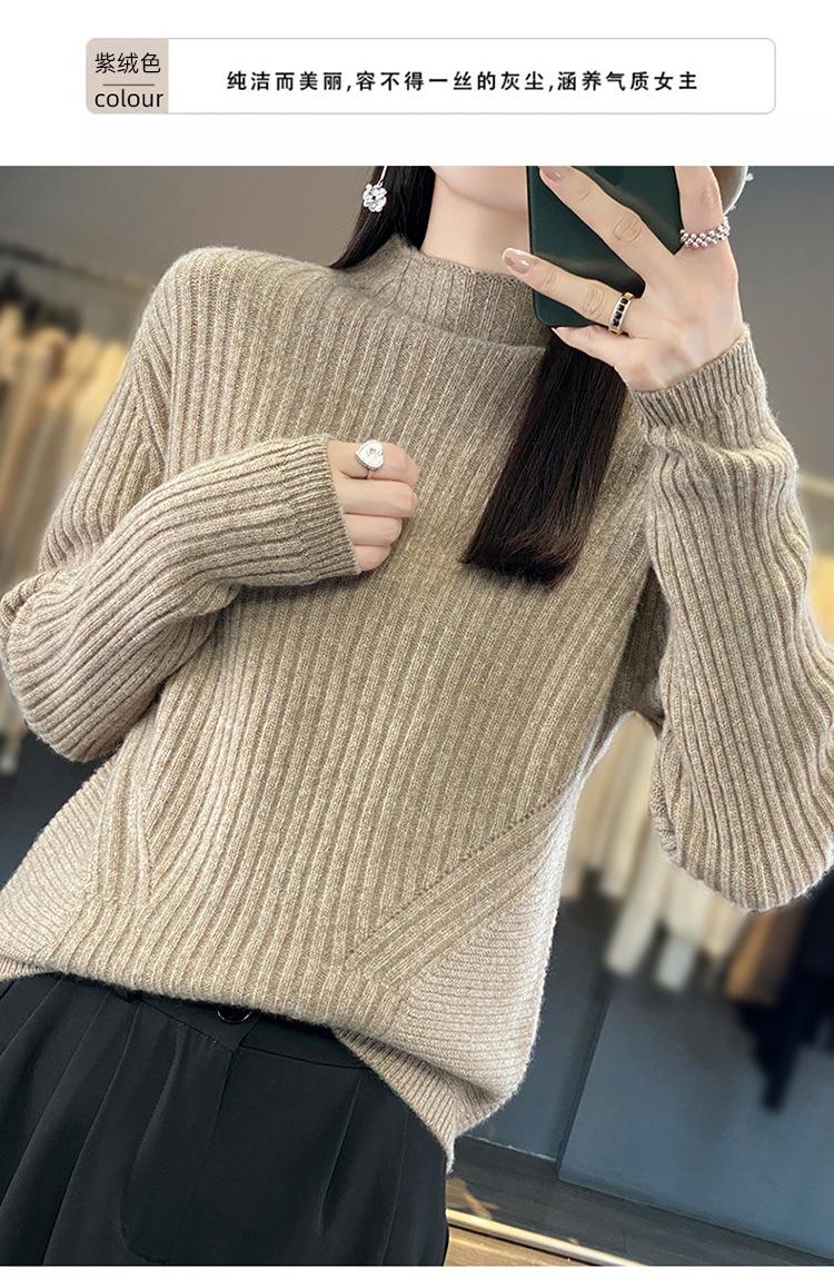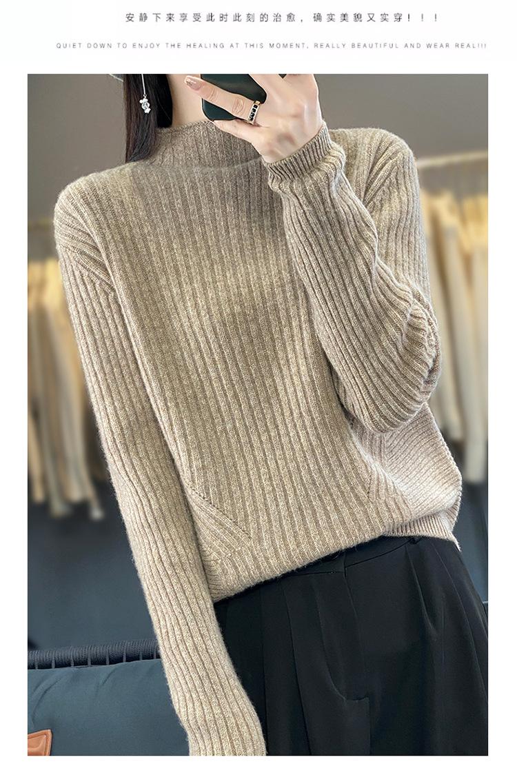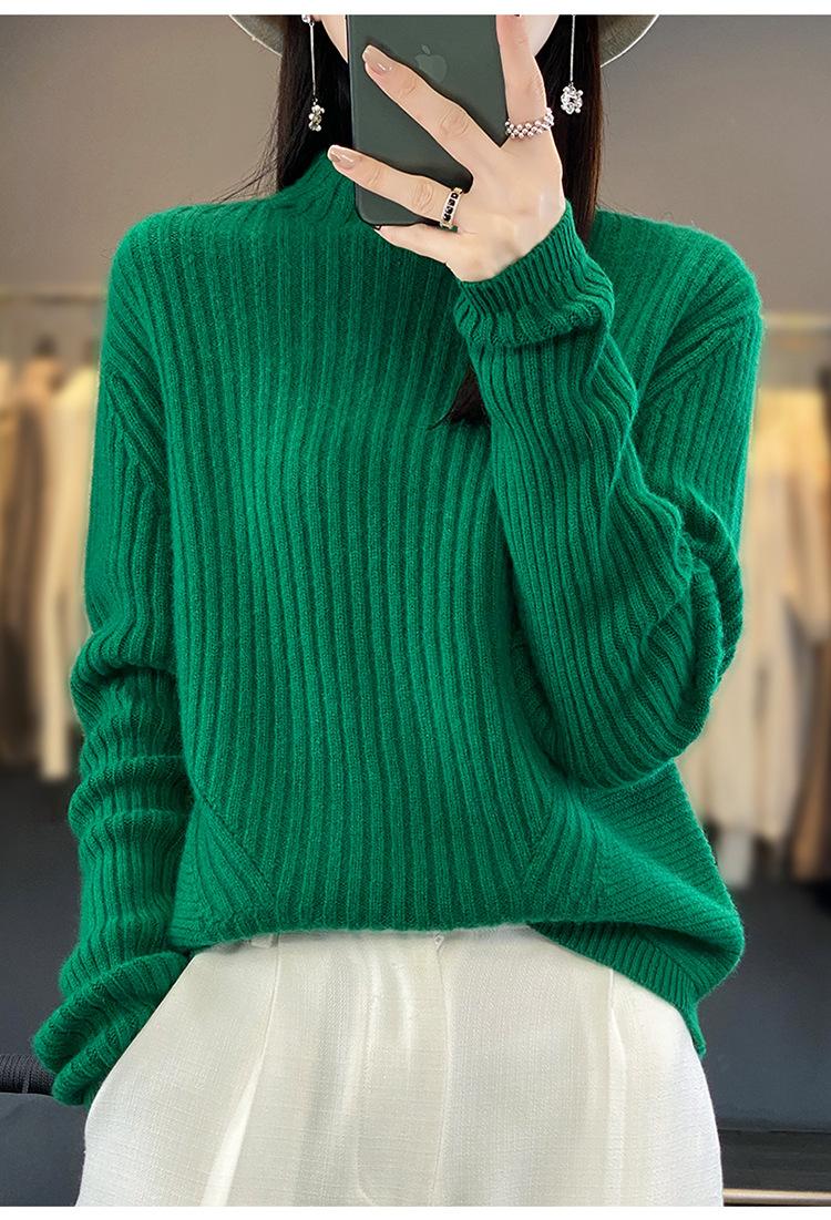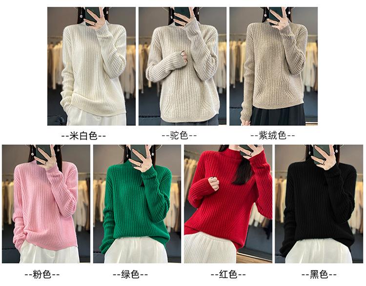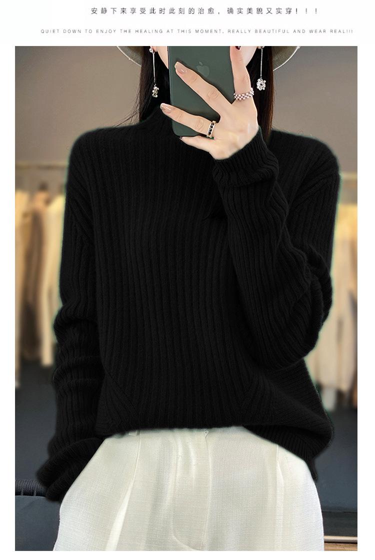 Suéter de lana para mujer, nuevo jersey de otoño e invierno de cuello alto, manga larga, elegante, ajustado, a la moda, combinable con todo.