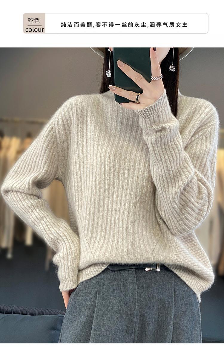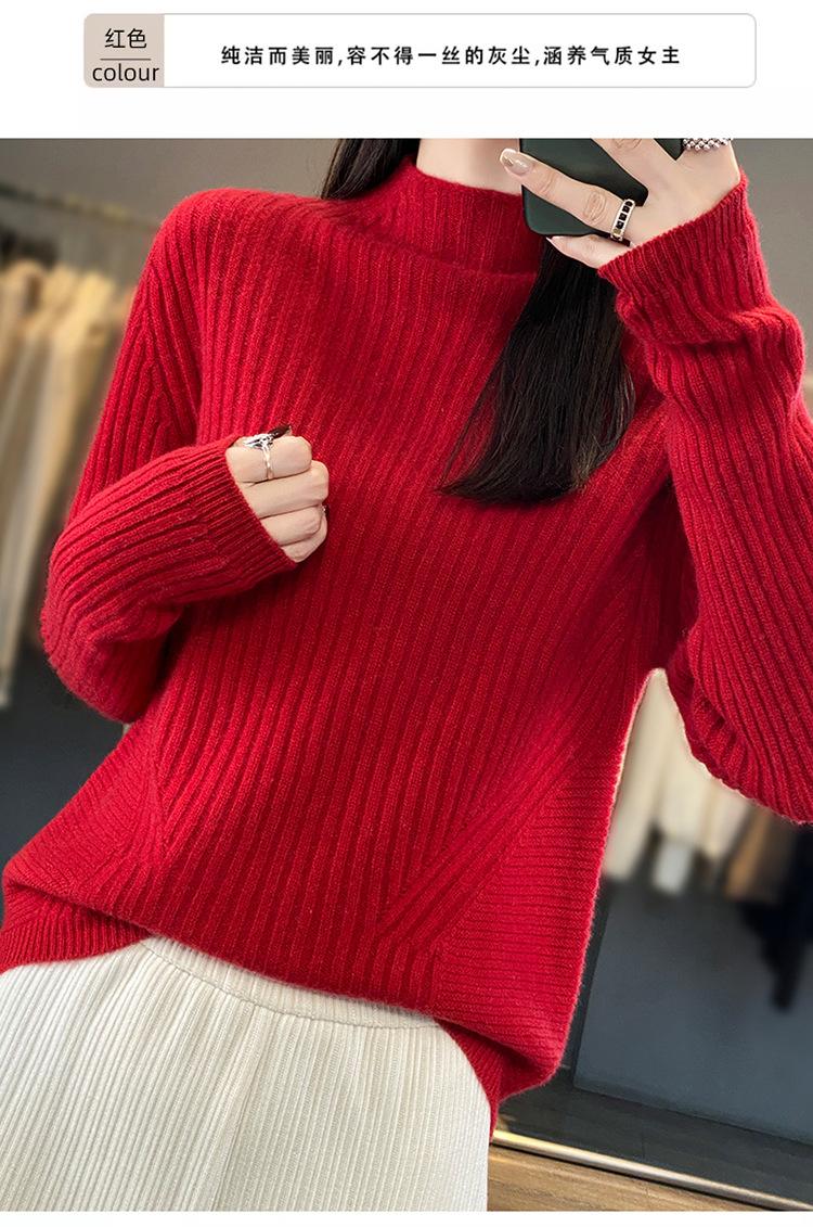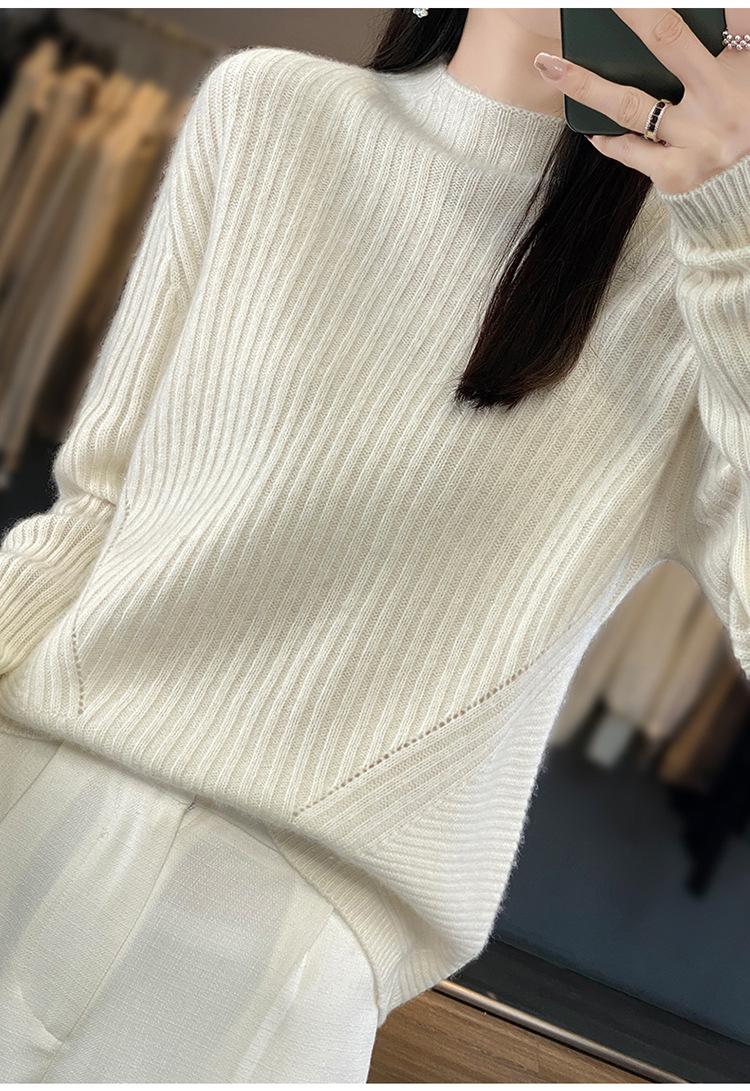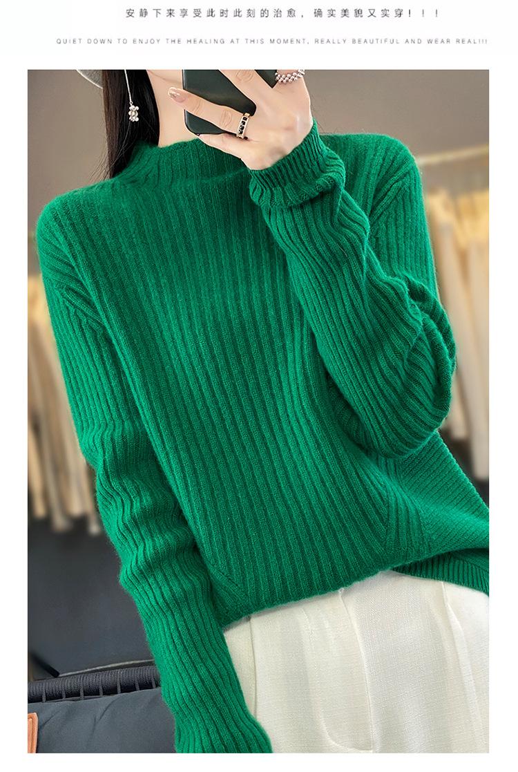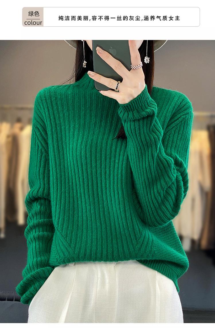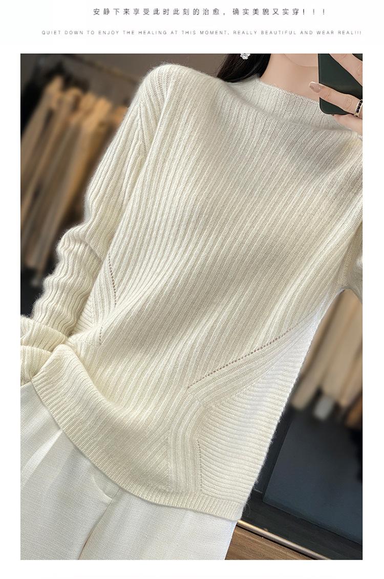 Suéter de lana para mujer, nuevo jersey de otoño e invierno de cuello alto, manga larga, elegante, ajustado, a la moda, combinable con todo.