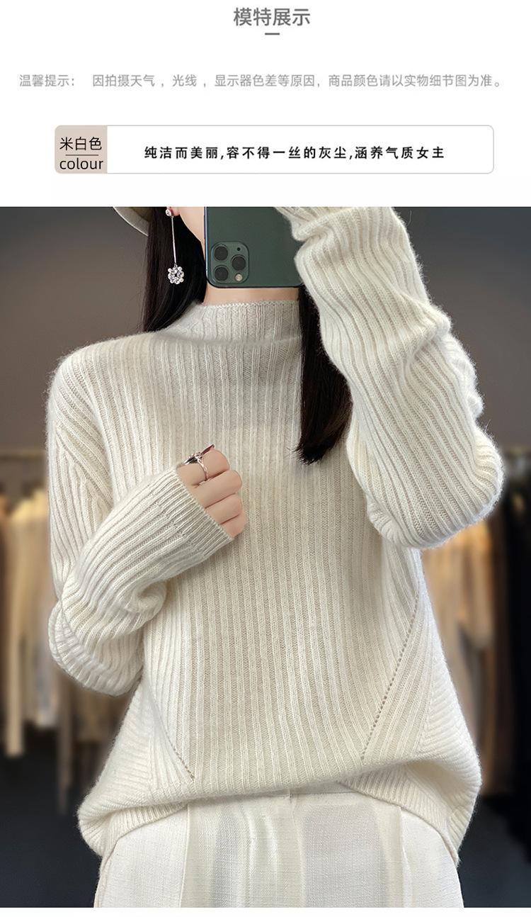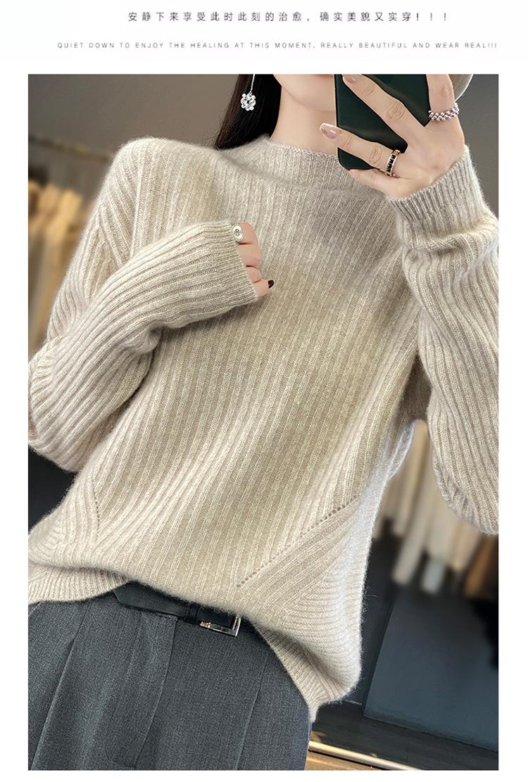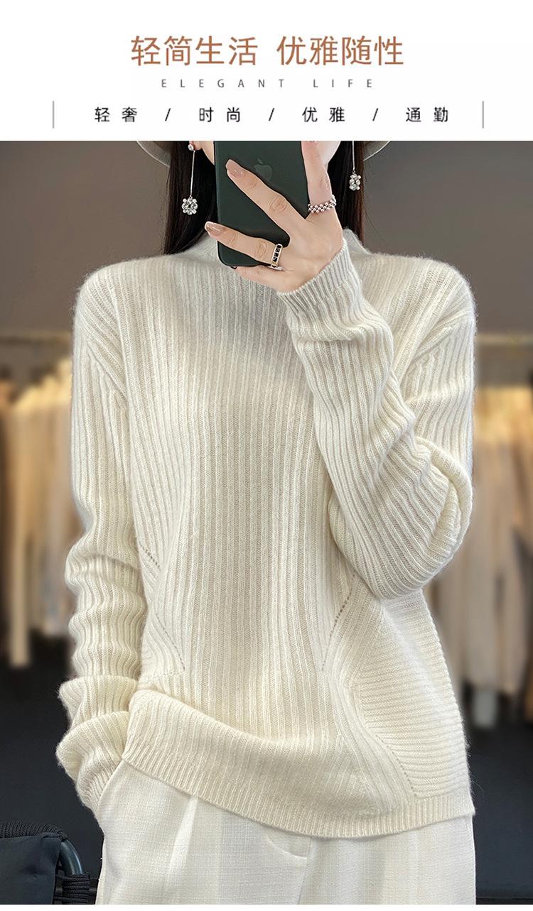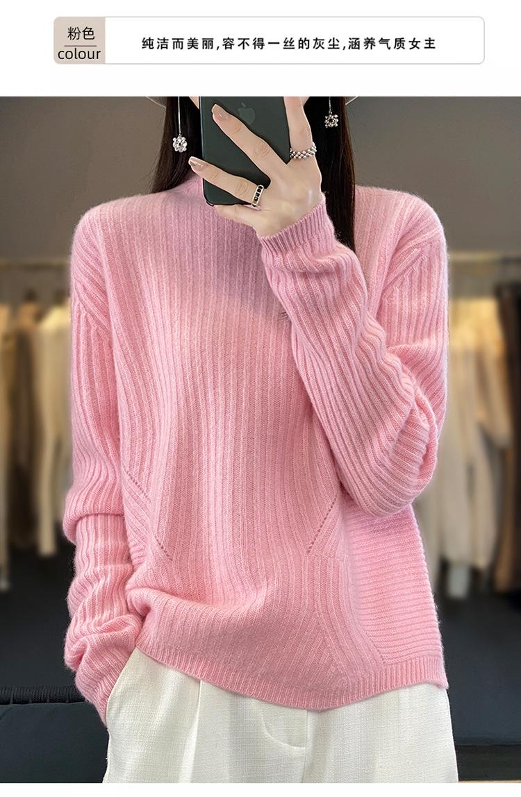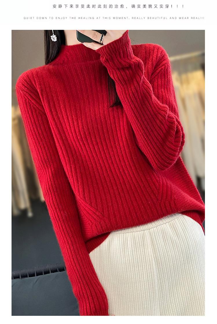 Suéter de lana para mujer, nuevo jersey de otoño e invierno de cuello alto, manga larga, elegante, ajustado, a la moda, combinable con todo.