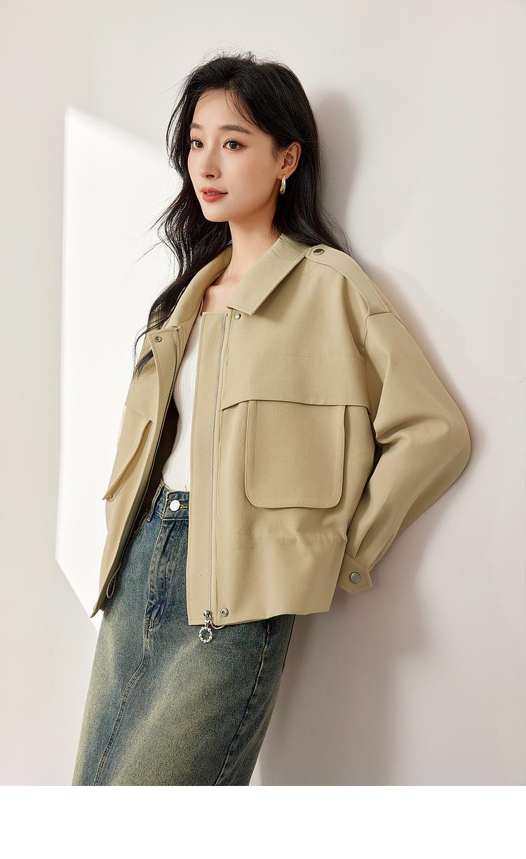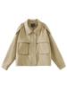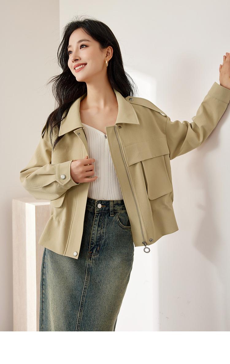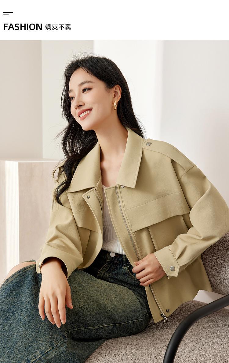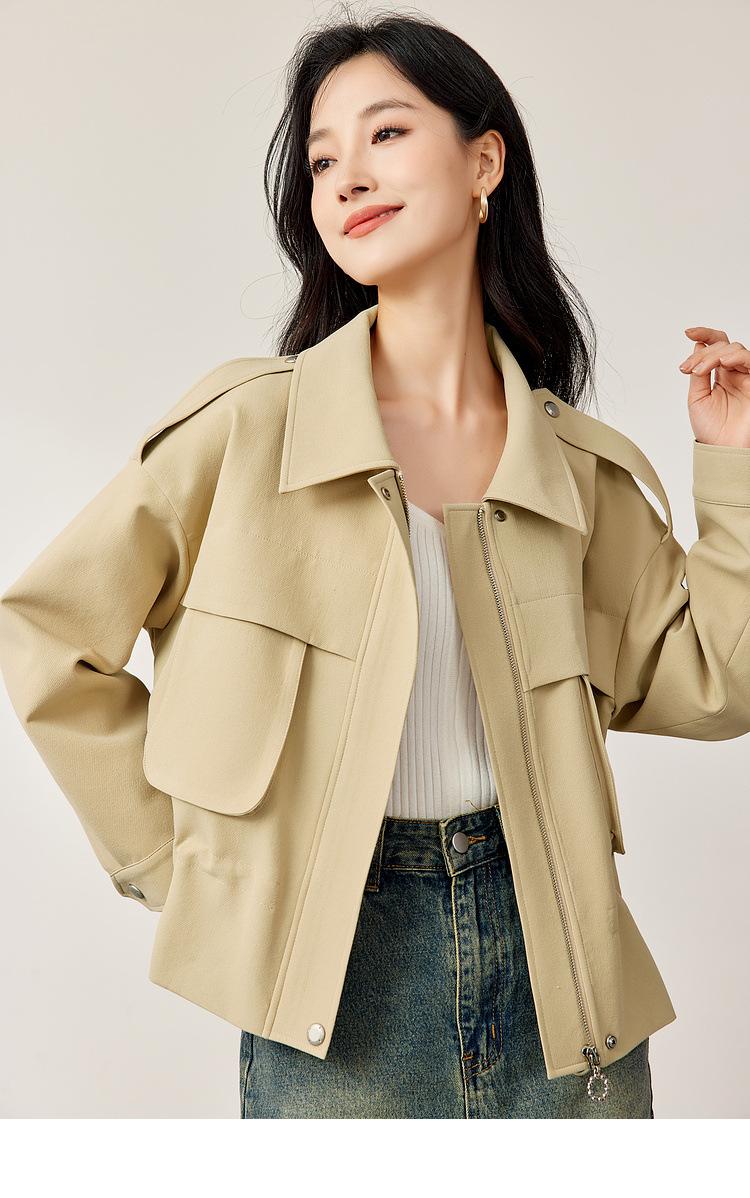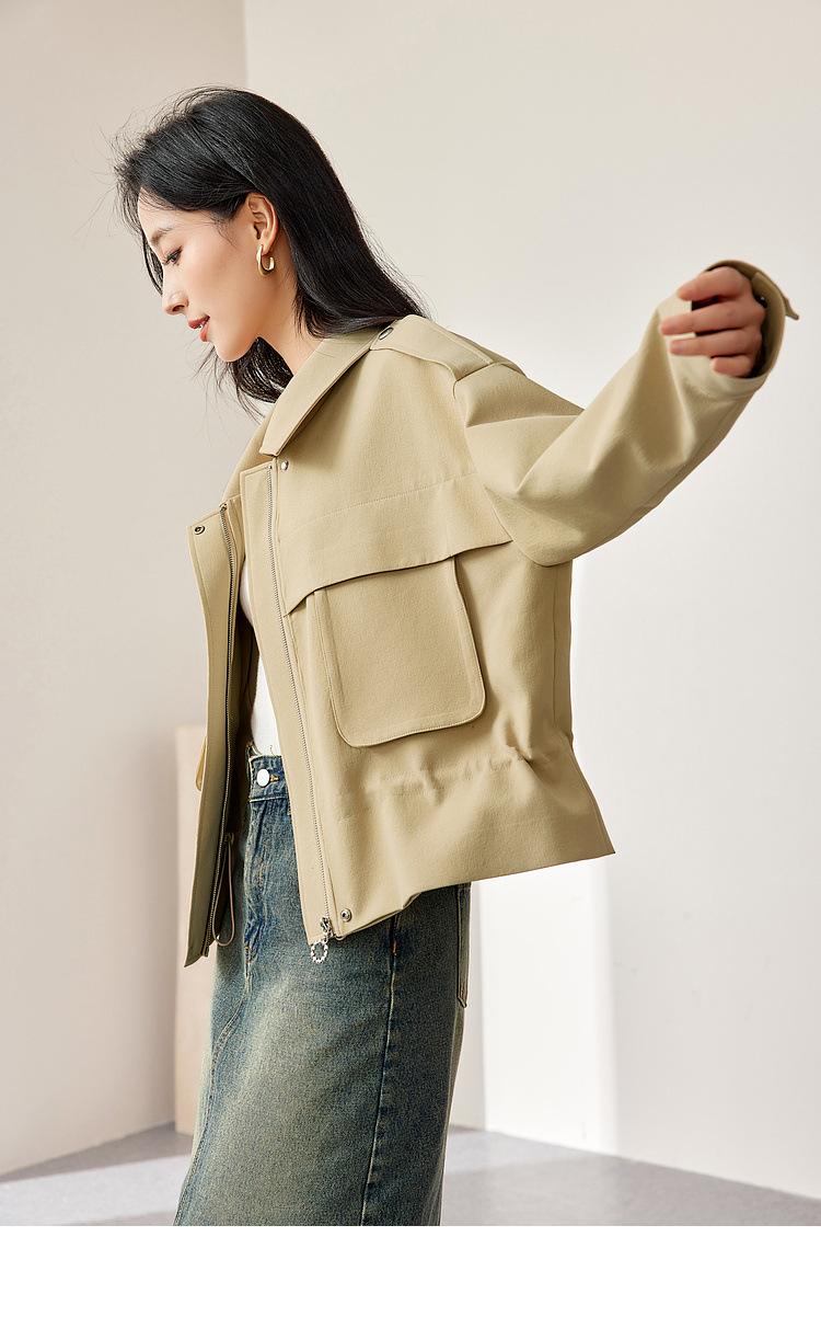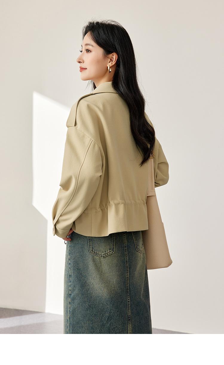 Zhen Xi - Abrigo corto de manga larga con solapa para mujer, estilo recto, informal, con cordón ajustable, CP885