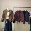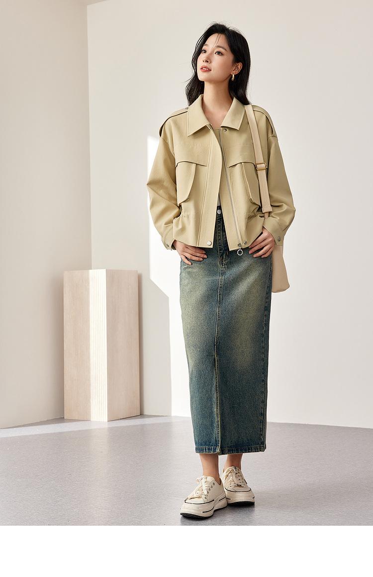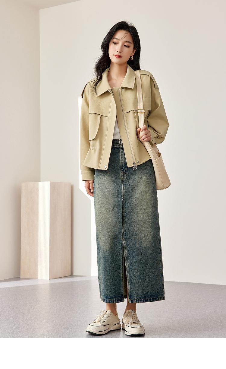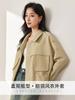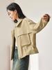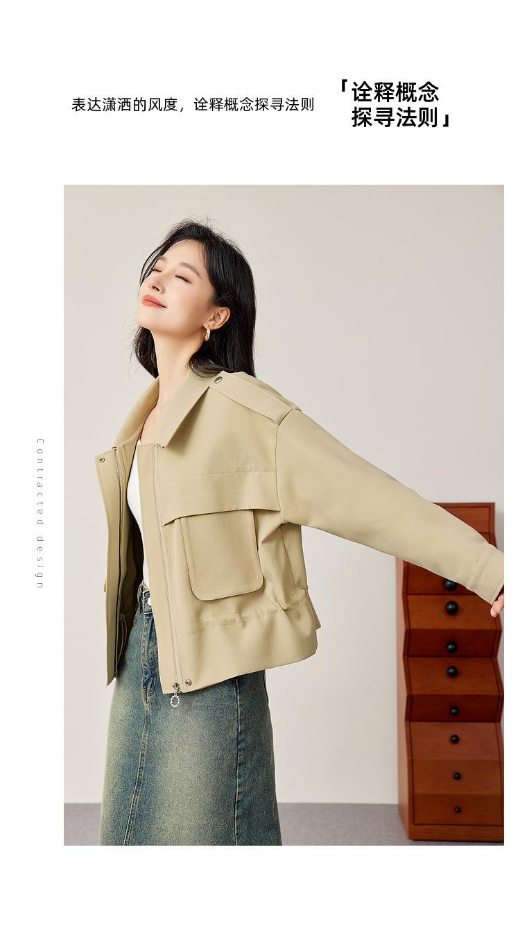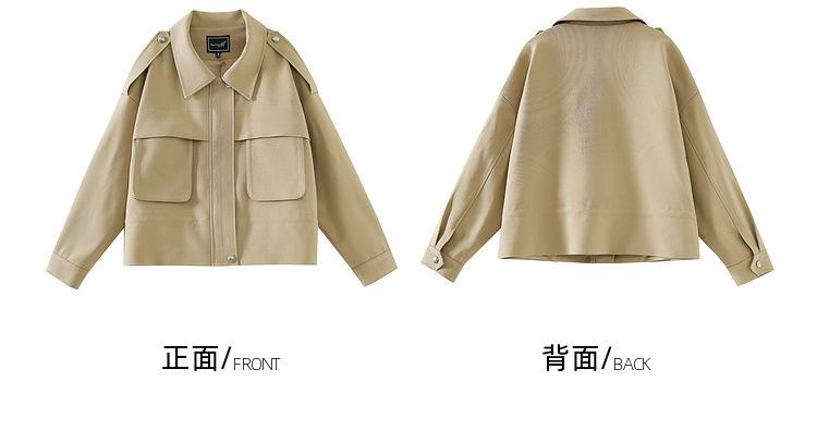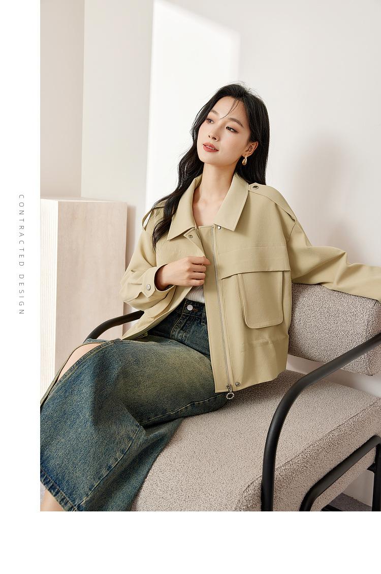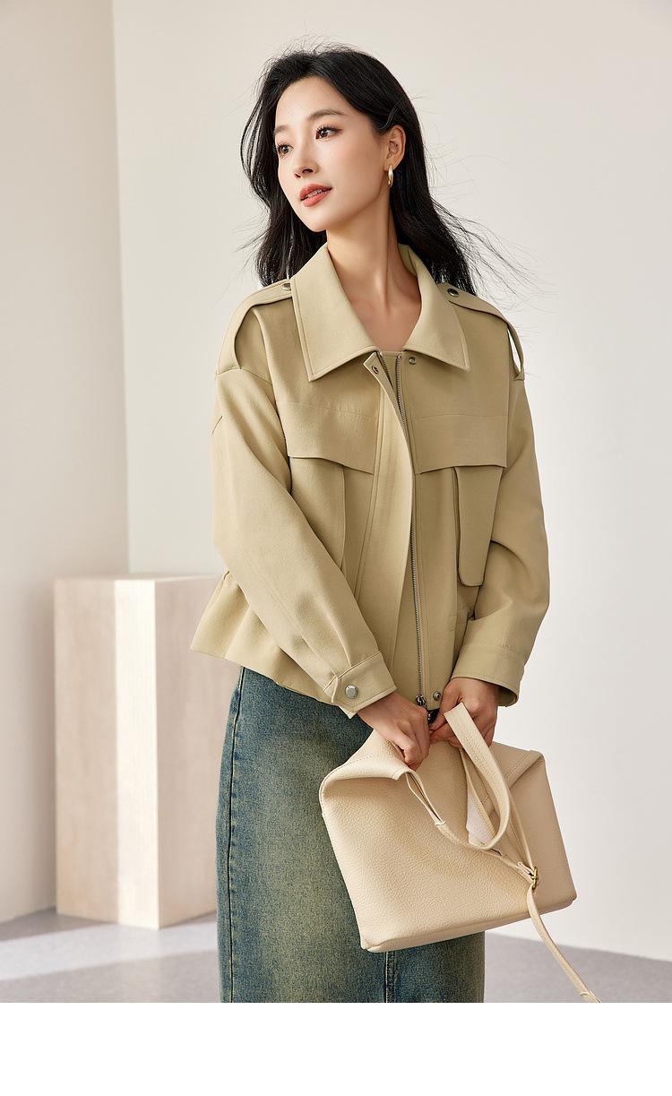 Zhen Xi - Abrigo corto de manga larga con solapa para mujer, estilo recto, informal, con cordón ajustable, CP885