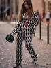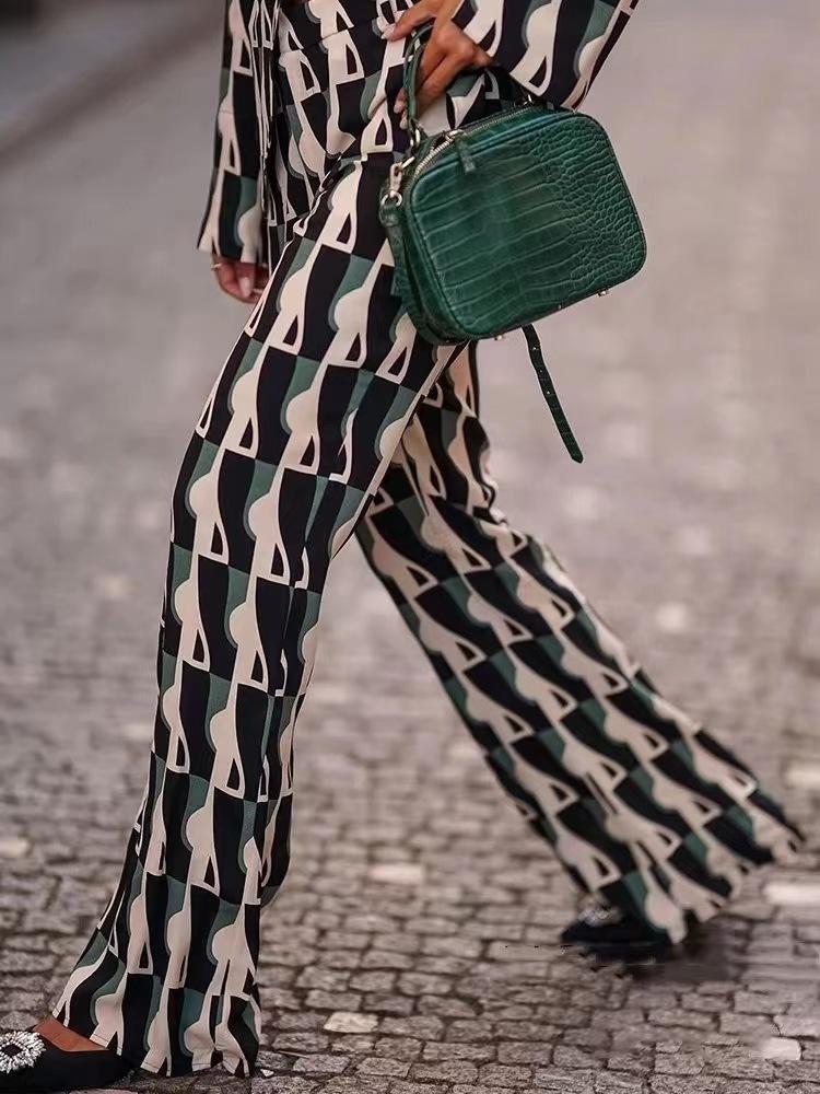 Blusa colgante estampada versátil de moda para mujer, estilo europeo y americano, otoño 2021, traje informal para mujer