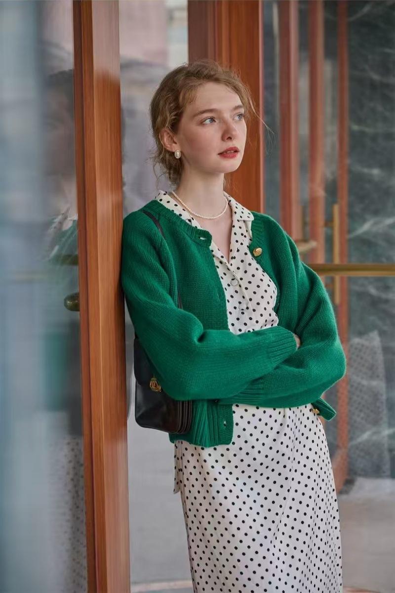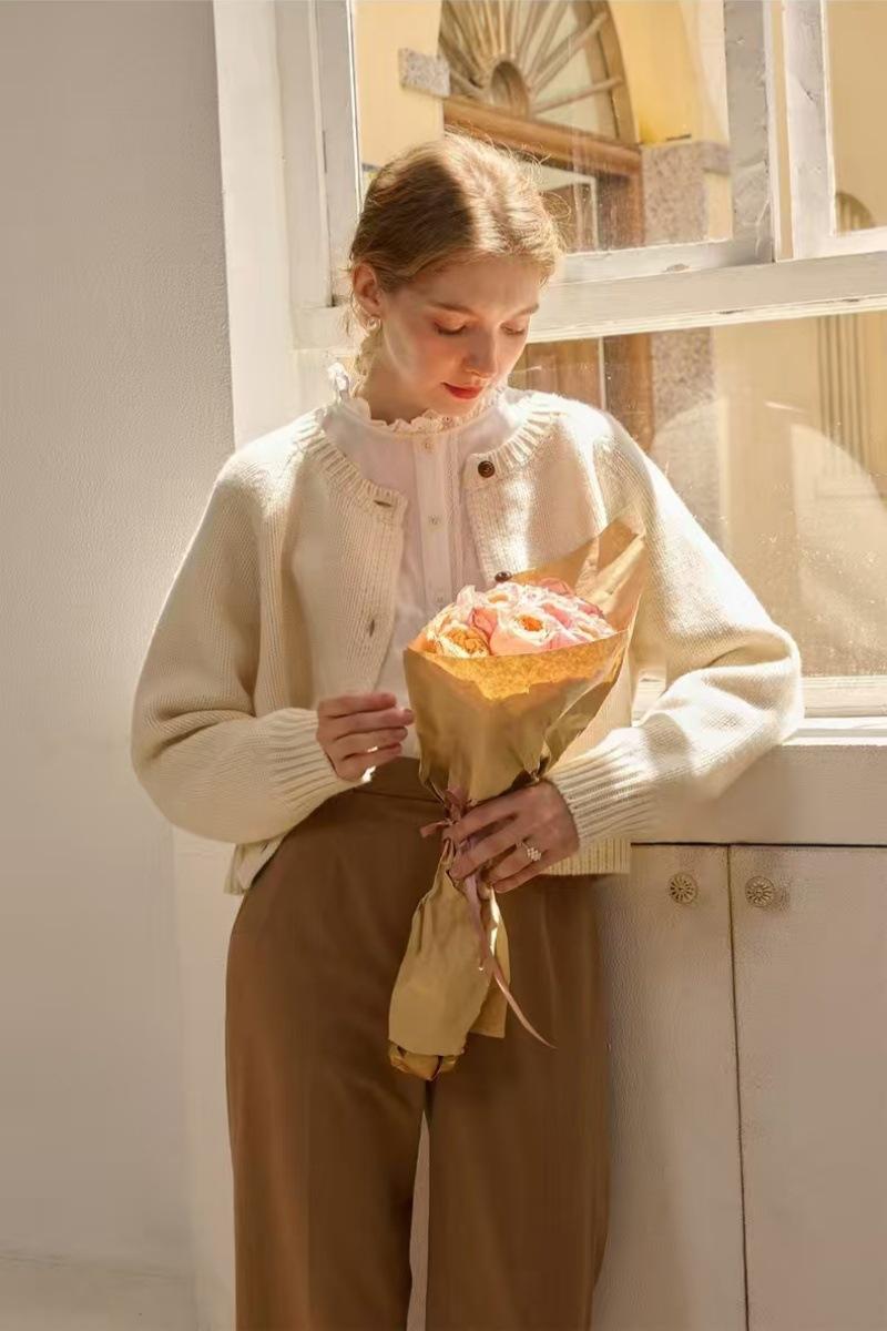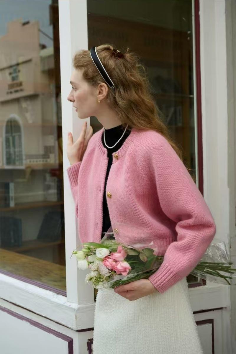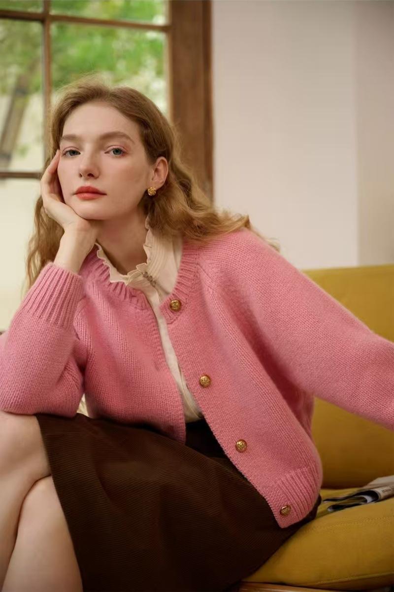 Cárdigan de punto de lana 100% con cuello redondo sencillo para mujer, otoño e invierno 2024, corto, holgado, vintage, con botones de metal